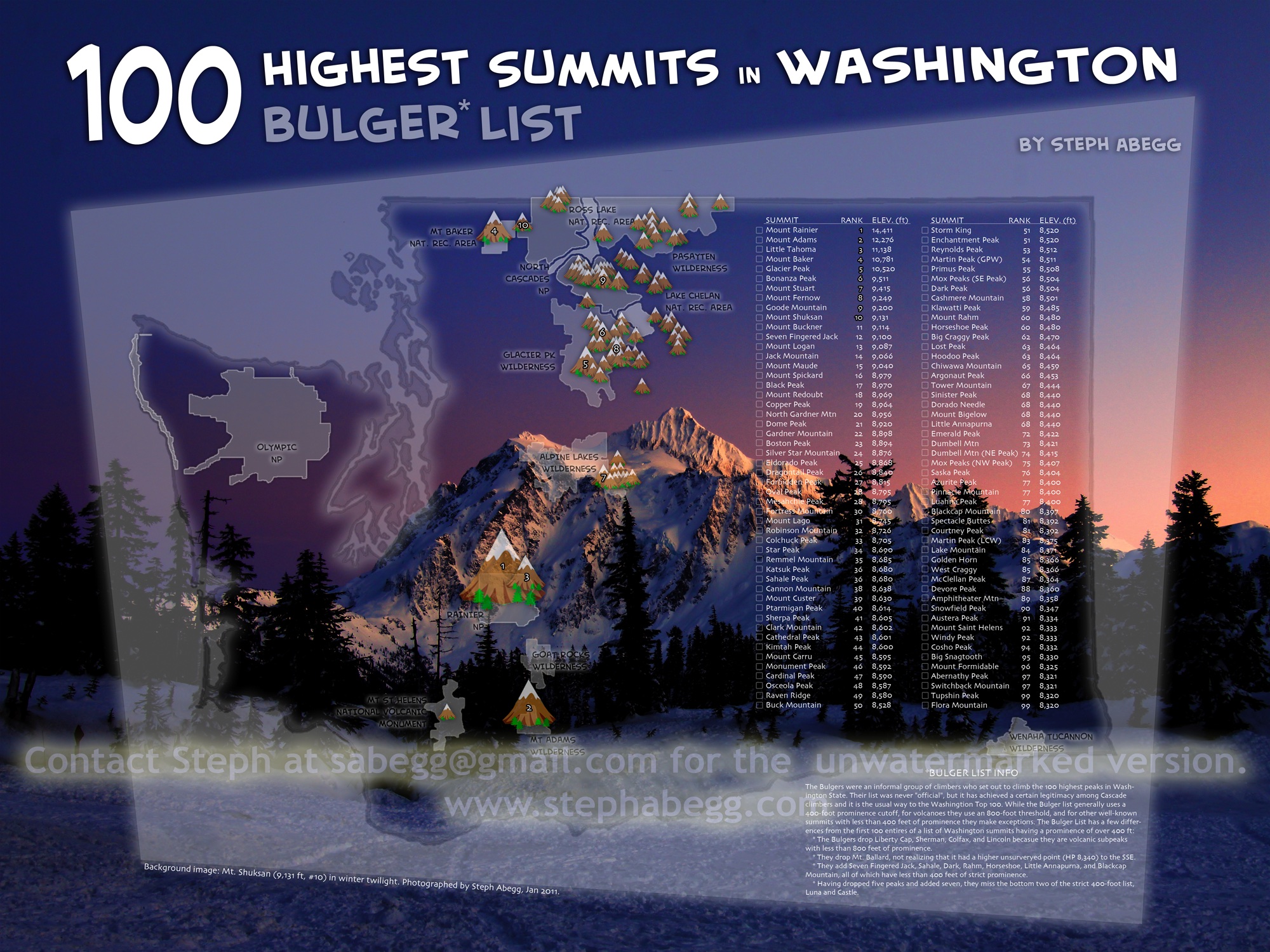 winter ascent of Three Fingers in March 2010, where a friend and I climbed up to the lookout, dug out the door, and slept inside. A 5-star snowcave!)