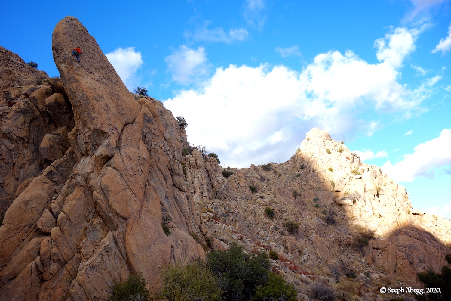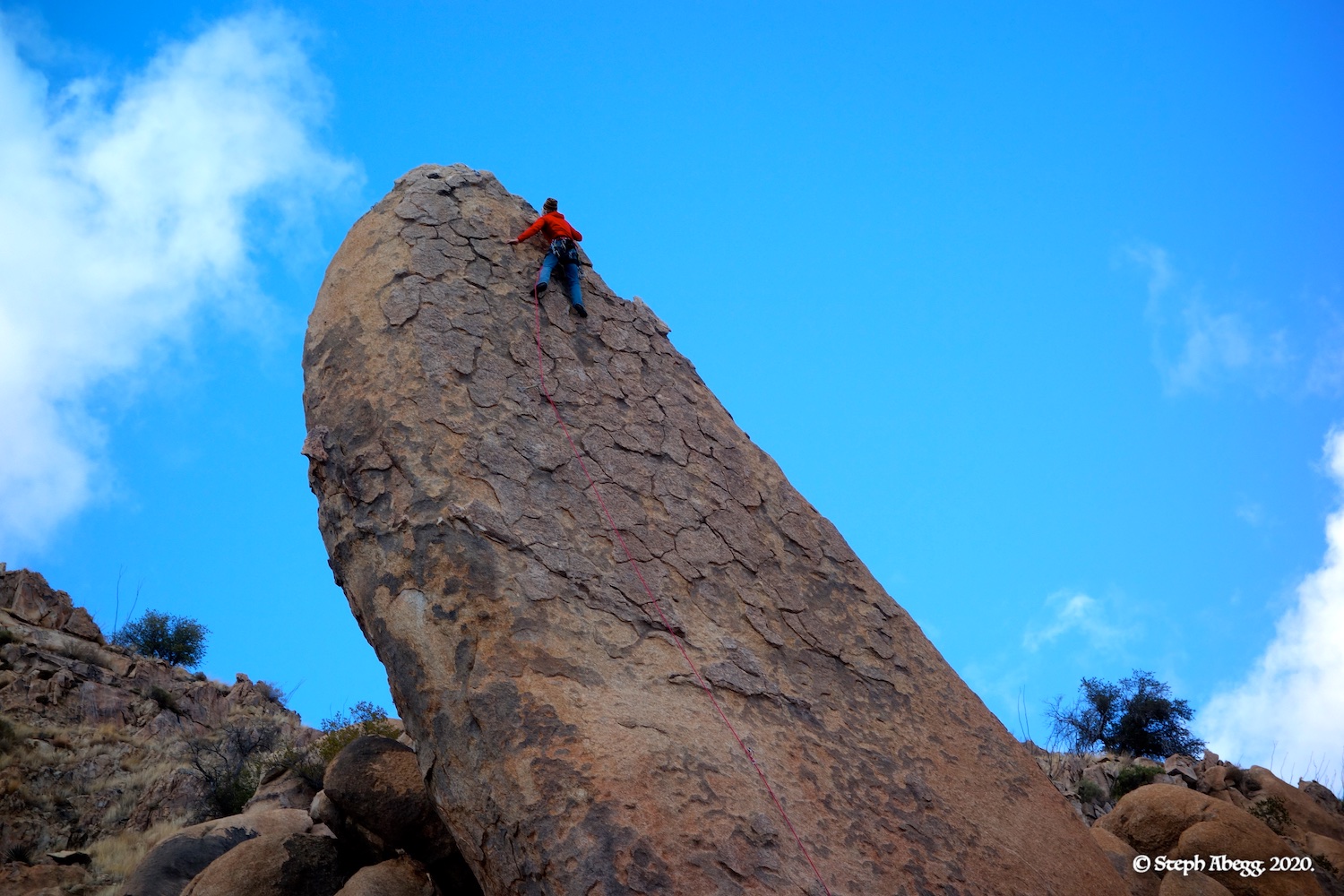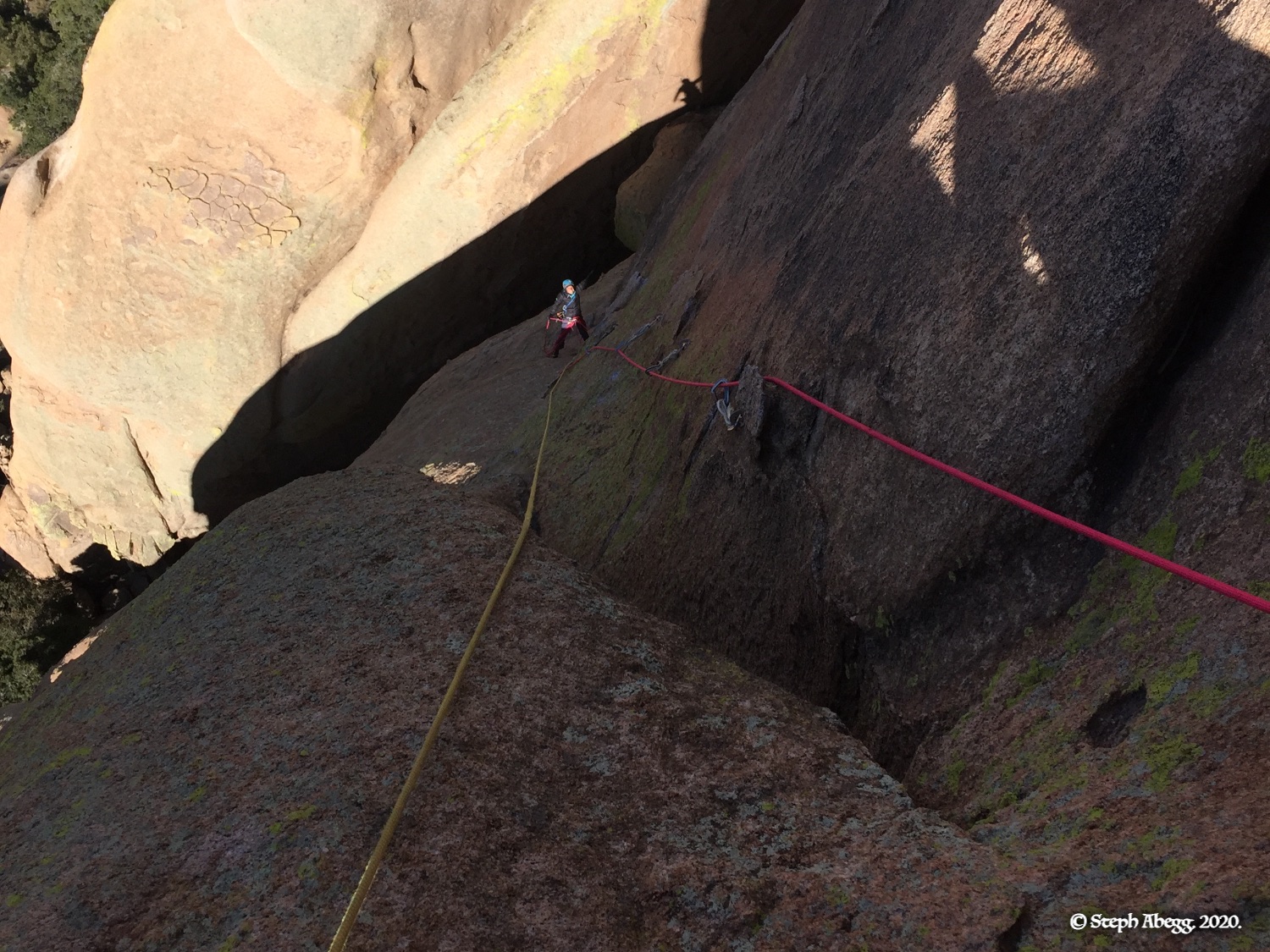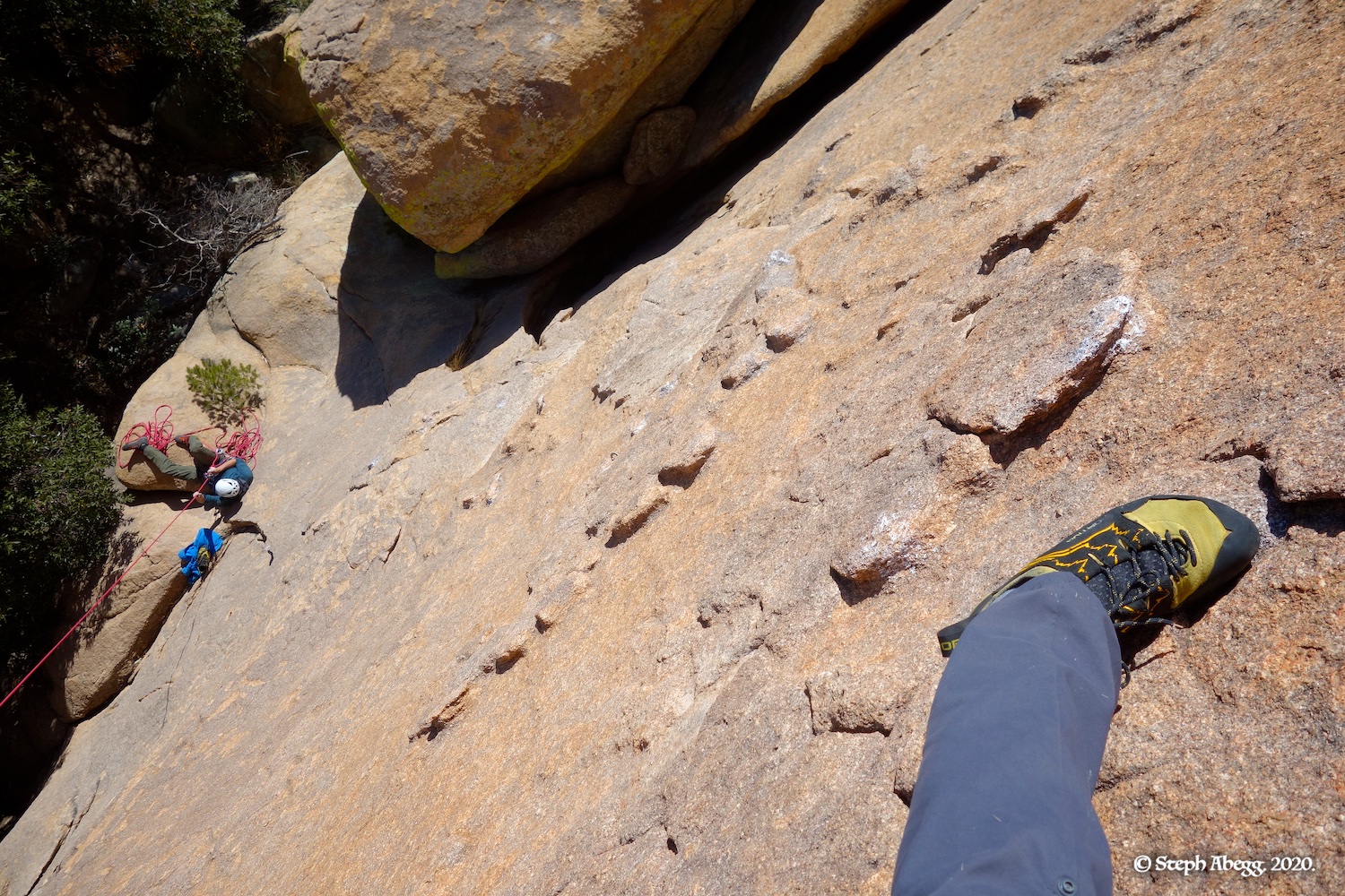 I tore my ACL and meniscus and had knee surgery in early September. So with my surgeon telling me no at-risk activities for at least 6 months, I figured the Cochise plan (which would be at slightly less than 4 months from surgery) wouldn't happen. But when my religious PT led my knee to start to feel pretty good by about 3 months in, the draw of warm sunny granite was too much, and Nate and I decided to go for it. I would just be careful with the knee. No leading, falling, stemming, drop-kneeing, or boulder-hopping for me. The risk of climbing with a still-healing 4-month-old ACL graft and meniscus repair was a risk I was willing to take.