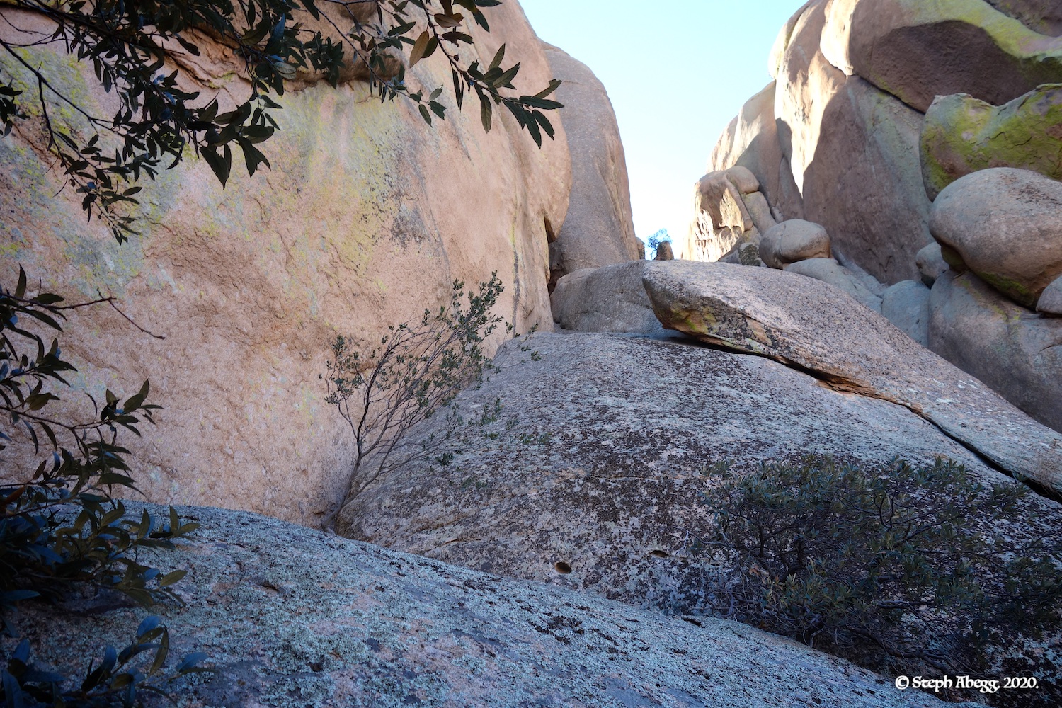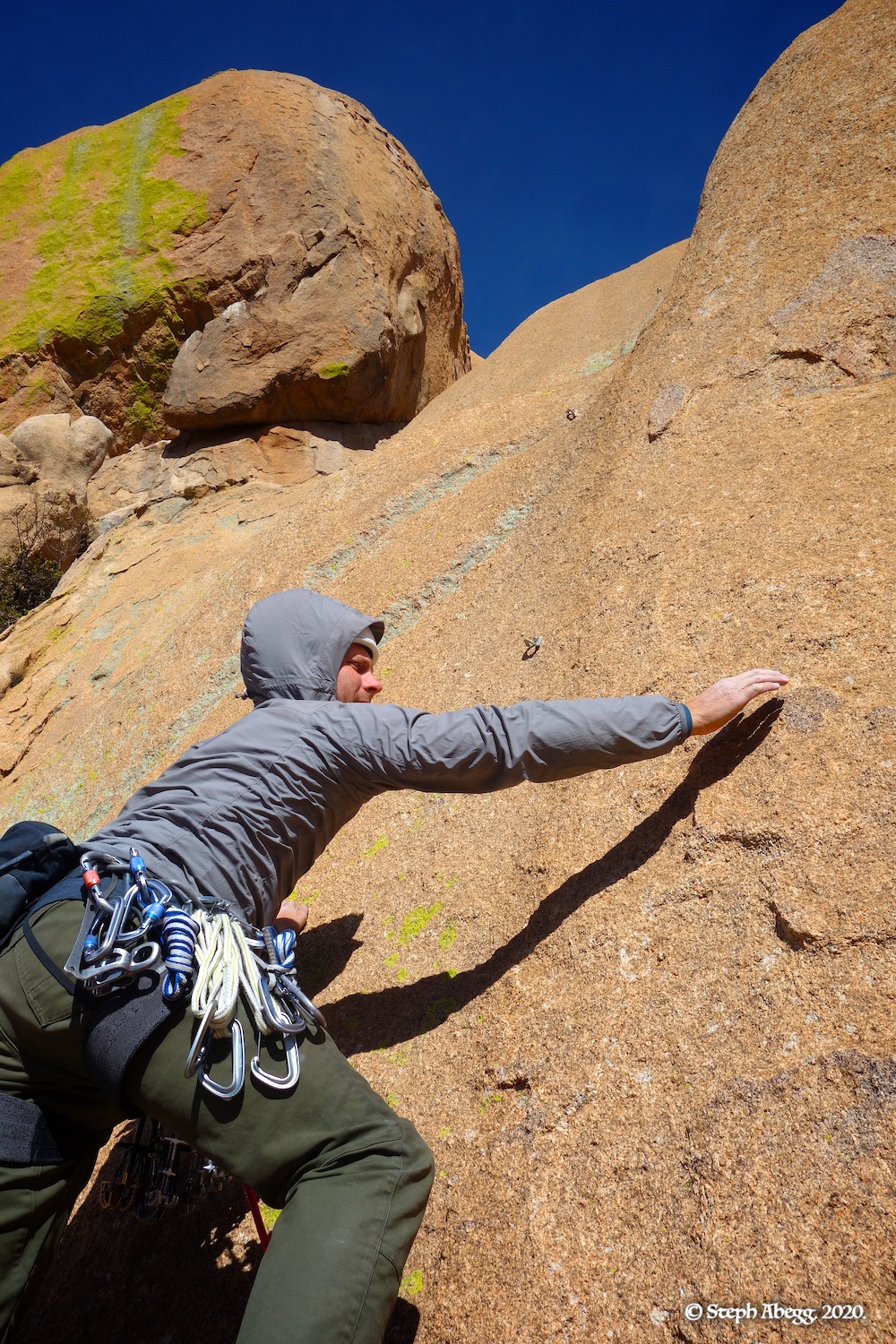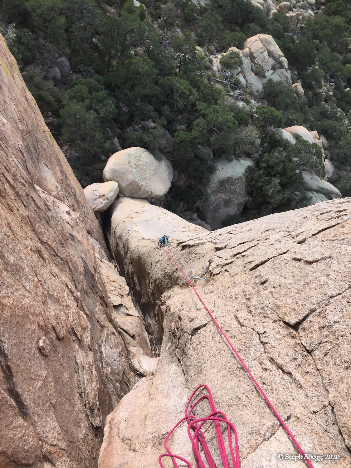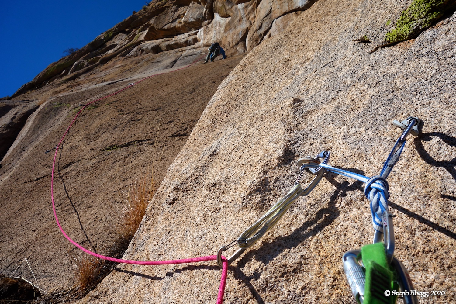 I tore my ACL and meniscus and had knee surgery in early September. So with my surgeon telling me no at-risk activities for at least 6 months, I figured the Cochise plan (which would be at slightly less than 4 months from surgery) wouldn't happen. But when my religious PT led my knee to start to feel pretty good by about 3 months in, the draw of warm sunny granite was too much, and Nate and I decided to go for it. I would just be careful with the knee. No leading, falling, stemming, drop-kneeing, or boulder-hopping for me. The risk of climbing with a still-healing 4-month-old ACL graft and meniscus repair was a risk I was willing to take.