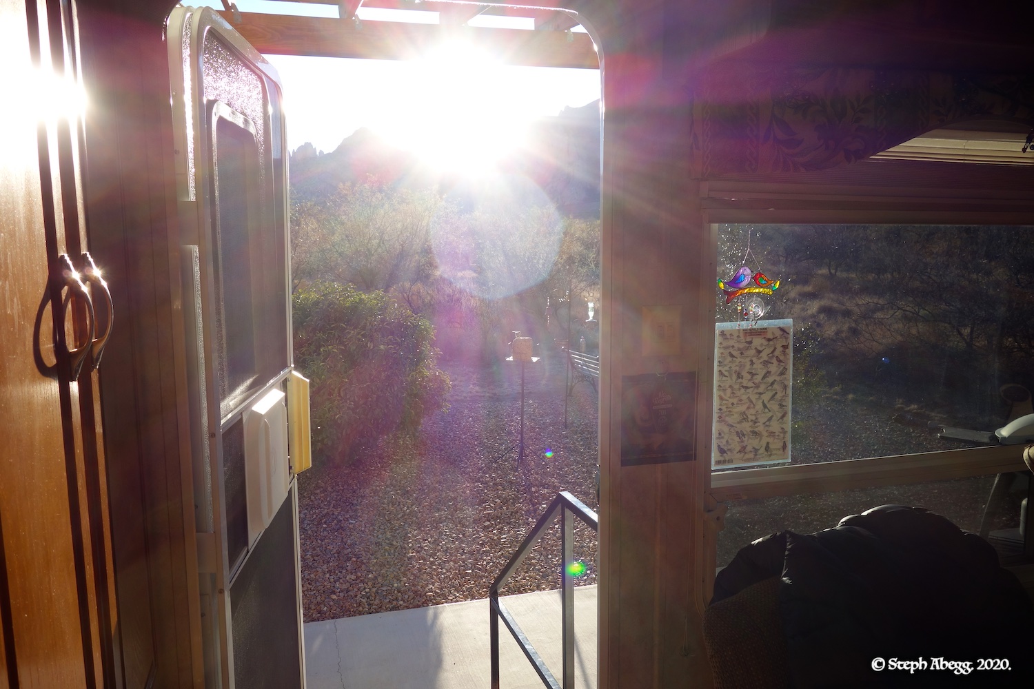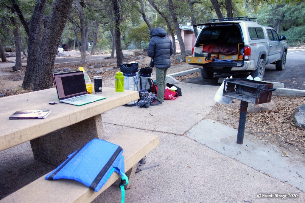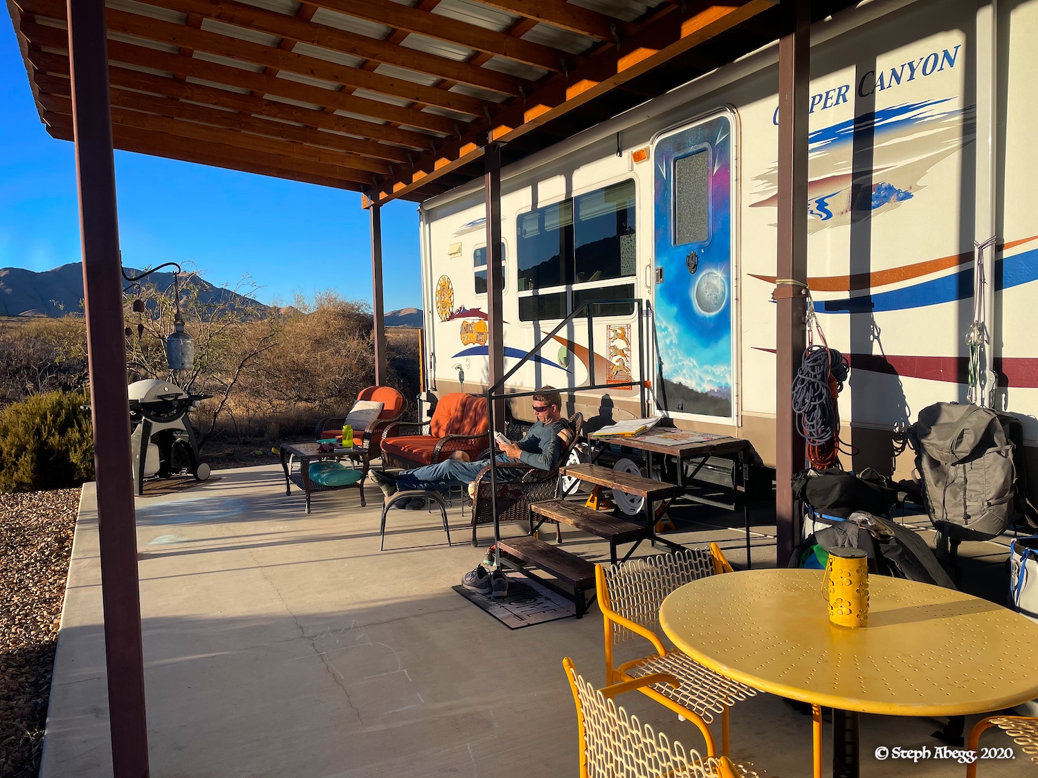 Another aspect that made this trip so enjoyable is that Nate and I had decided to stay in an Airbnb rather than the campground at the Stronghold. The Airbnb was in a trailer a mere 15 minutes drive from the trailhead. We enjoyed mornings in the heated warmth of the trailer drinking coffee and reading/studying, late afternoons on the porch watching native birds and javelina and sunset over the Stronghold, and evenings grilling and watching Netflix. The hosts Theresa and Ron were awesome, and even gave us fresh eggs and homemade Christmas cookies. Staying at the Airbnb rather than camping allowed me to get in some studying for an upcoming numerical analysis preliminary exam, which was sort of essential for me to be able to pull off such a long trip when I had such an important exam to prepare for.