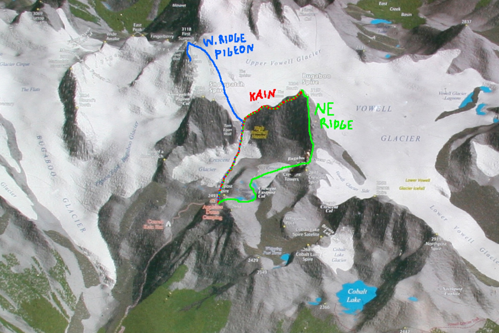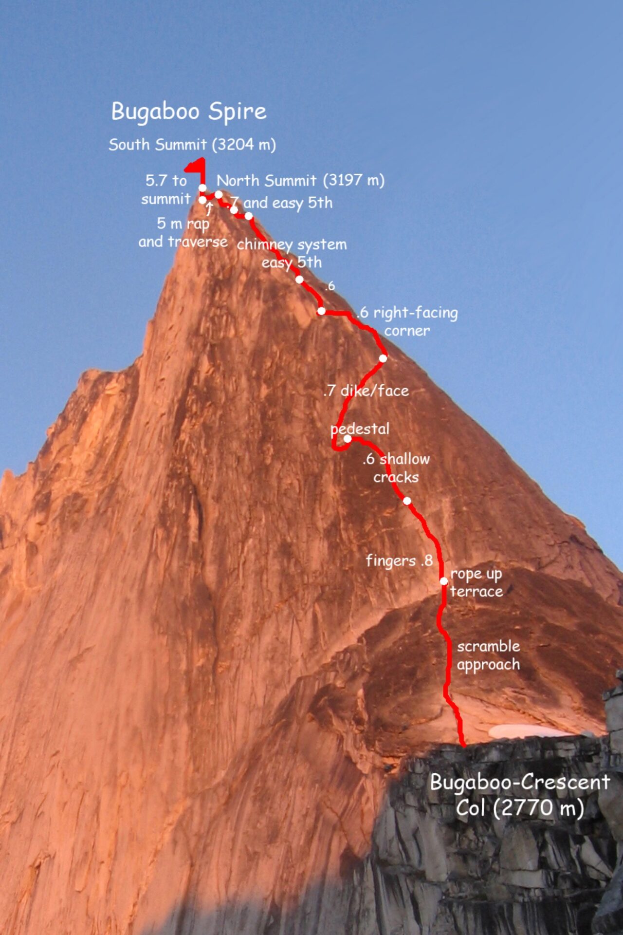 The Kain route was a good warm-up climb, and especially useful to scope out the descent route of the spire, but there are plenty of other routes in the Bugaboos I would climb instead.