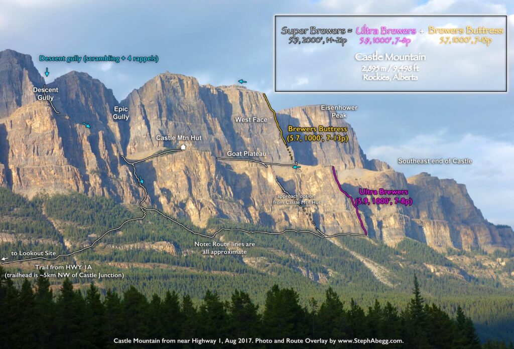 | Brewers Buttress (5.7, 7-13p, ~1000') |