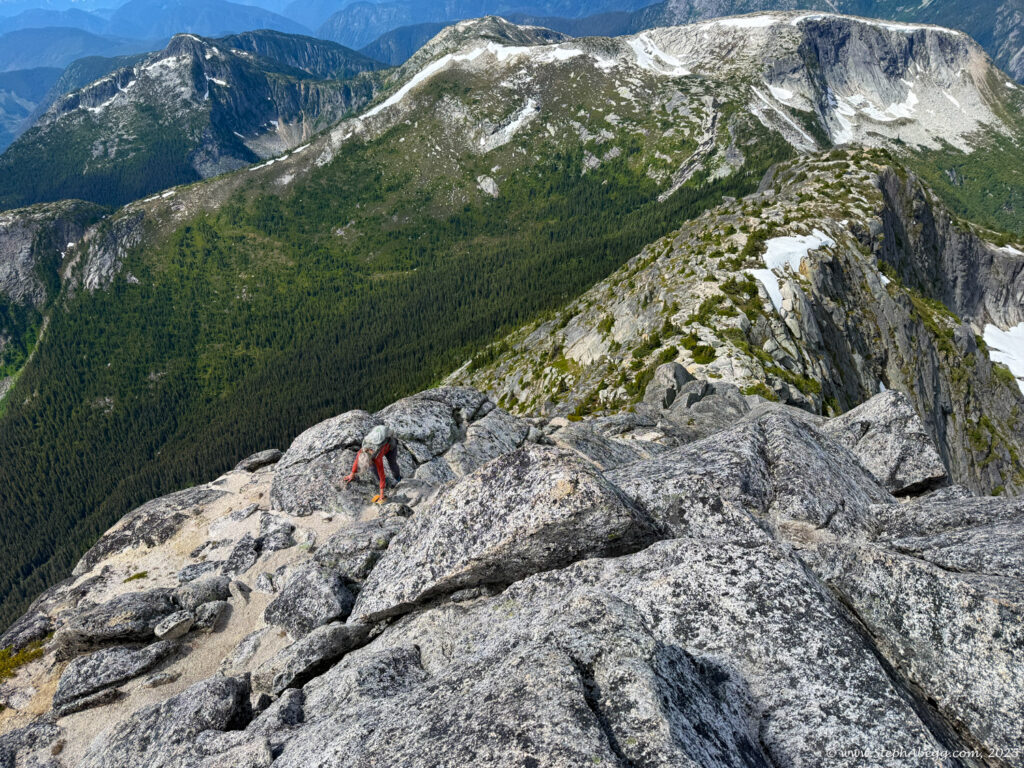 Since my mom wasn’t keen on the steep climber’s trail up Markhor or the 4th class downclimb along the ridge, she opted for the more straightforward route: hiking up the Needle Peak trail, scrambling to the summit (3rd class), and meeting me there.