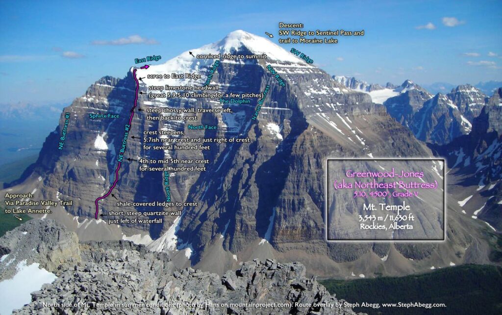 1. Mt. Temple as seen from the HWY 1 turnoff to Lake Louise. I snapped this photo as I headed to the Paradise Valley trailhead the evening before the climb. 2. In an attempt to keep our packs light yet give ourselves more security of the potentially-icy snow slopes on the top of Mt. Temple, we created hybrid crampons with steel toe parts and aluminum heel parts. 3. The route starts by climbing through a short steep wall of quartzite, just left of the waterfall. |