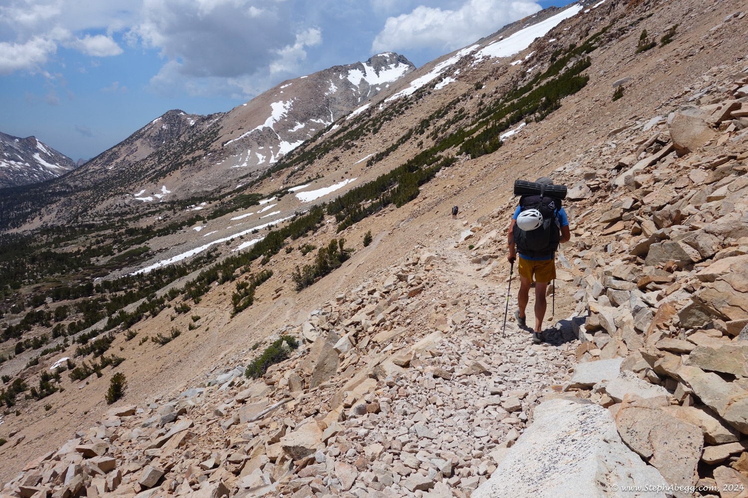 Due to the length of the approach (12.5 miles from trailhead to base of route), we decided to climb the South Face as part of a 2-night overnight adventure. We secured overnight permits (the new online permit system made this easy to do) for Charlotte Lake, 8.5 miles from Kearsarge Pass trailhead on the east side. On Thursday, we hiked in and enjoyed an evening at camp. On Friday we climbed Charlotte Dome. On Saturday we hiked out and began the 15-hour drive back to Estes Park.
