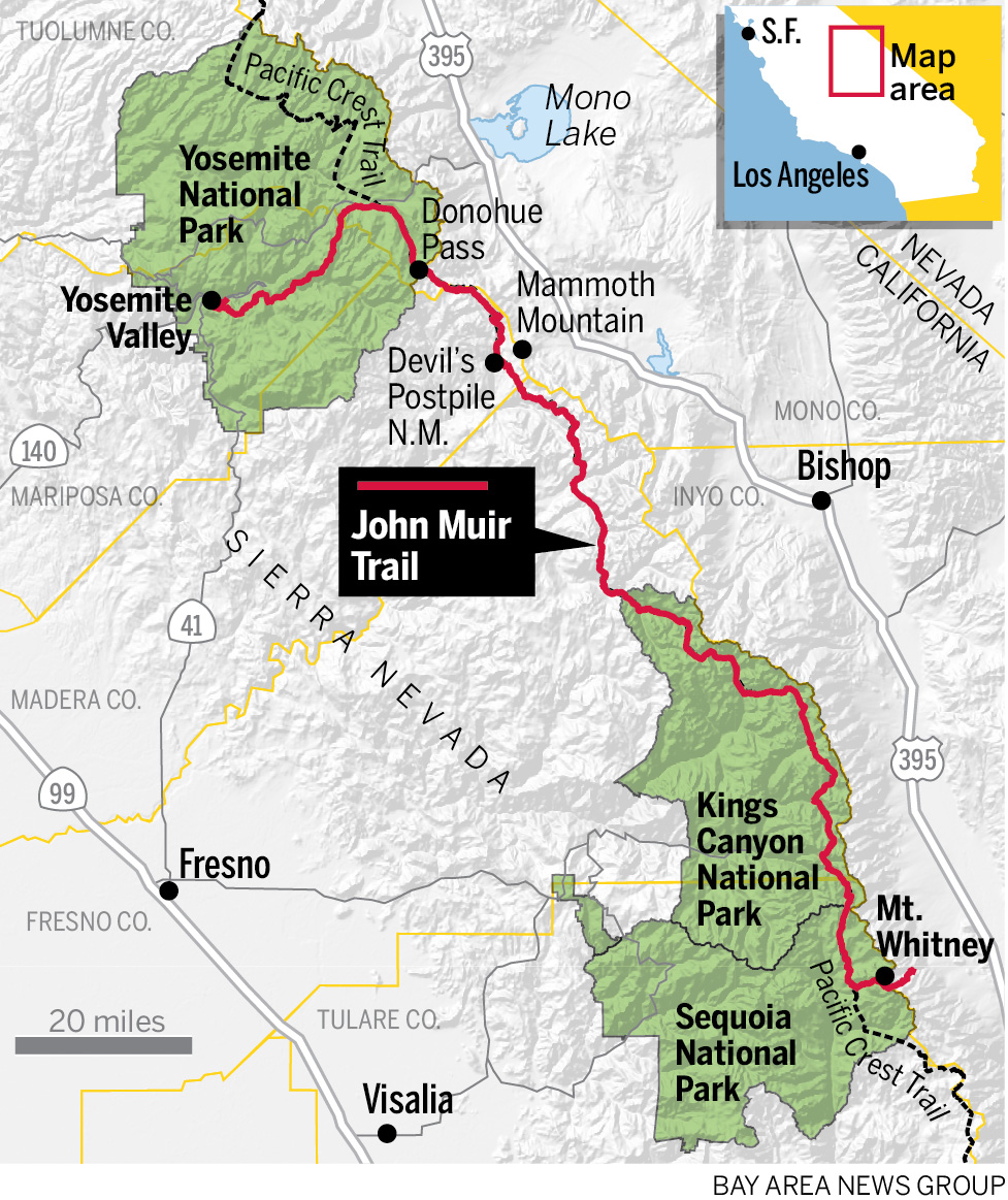 In early 2005, 3 friends and I decided to plan a hike of the John Muir Trail in the Sierra Nevadas of California. This is a 222 mile hike from Yosemite to Mt. Whitney through some of the highest and most beautiful sections of the Sierra Nevadas. We planned to hike the JMT in September, North to South, and in 3 weeks; we wanted to give ourselves enough time to scramble up some nearby peaks and explore some of the beautiful high country around the trail.