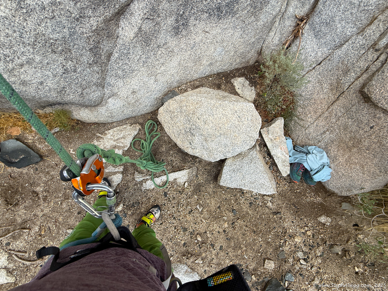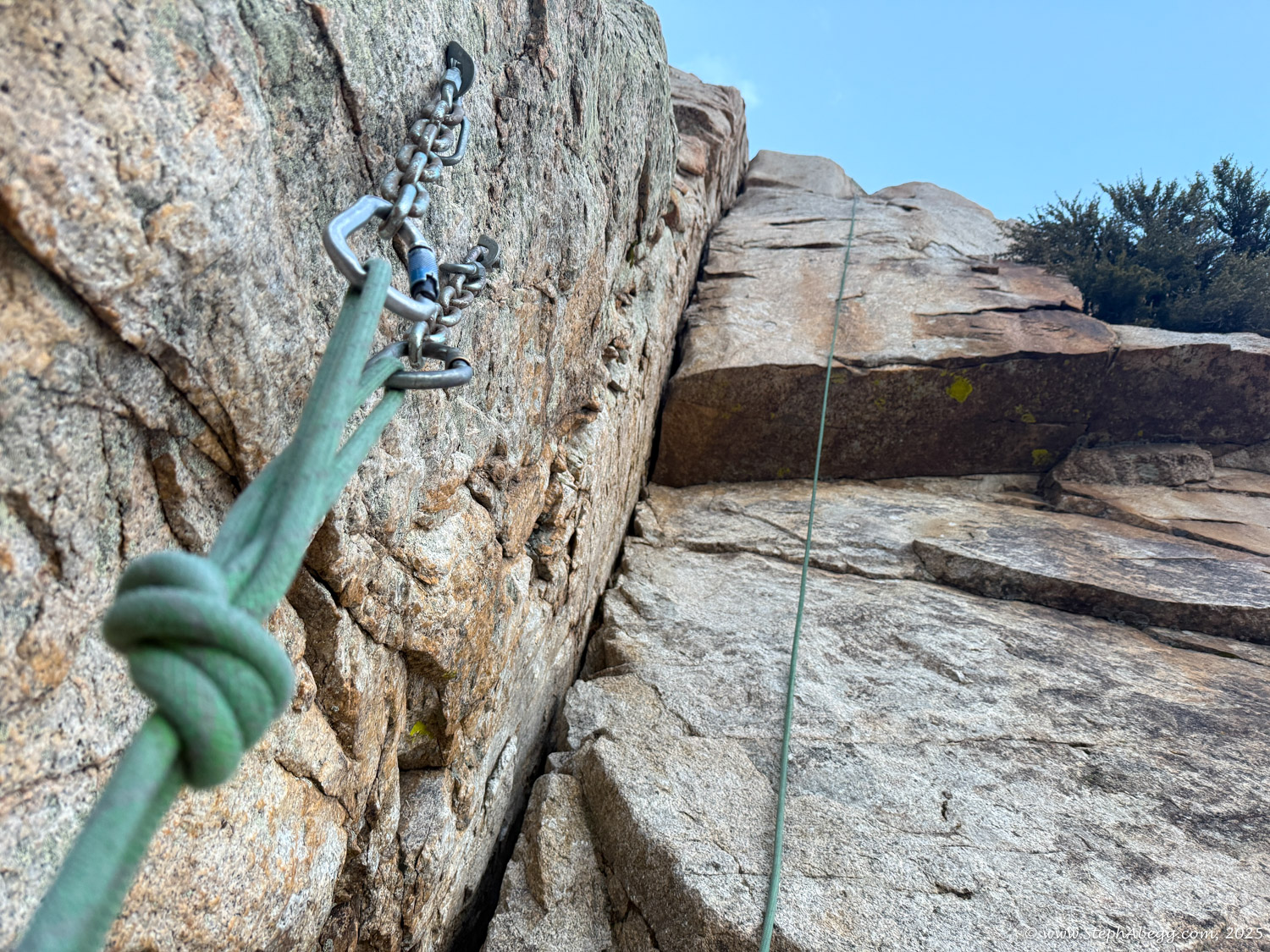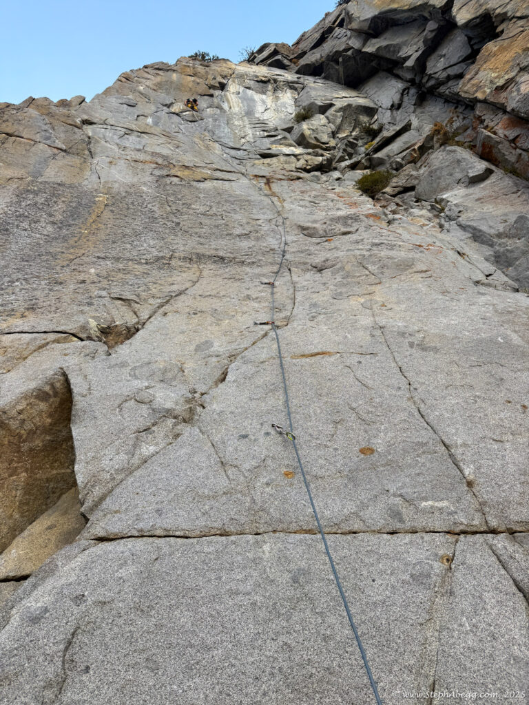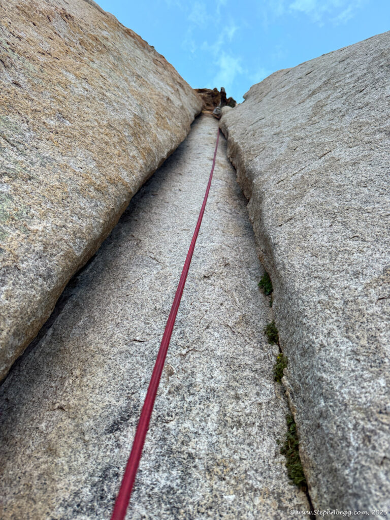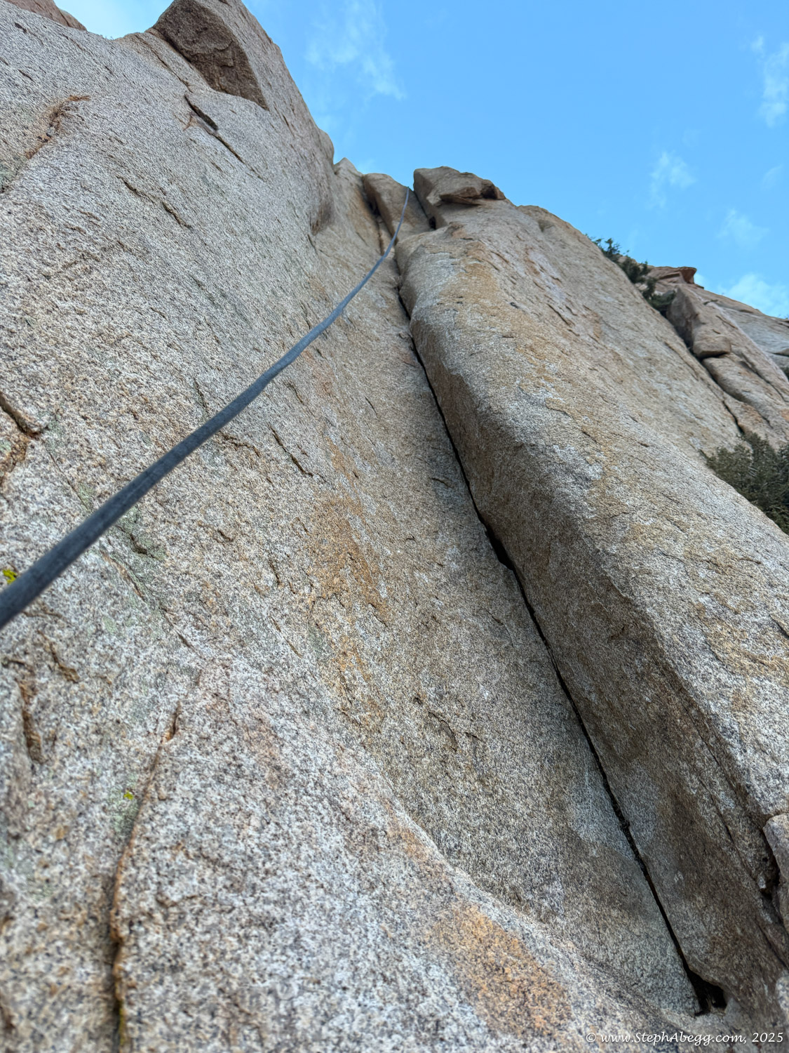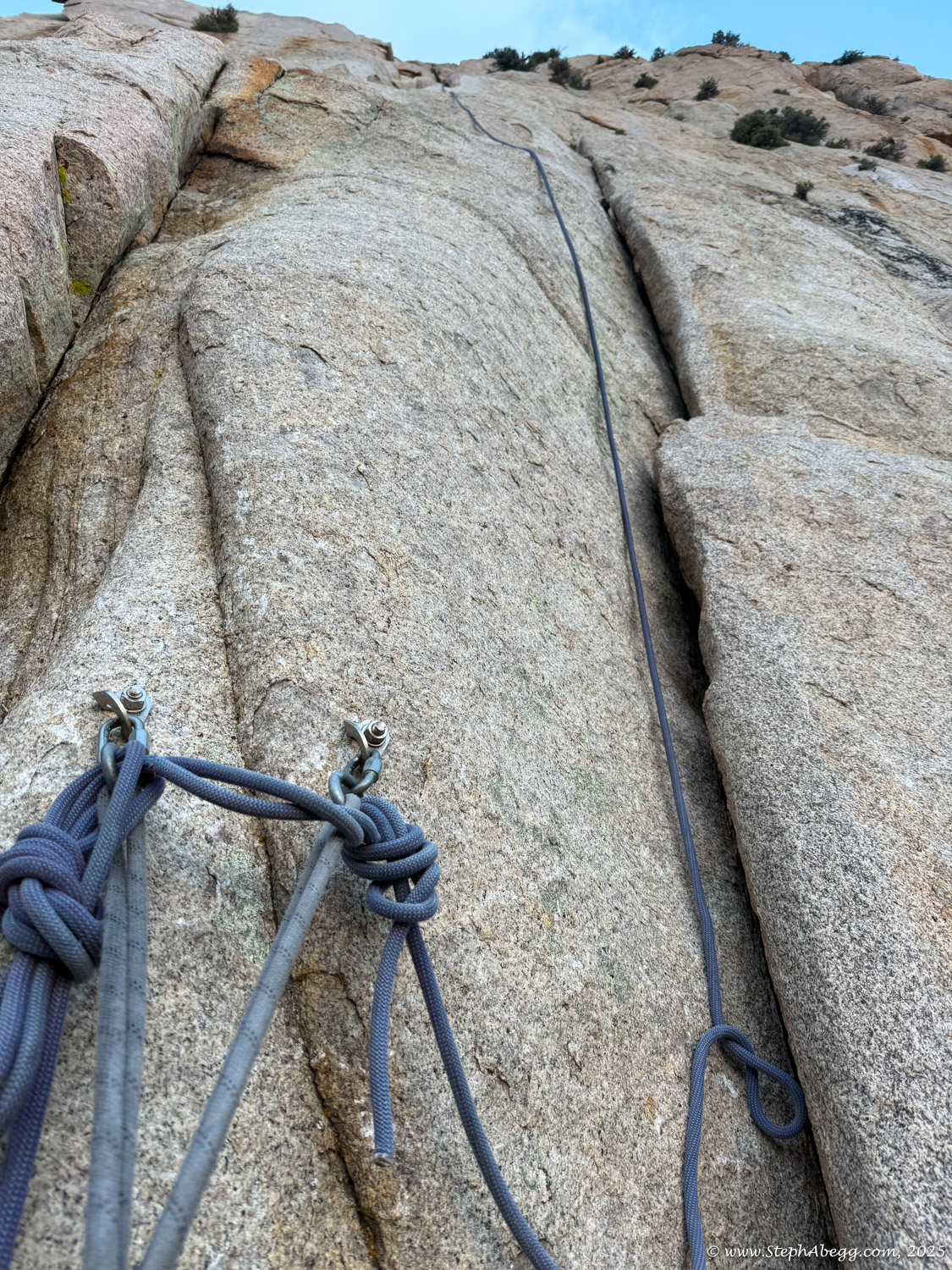 On the first day (August 24), I was meeting Brett for a pre-storm morning of cragging in Pine Creek. I’d heard about a 10-pitch route with fixed ropes—perfect for toprope soloing—called