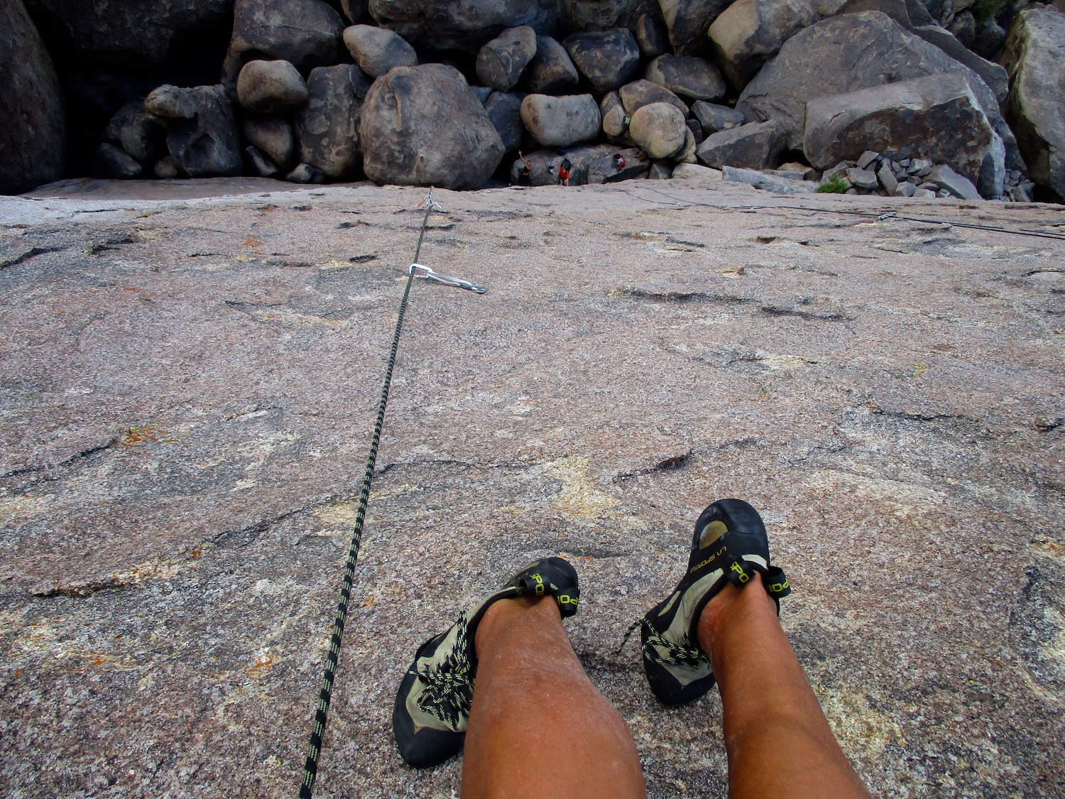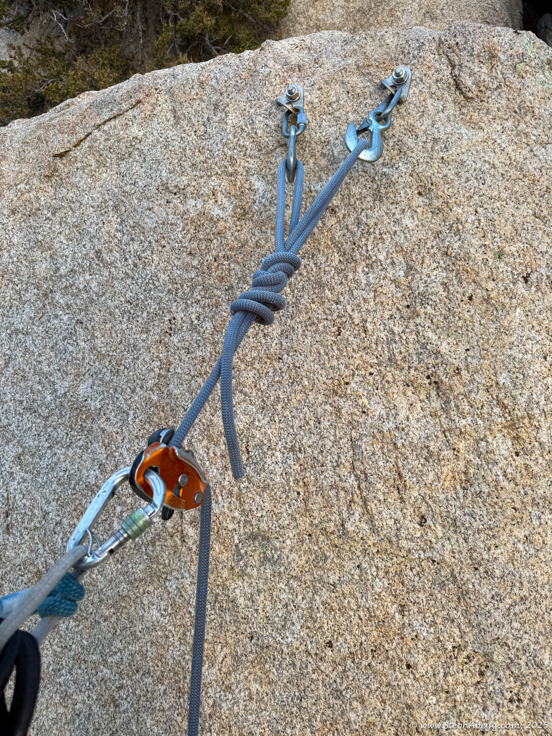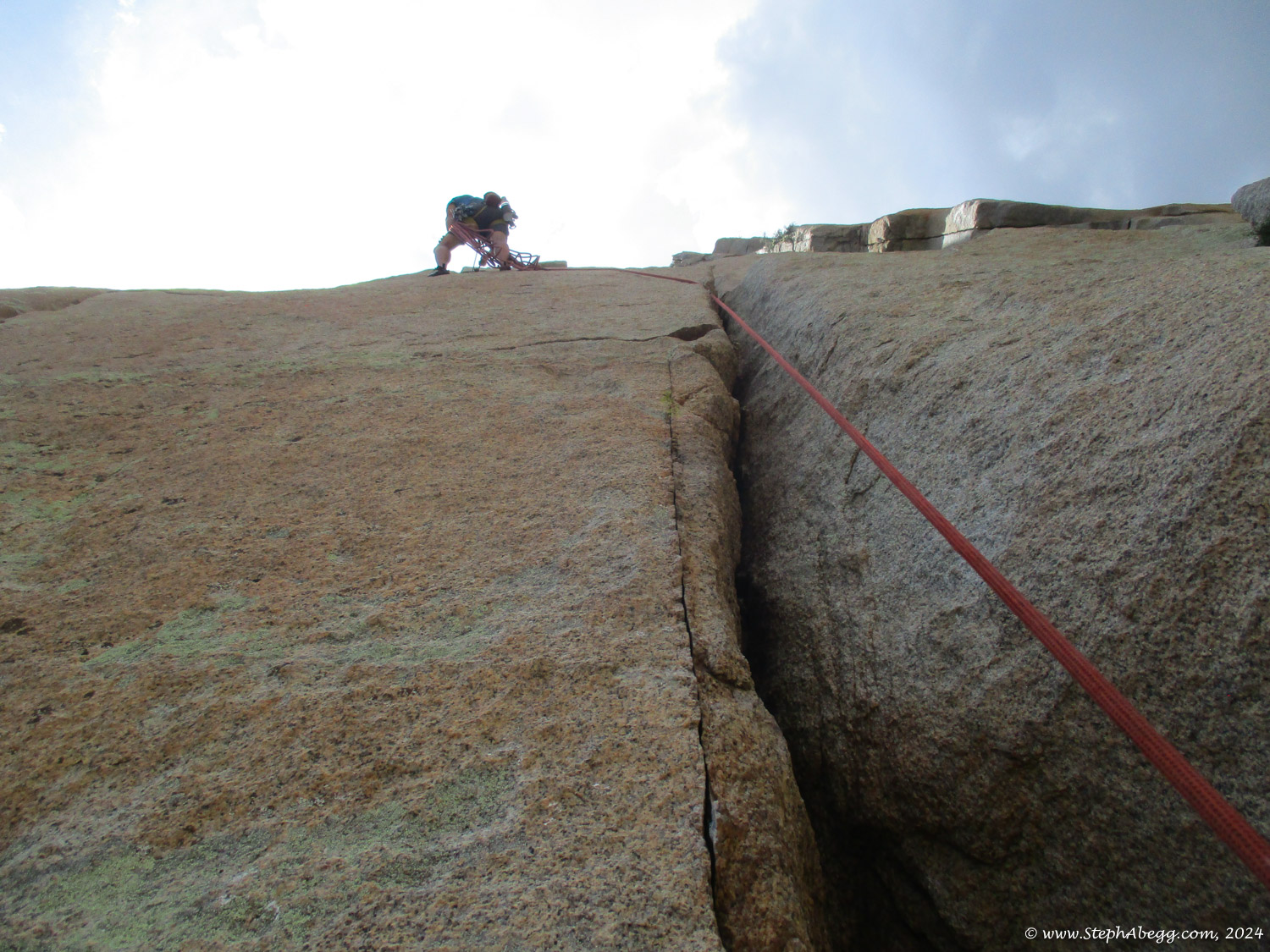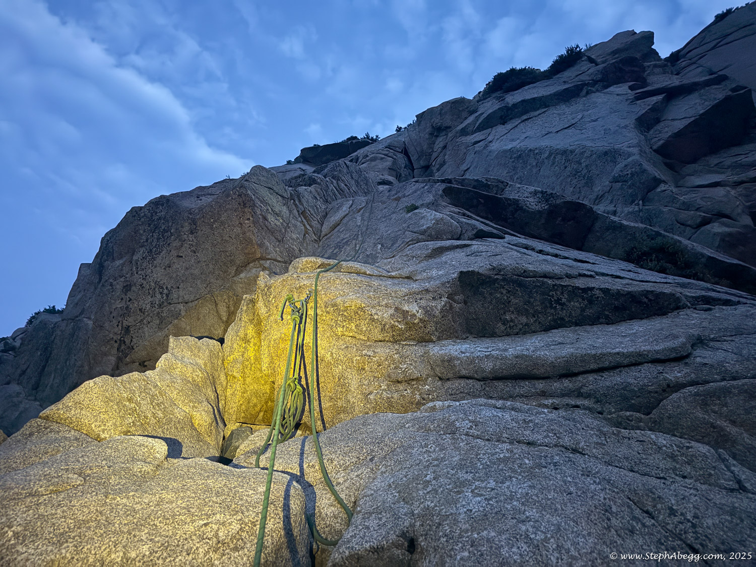 On the first day (August 24), I was meeting Brett for a pre-storm morning of cragging in Pine Creek. I’d heard about a 10-pitch route with fixed ropes—perfect for toprope soloing—called
