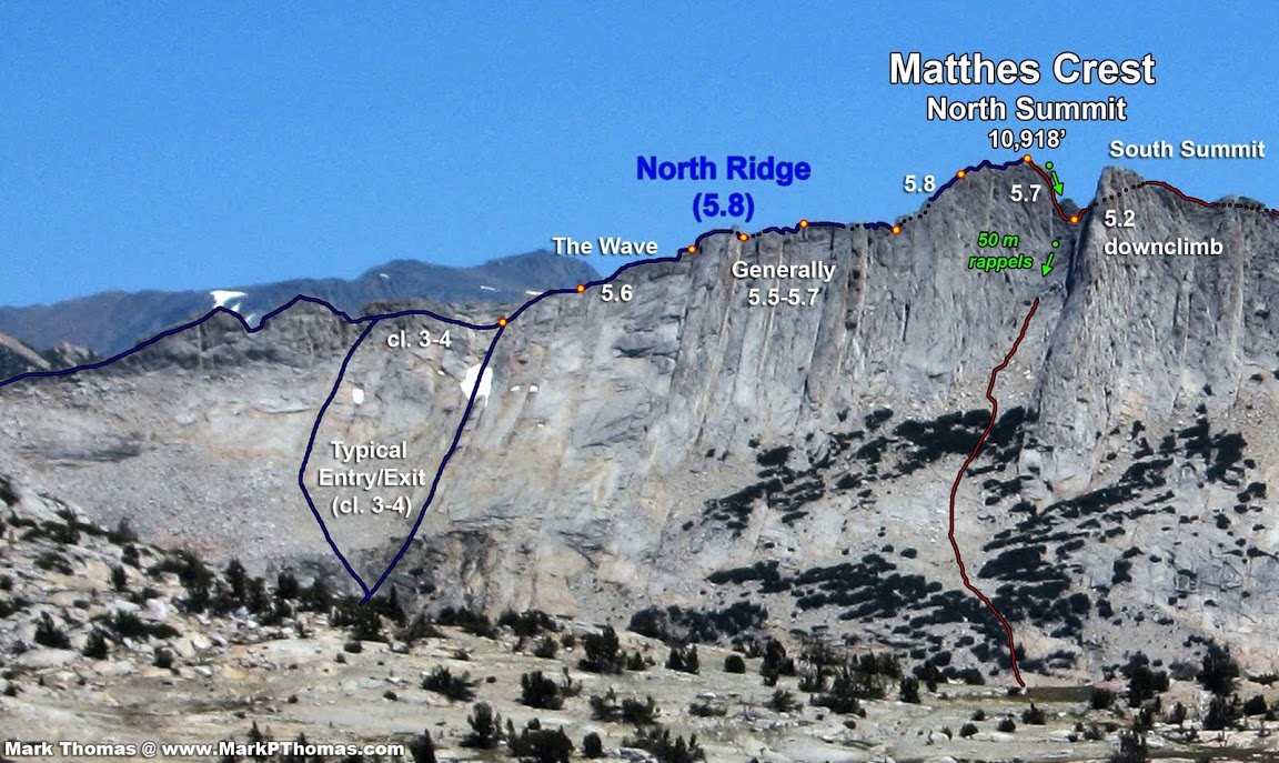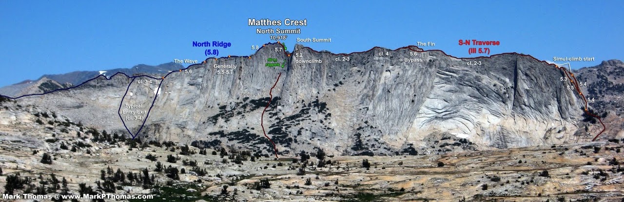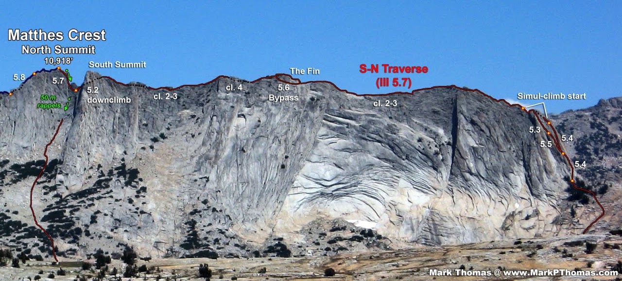North Face (5.9) of Fairview Dome. Passing through this area, we couldn't help but be impressed by the mile-long knife-edge fin of Matthes Crest we saw in the distance. I had been fantasizing about traversing Matthes Crest ever since I had seen this fin of glacier-sculpted granite while doing the