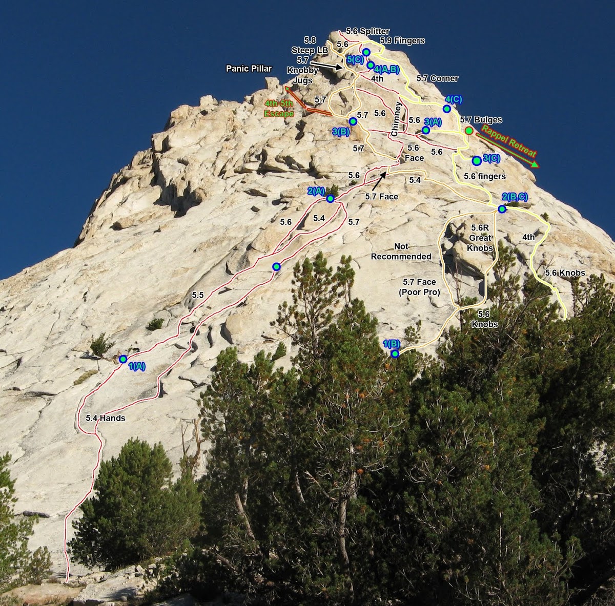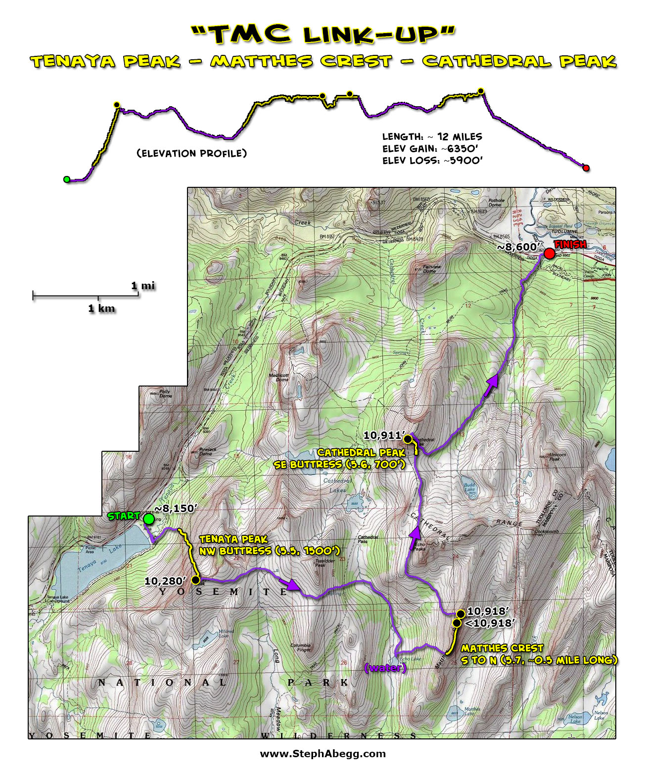 We thought a cool way to approach a climb along Matthes Crest would be via the slabby Northwest Buttress (5.5) of Tenaya Peak. Then, after traversing Matthes Crest, on the hike out one could climb up the Southeast Buttress (5.6) of Cathedral Peak, a Tuolumne icon. We decided to try to fit this so-called "TMC Linkup" into our trip when we drove back north after climbing in the Sierra.
