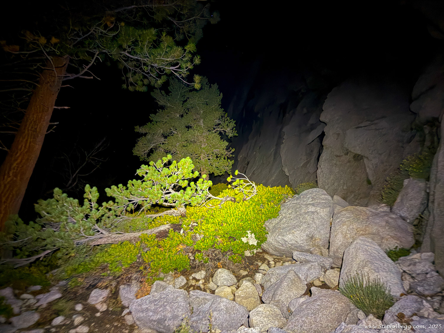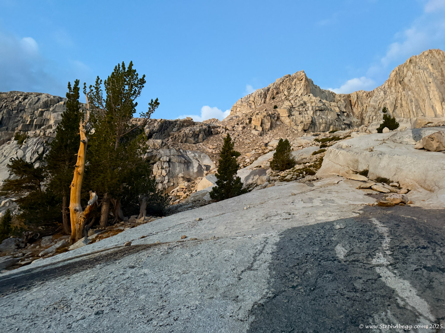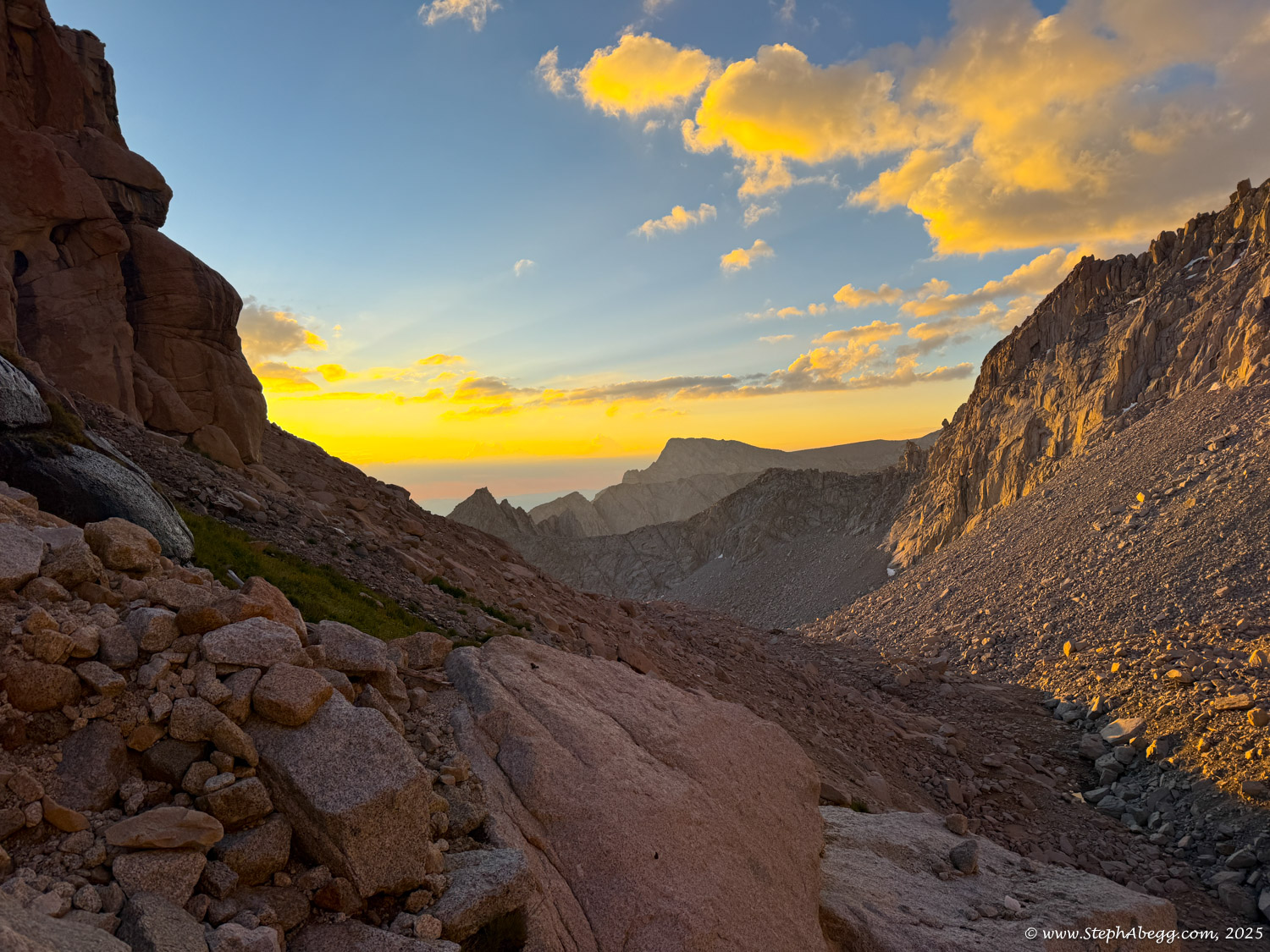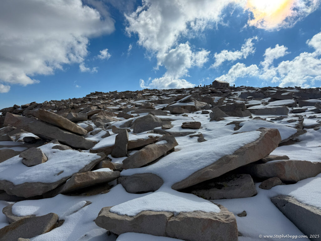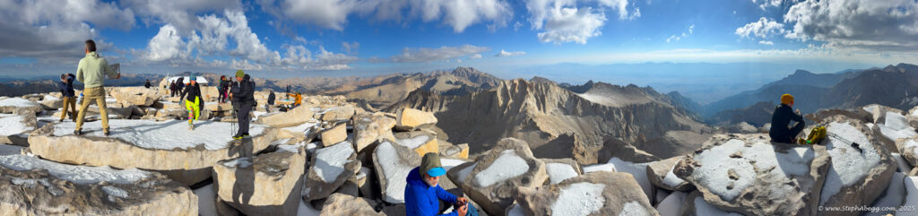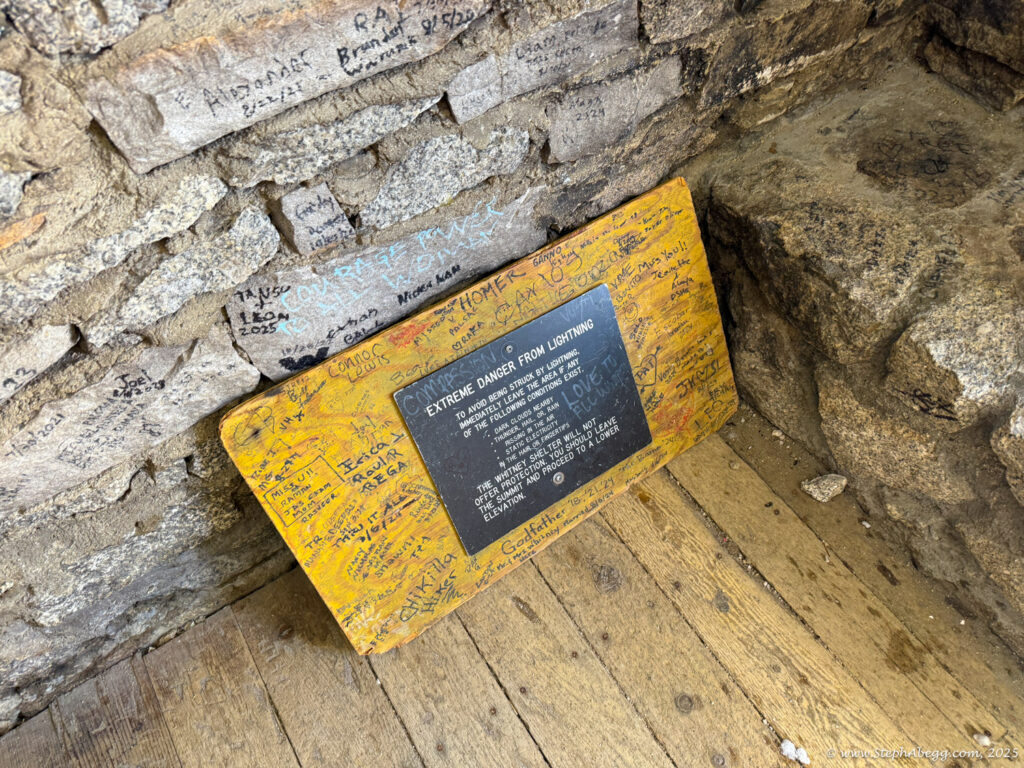 At 14,505 feet, Mount Whitney stands as the highest peak in the contiguous United States. The forecast wasn’t ideal—heavy rain was expected by early afternoon—but with a morning window of decent weather, I decided it was a good day for a fitness push to the summit. My plan was: start around 4 a.m. (sunrise was 6:16 a.m., and I wanted to watch it hit Whitney and Keeler Needle), ascend via the
