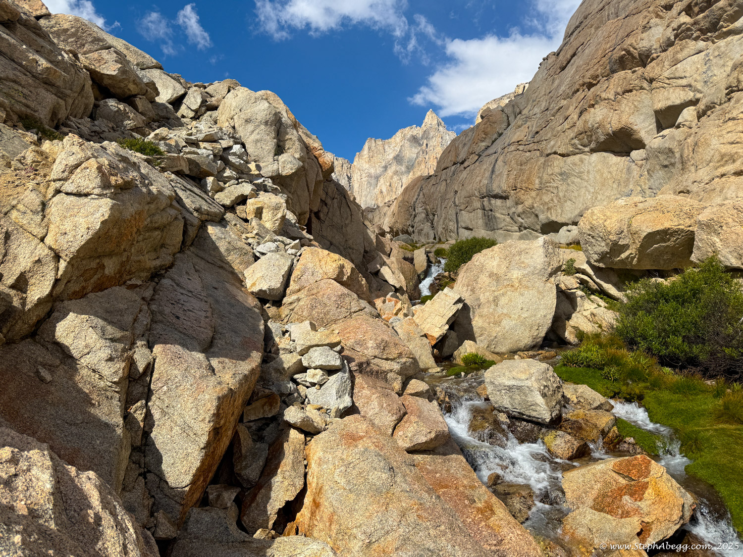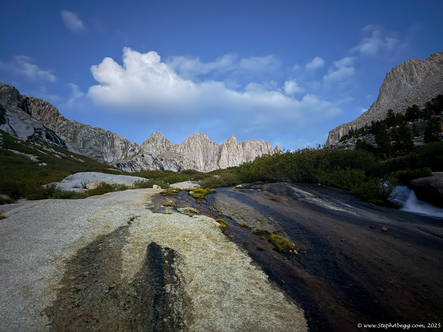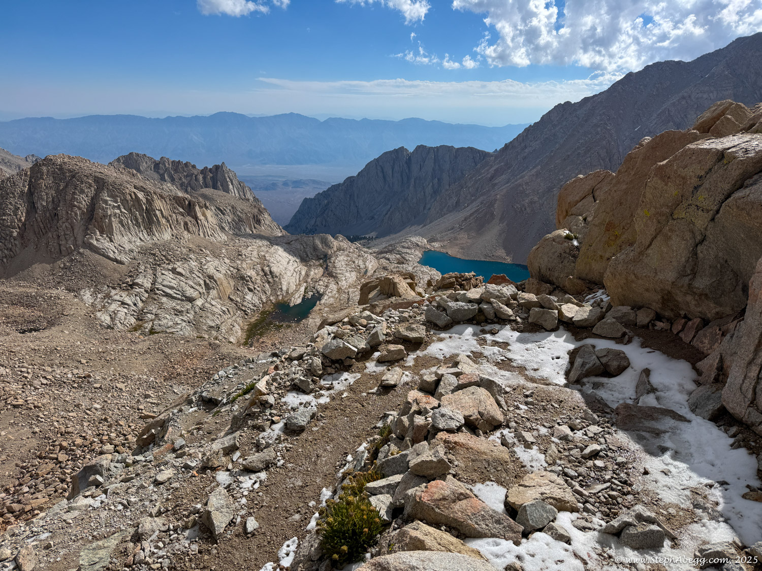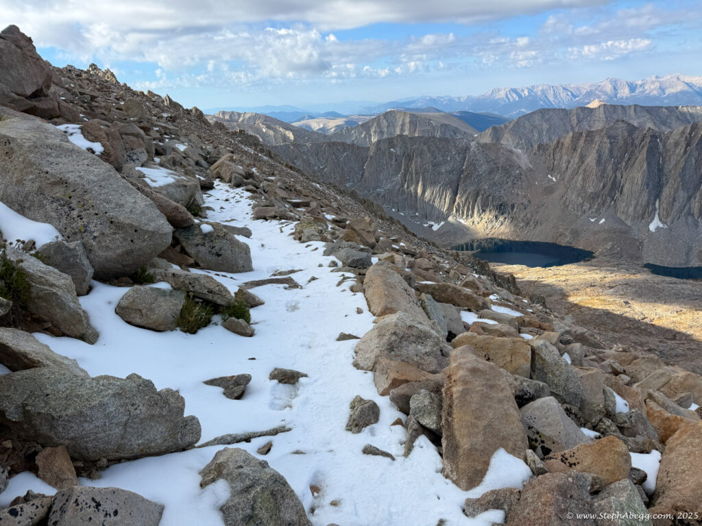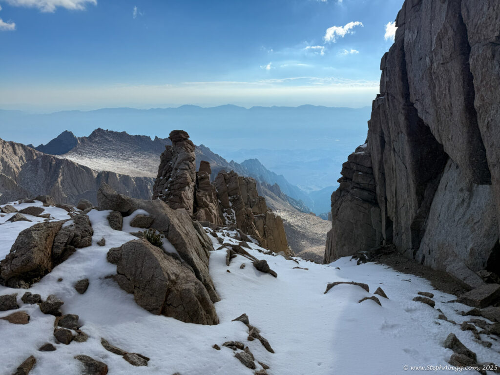 For the descent, I planned on the Whitney Trail, a strenuous but well-traveled path of switchbacks, cliffs, and waterfalls that delivers hikers to the summit of the Lower 48’s high point.