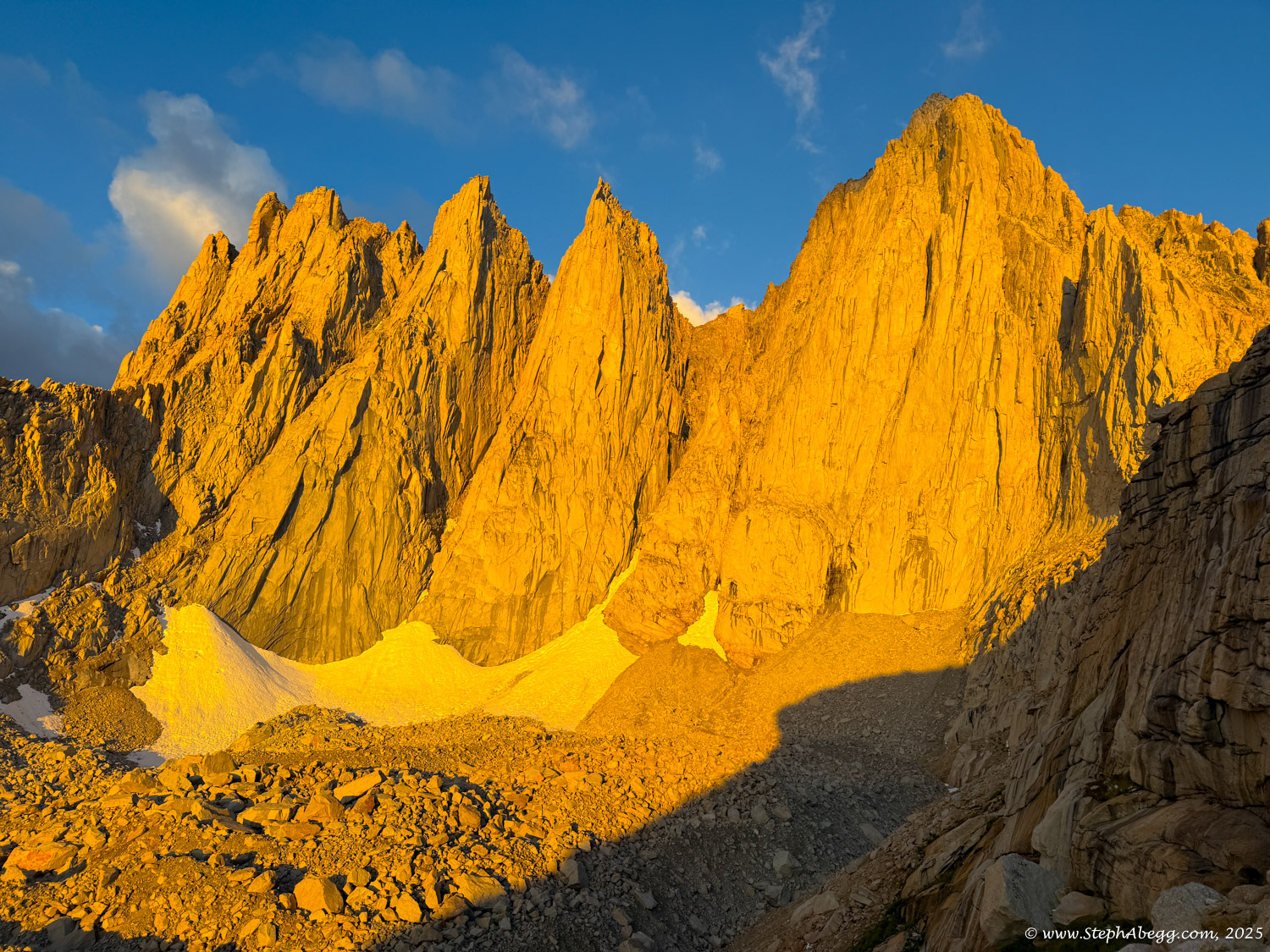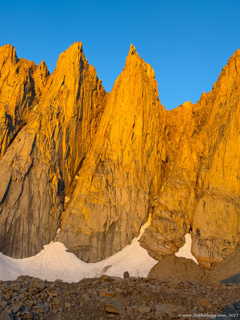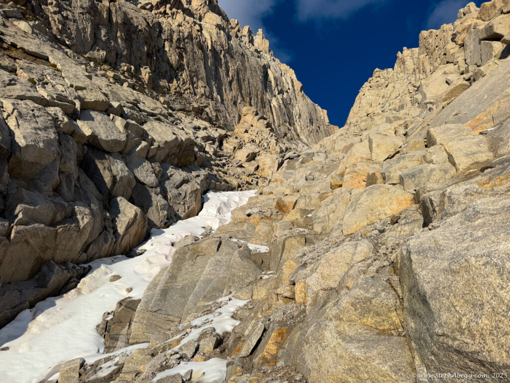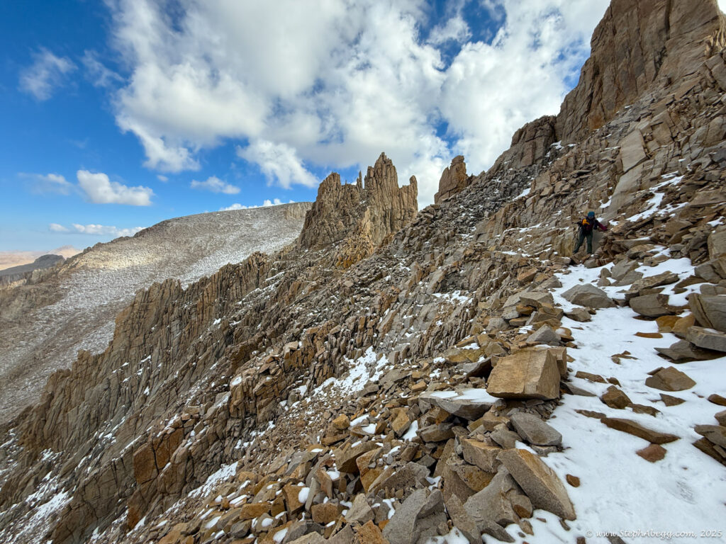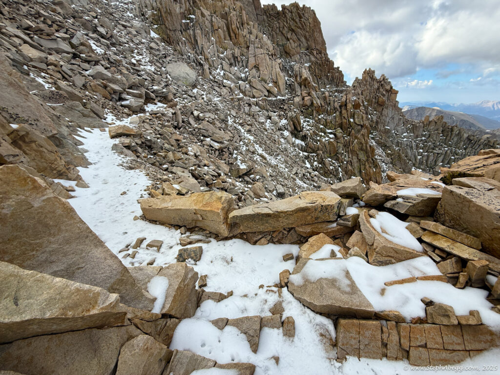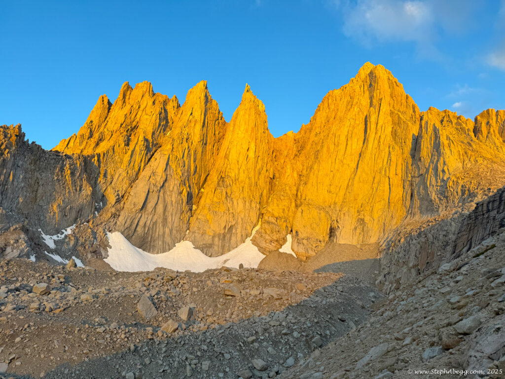 Mountaineer’s Route is the “other moderate way” up Whitney—more direct, more adventurous, and blessedly less crowded than the main trail. Conditions vary: sometimes it’s a low-angle ice climb, sometimes a tedious scree slog, but always a worthy alternative to the standard route. While most parties stretch it into a multi-day trip with a camp at the Boy Scout Lakes, it’s also a classic car-to-car push.