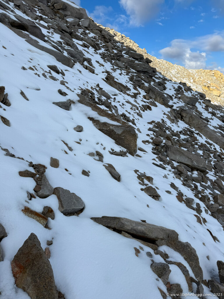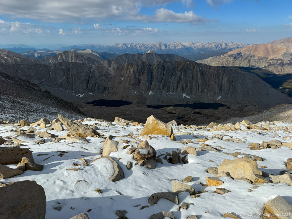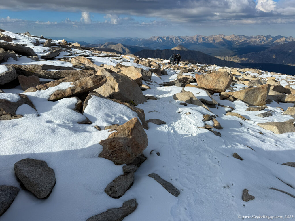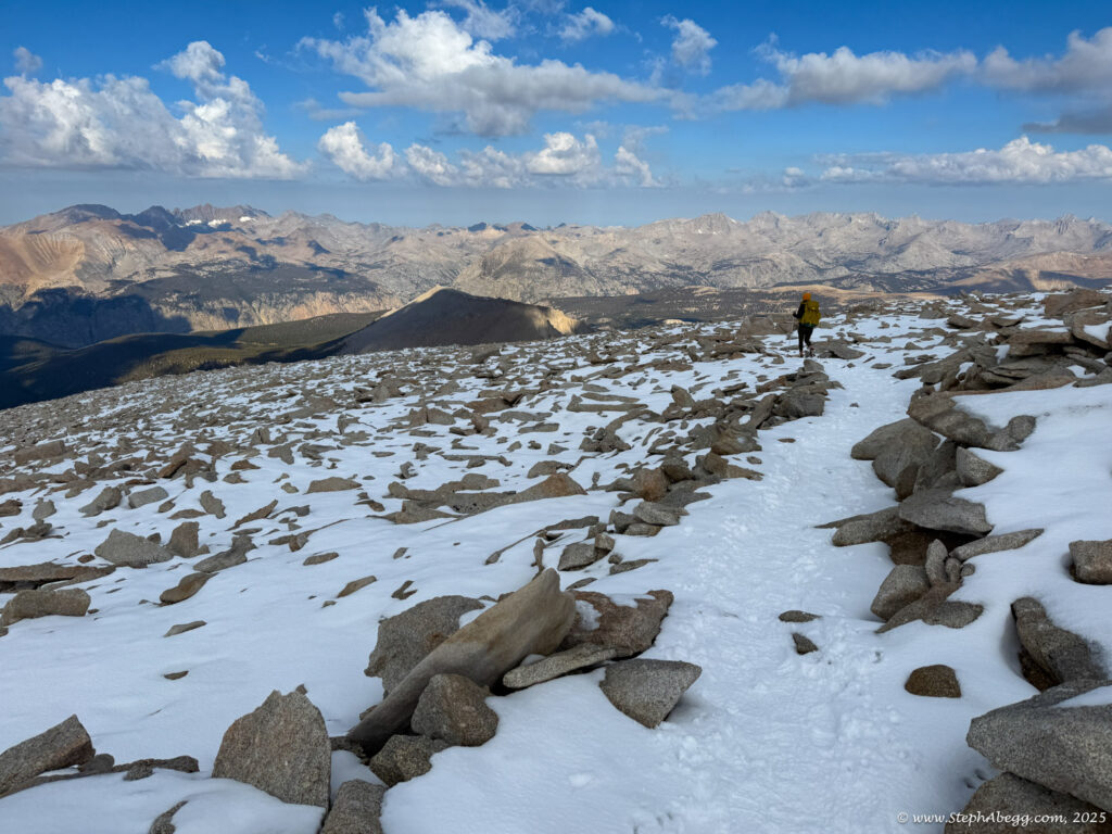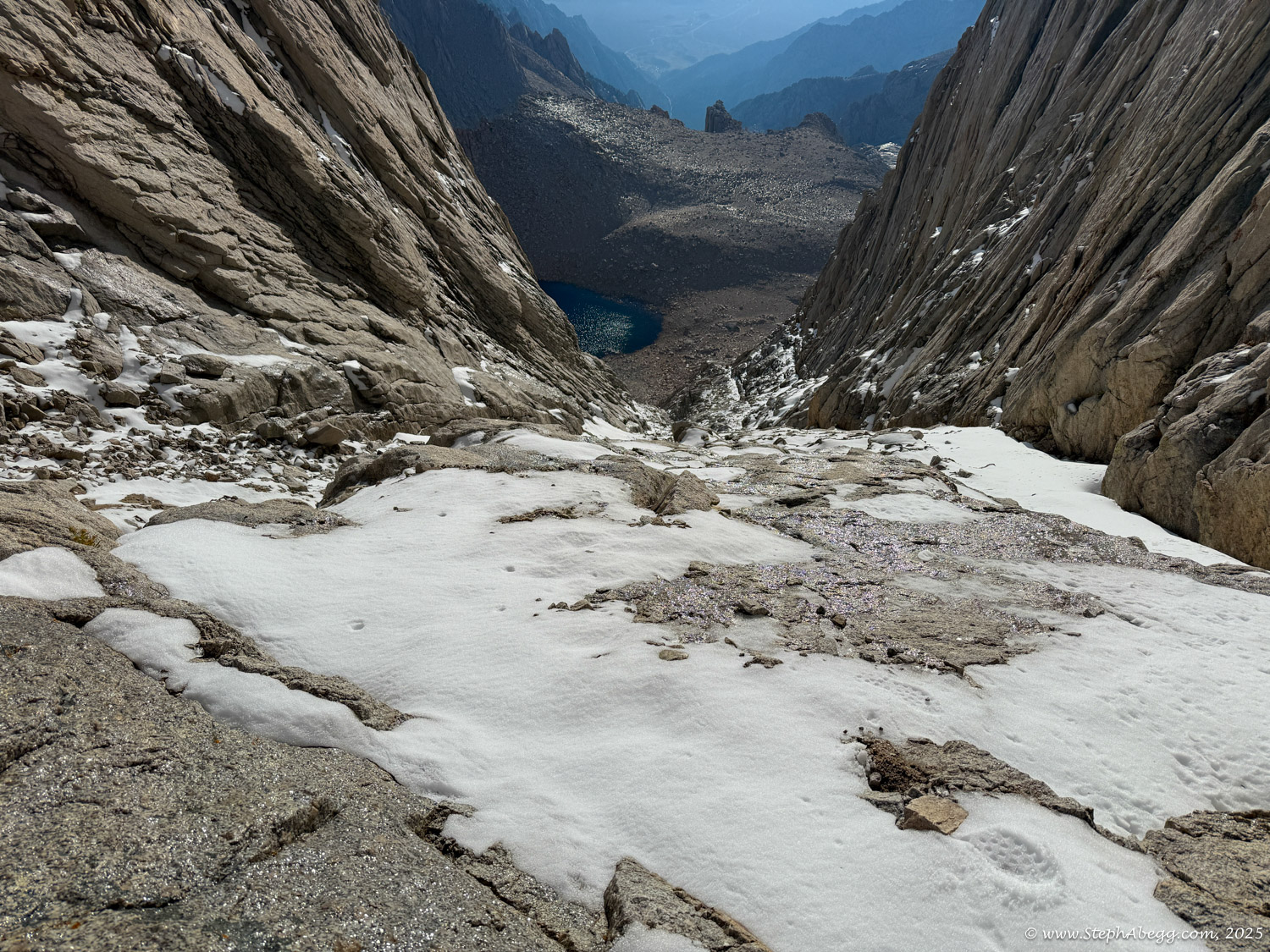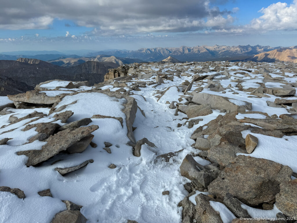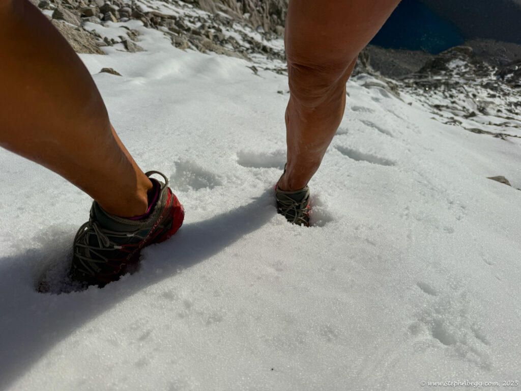 What follows is a trip report from my quick up-and-over of Mount Whitney. I never did use my crampons, but there was indeed a fair amount of fresh snow high on the mountain, so the