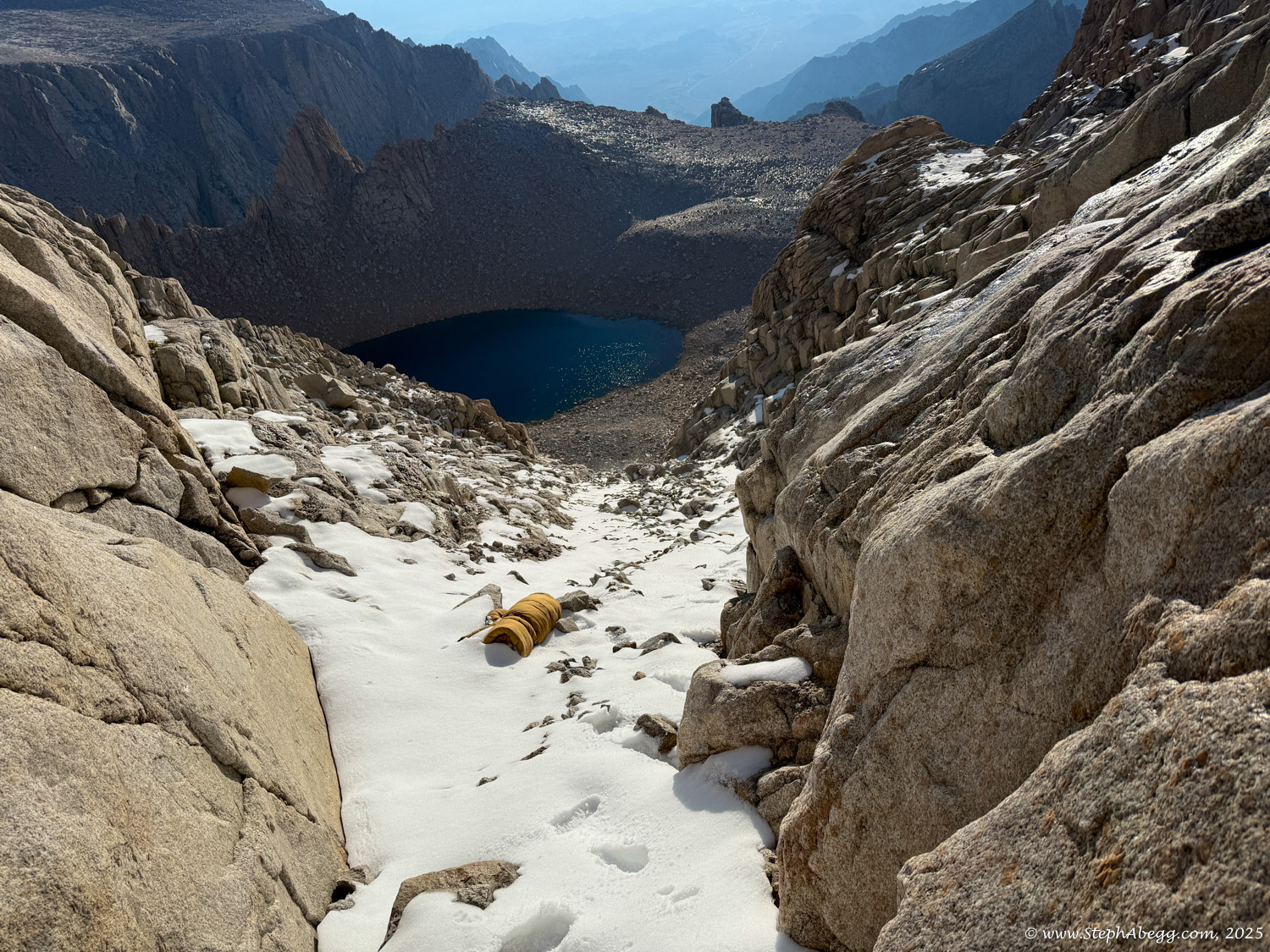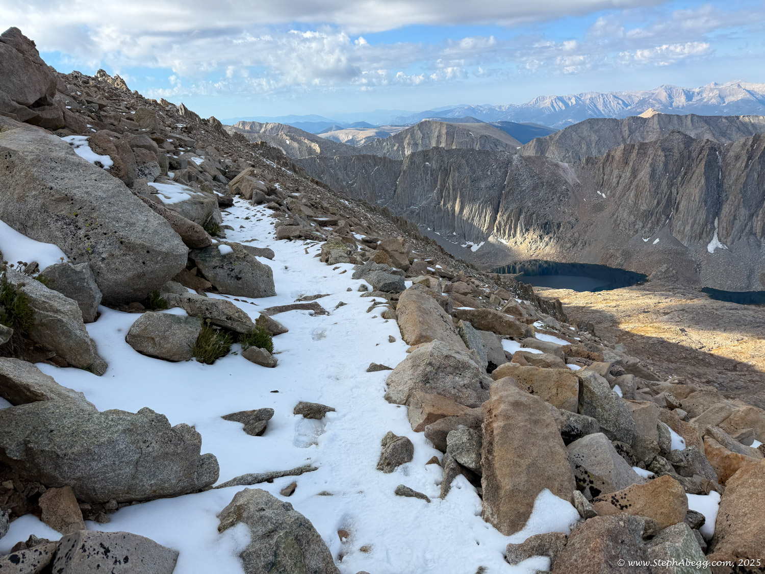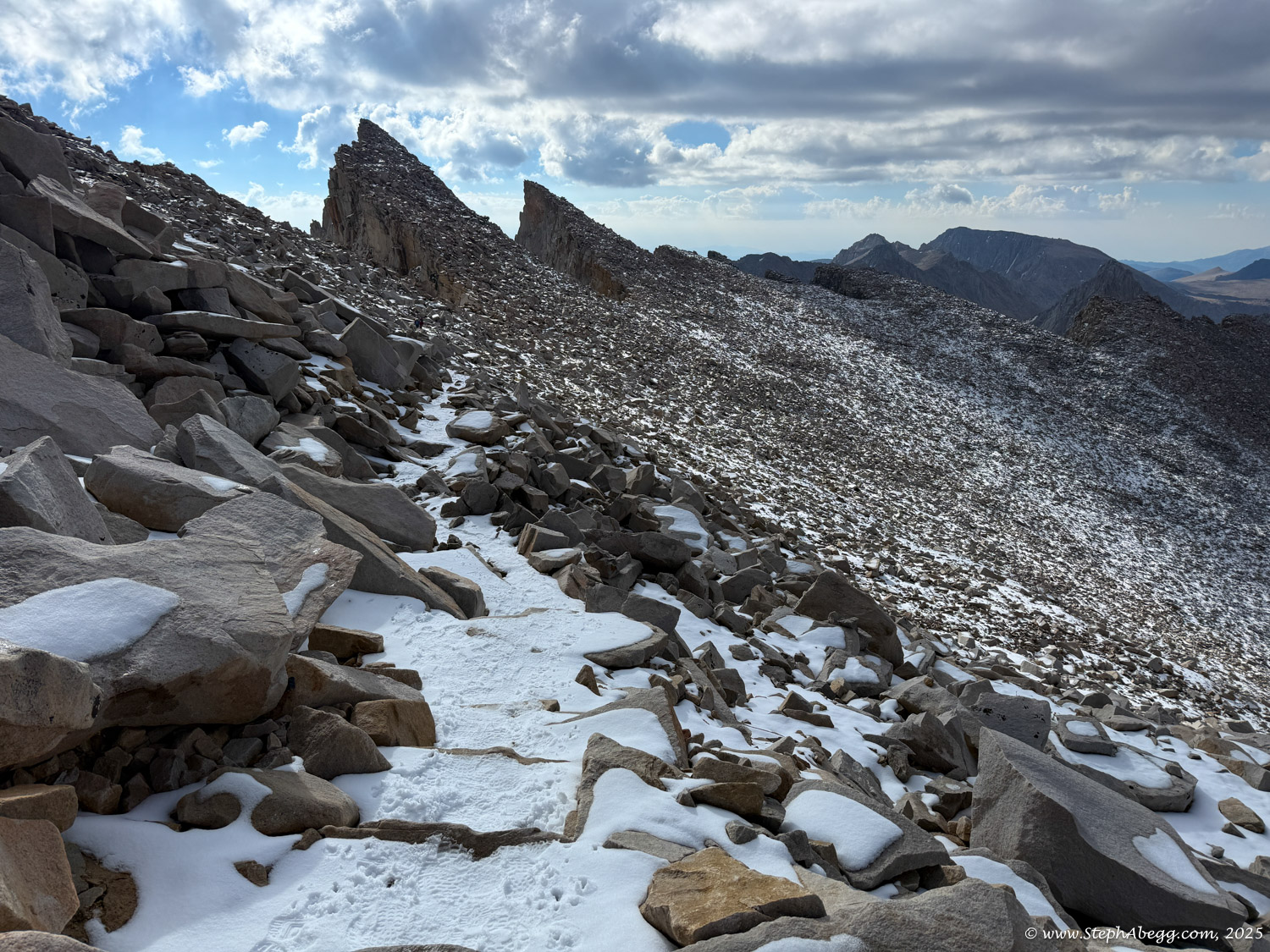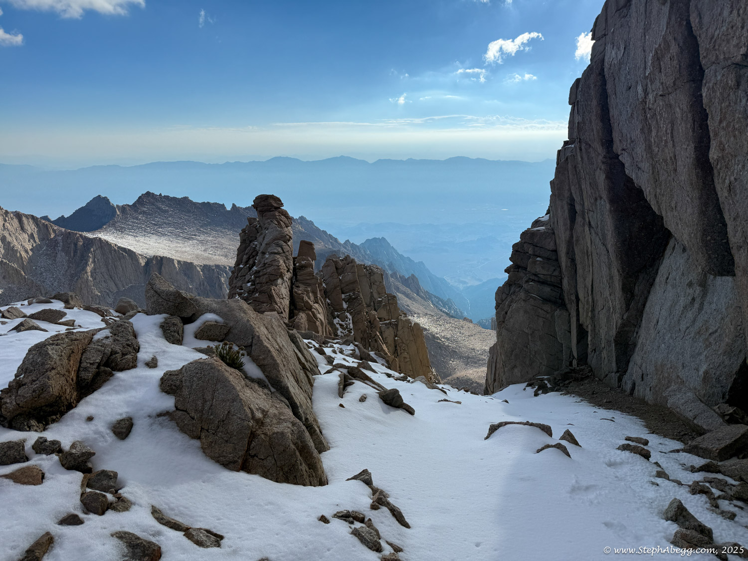 What follows is a trip report from my quick up-and-over of Mount Whitney. I never did use my crampons, but there was indeed a fair amount of fresh snow high on the mountain, so the
