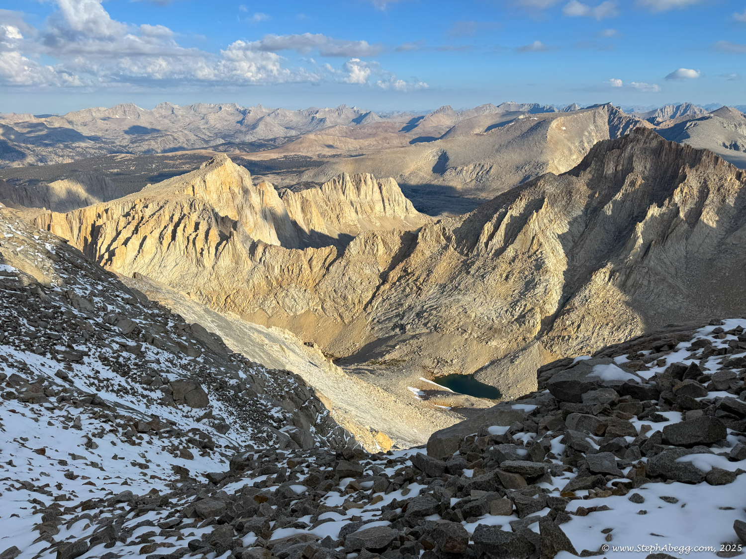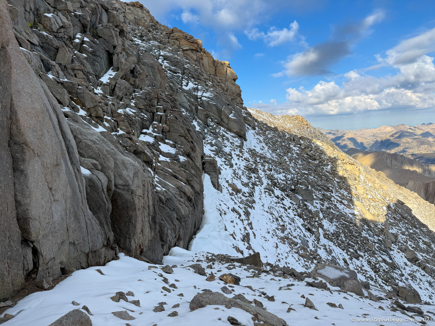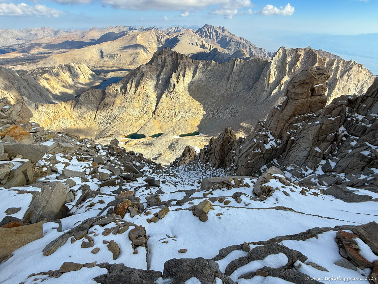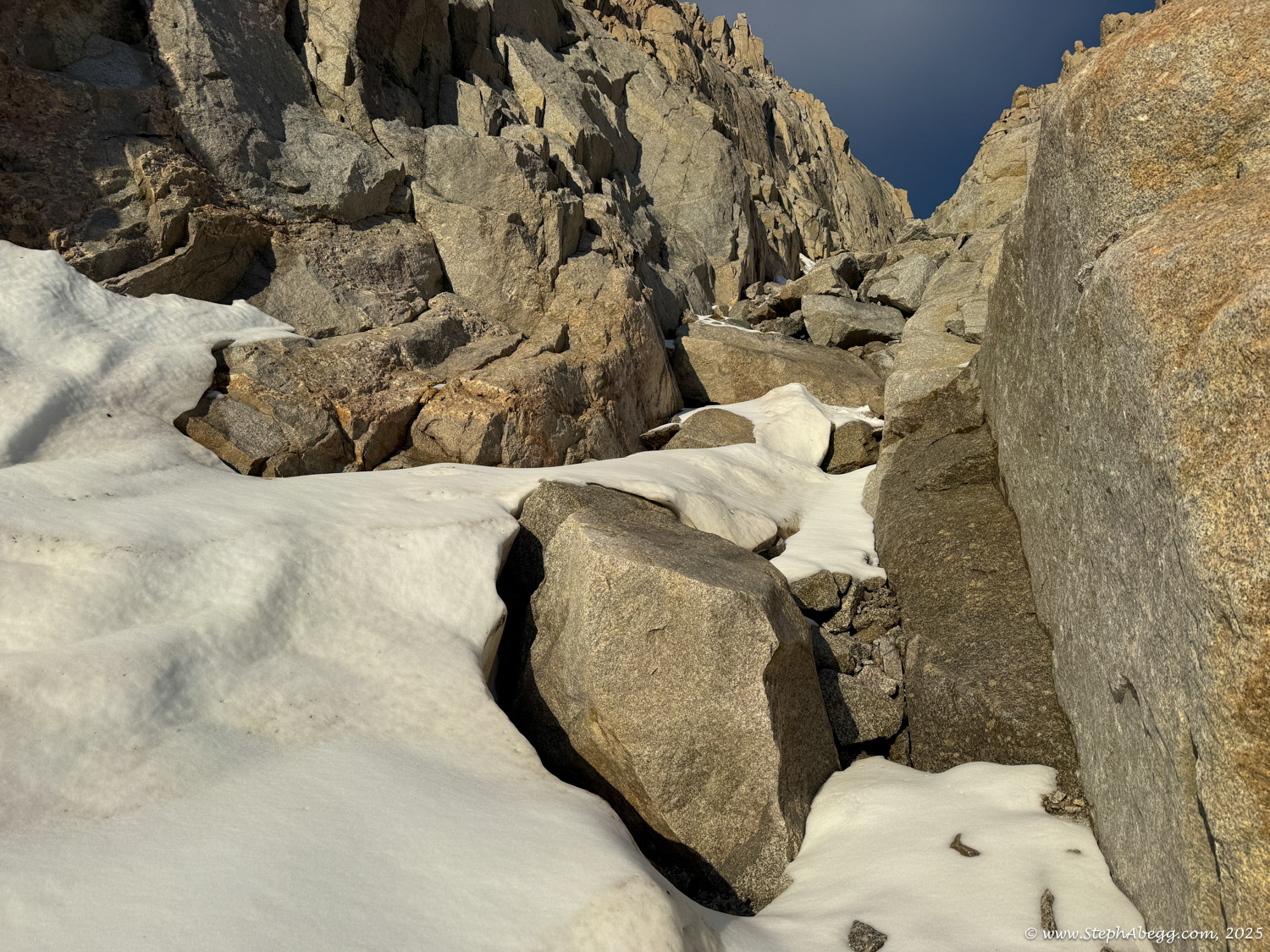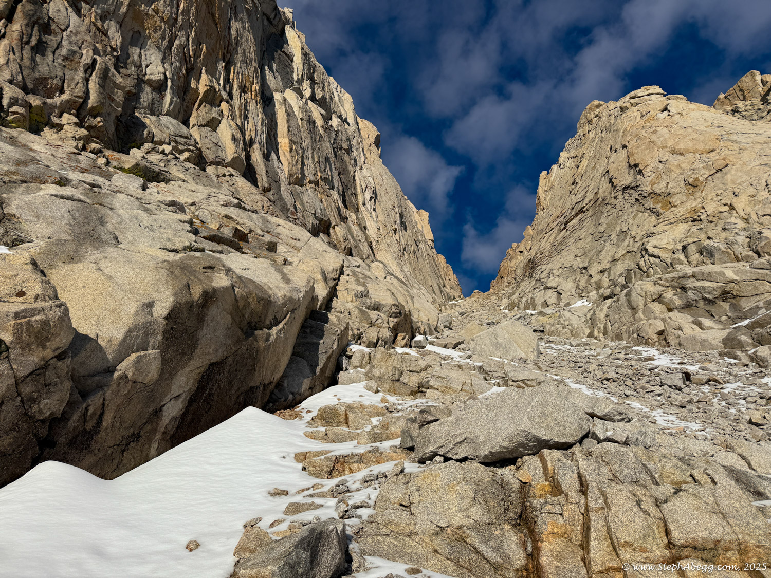 What follows is a trip report from my quick up-and-over of Mount Whitney. I never did use my crampons, but there was indeed a fair amount of fresh snow high on the mountain, so the