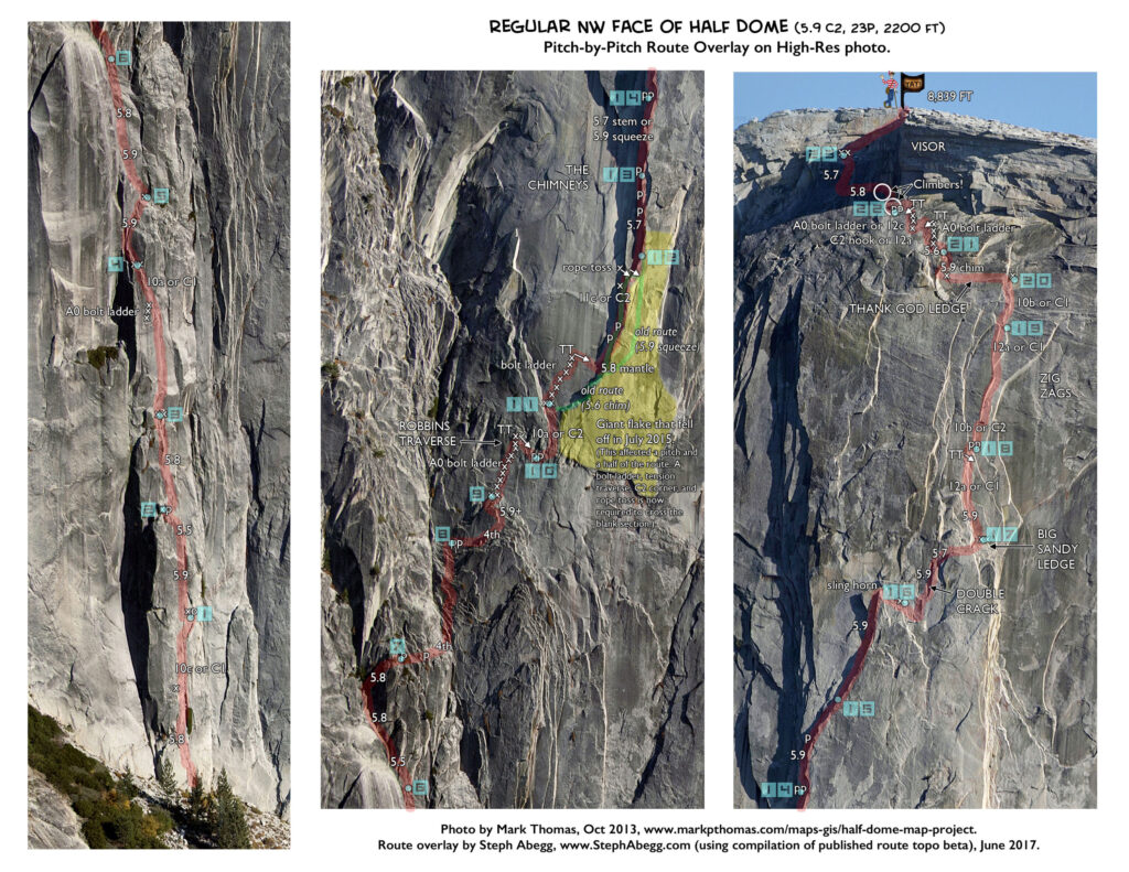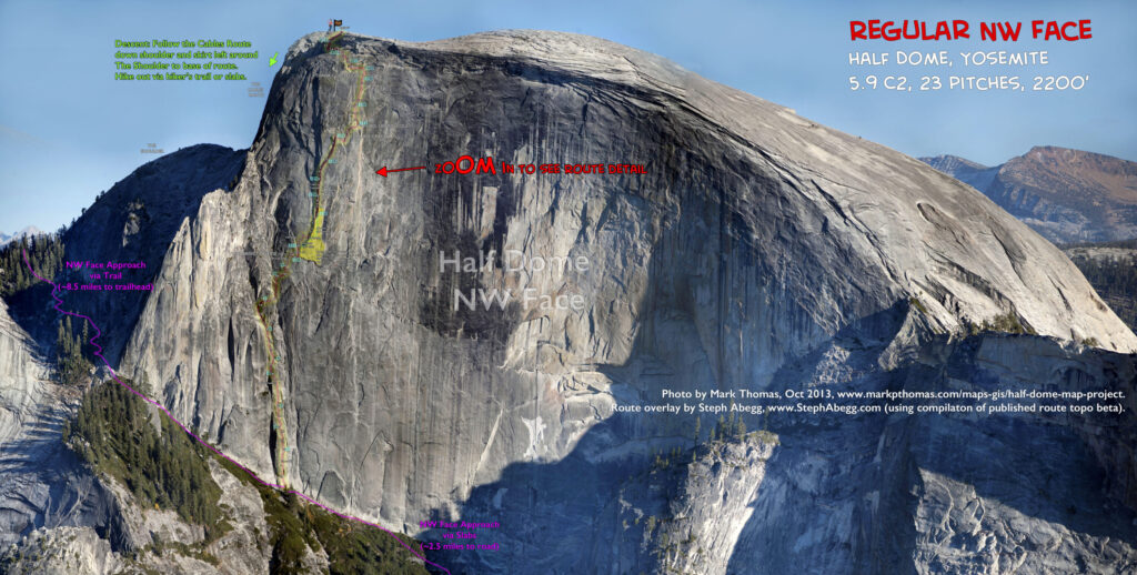 Half Dome Map Project on his website, where you can zoom into the image of Half Dome and see the features in about 4x higher resolution than the image I have provided below. Check it out, it is quite amazing!