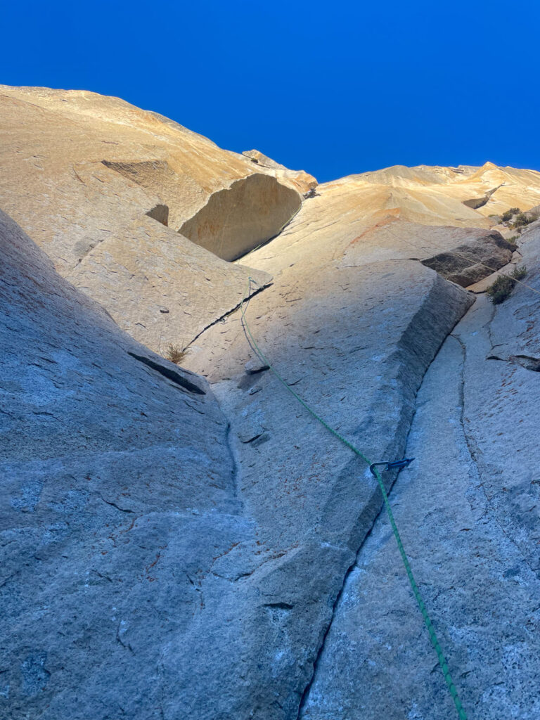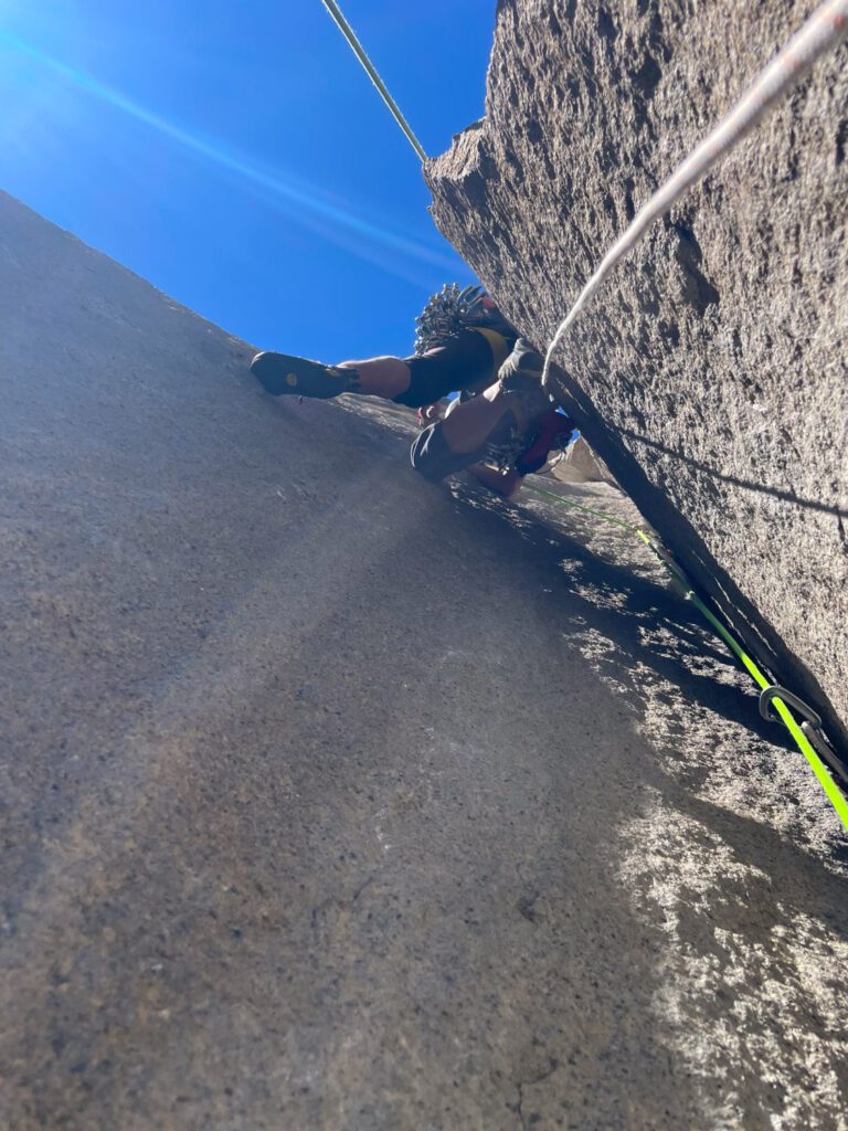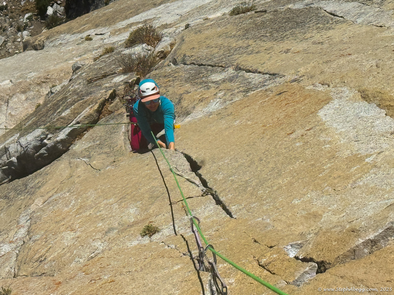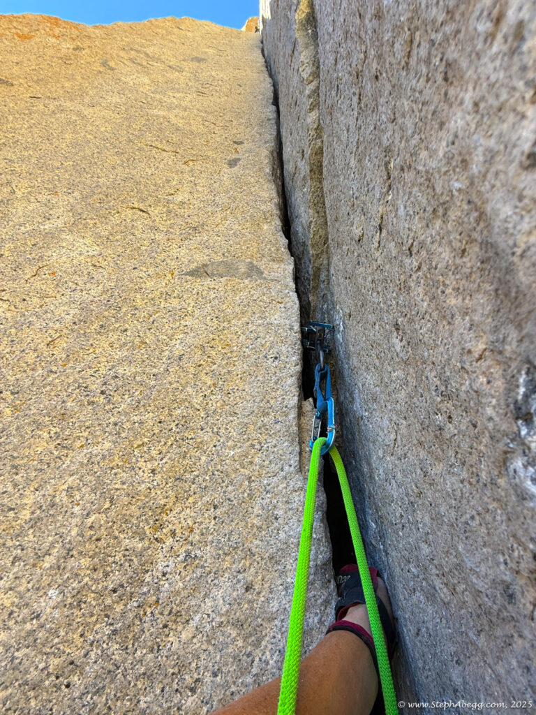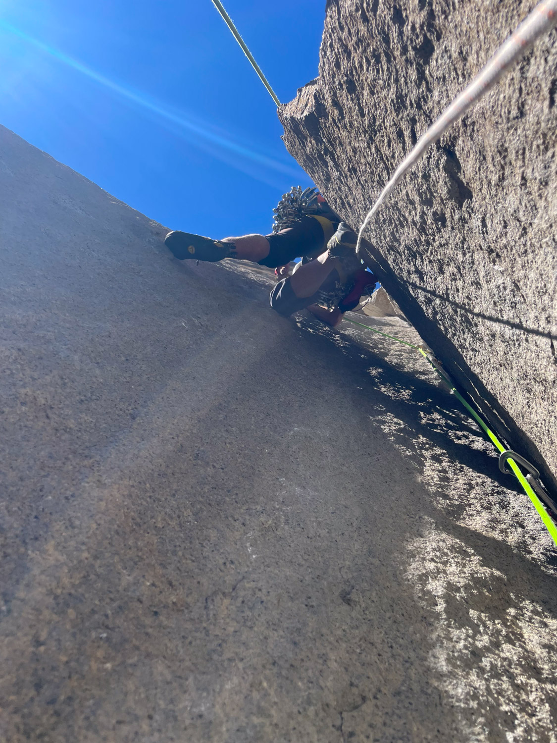 I led every pitch, and Brooke followed in fix-and-follow mode. Three parties were on the route—one ahead and one behind us, all doing