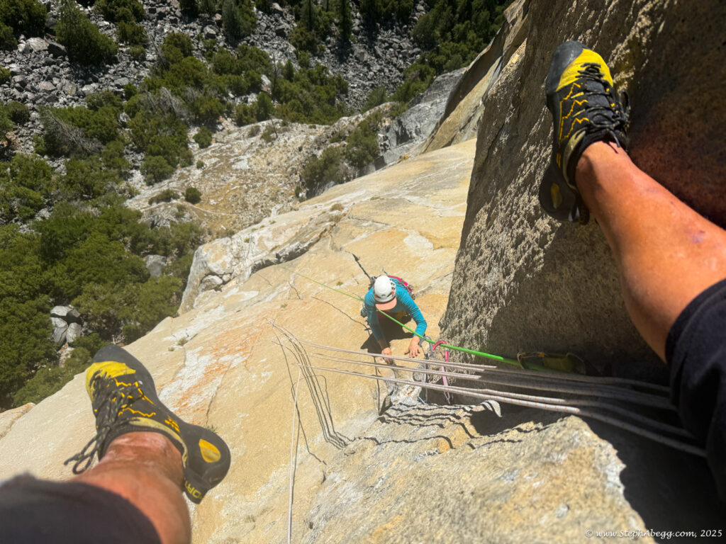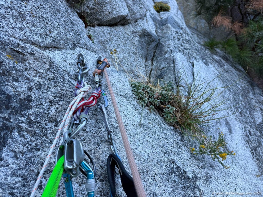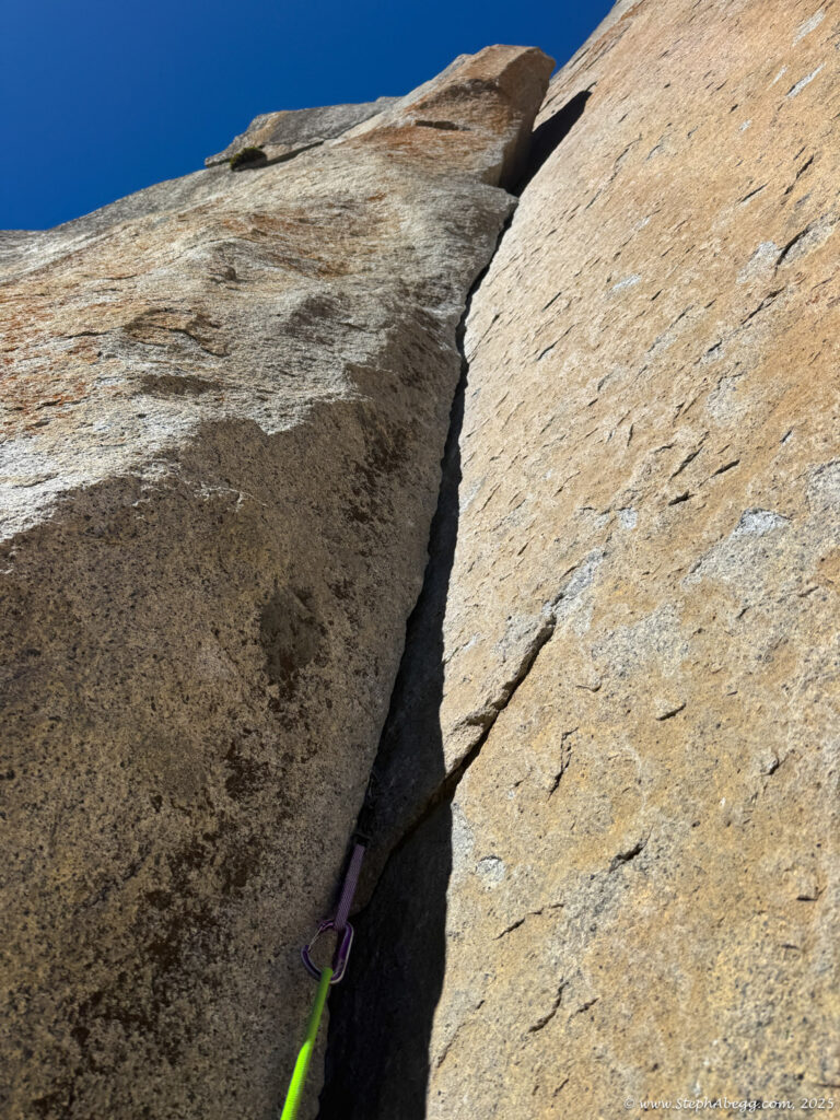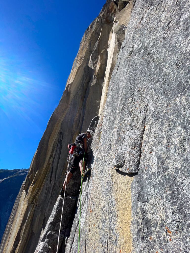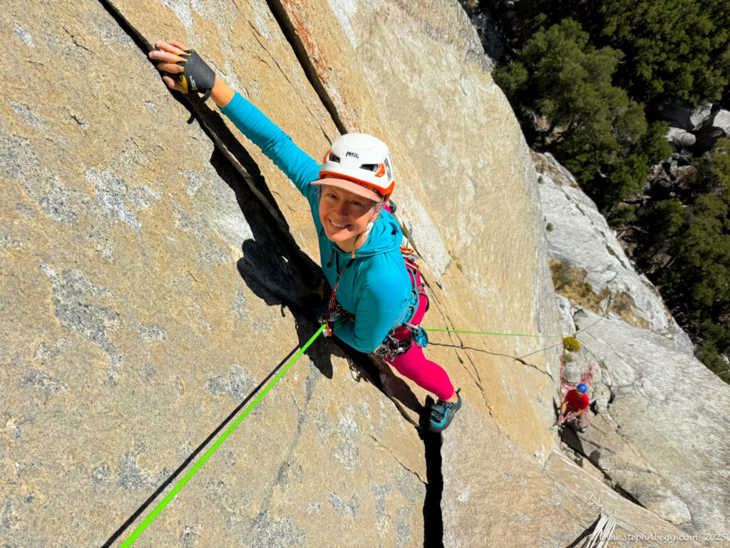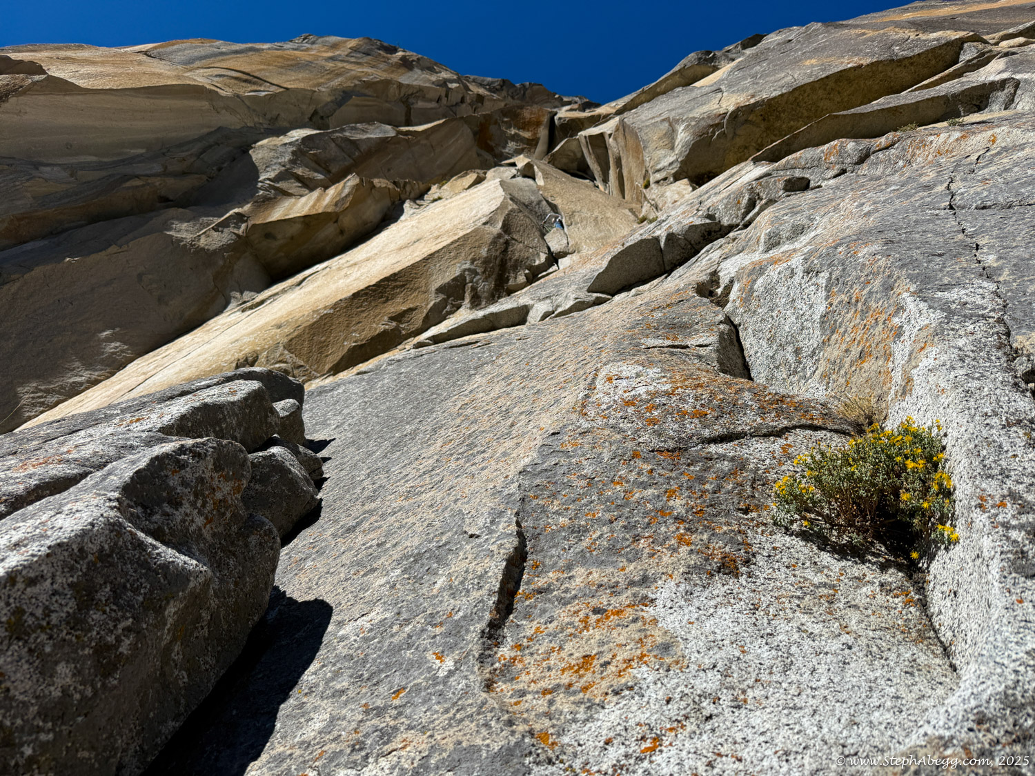 I led every pitch, and Brooke followed in fix-and-follow mode. Three parties were on the route—one ahead and one behind us, all doing