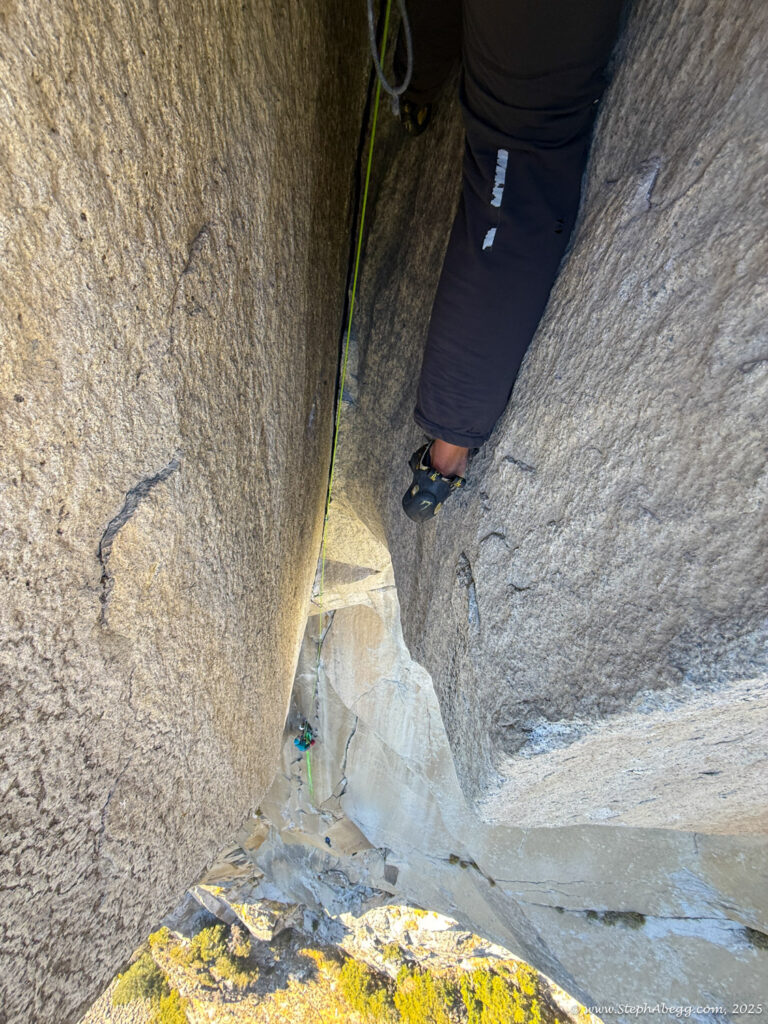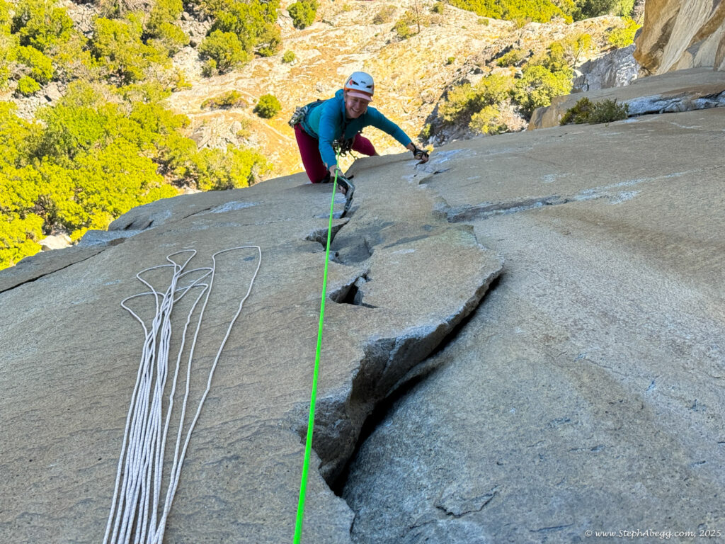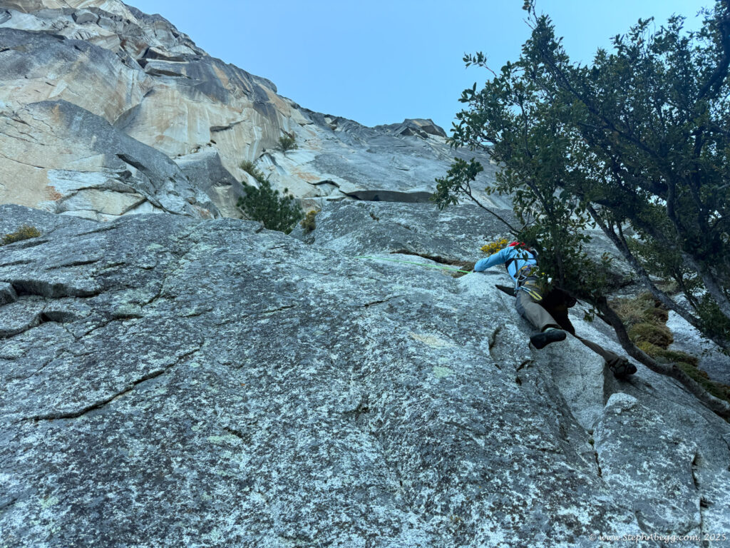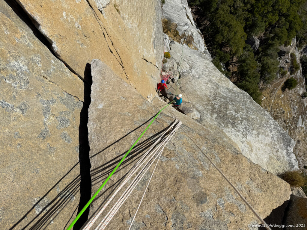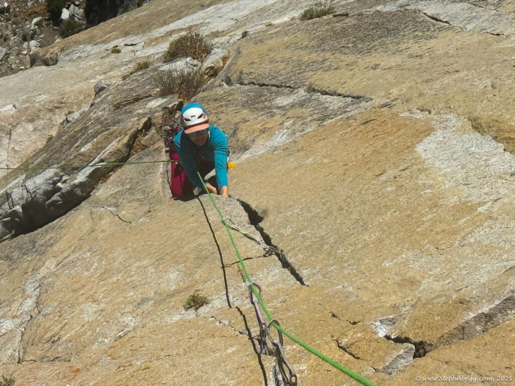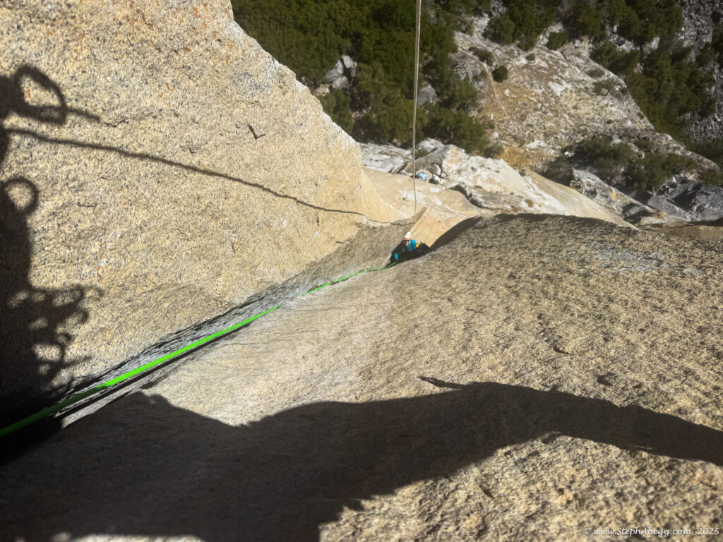 I led every pitch, and Brooke followed in fix-and-follow mode. Three parties were on the route—one ahead and one behind us, all doing