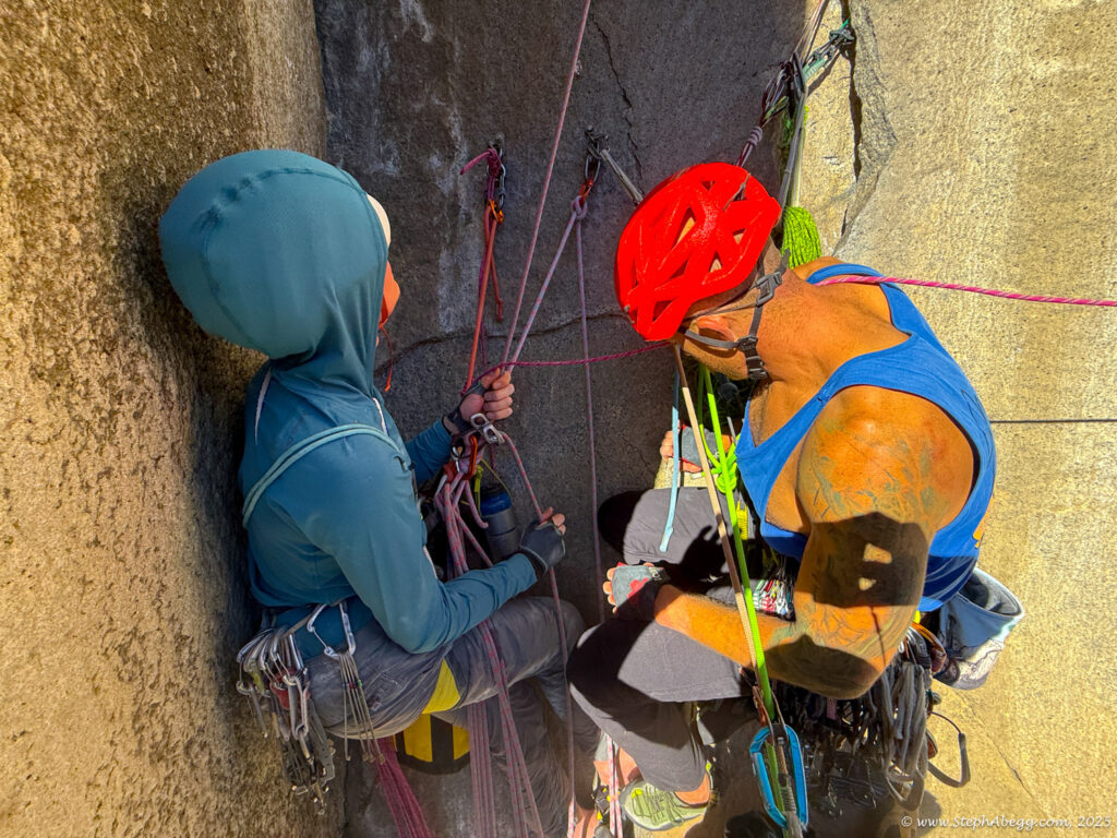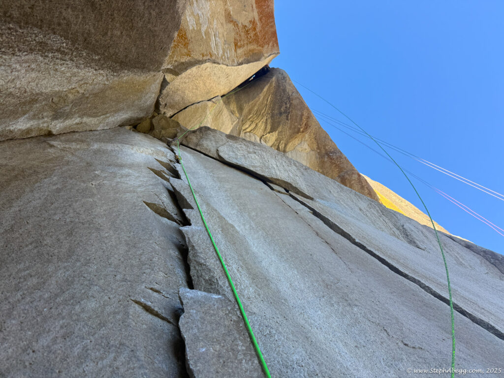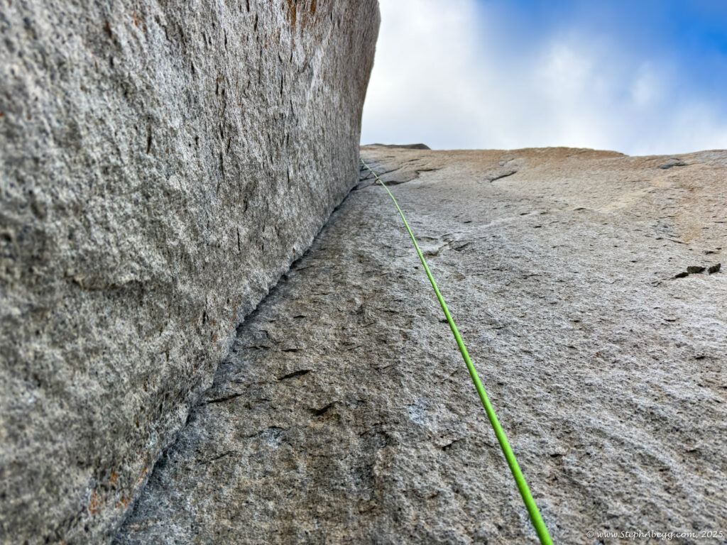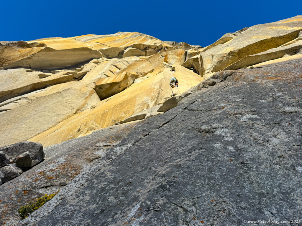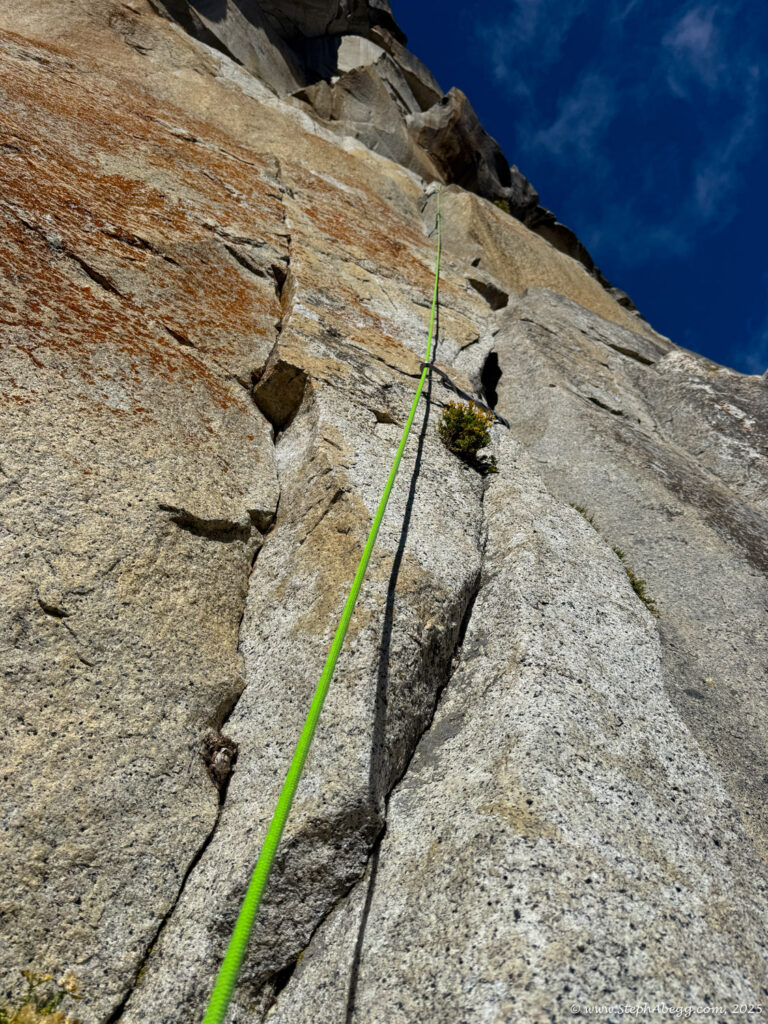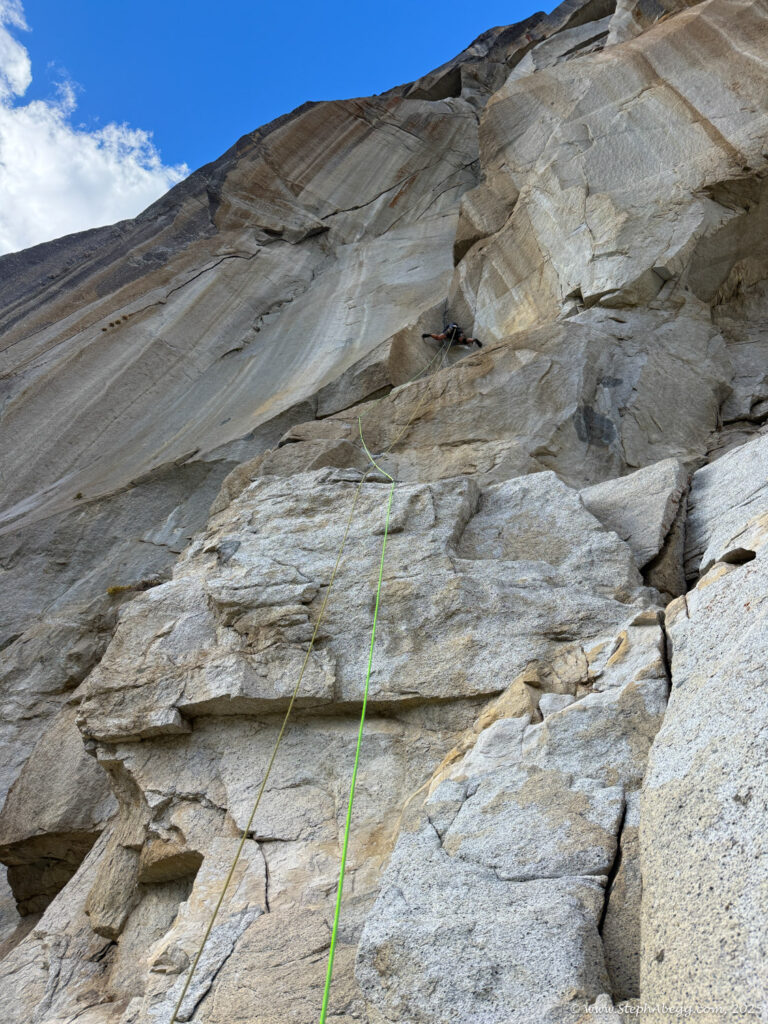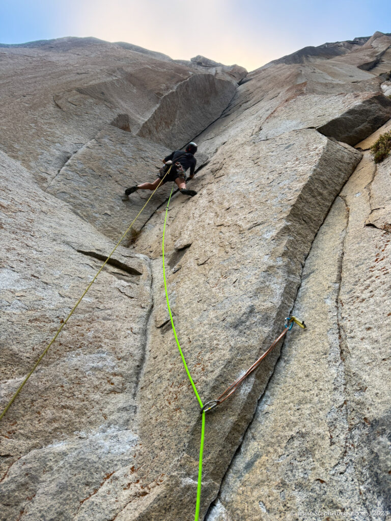 I led every pitch, and Brooke followed in fix-and-follow mode. Three parties were on the route—one ahead and one behind us, all doing