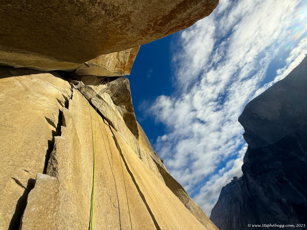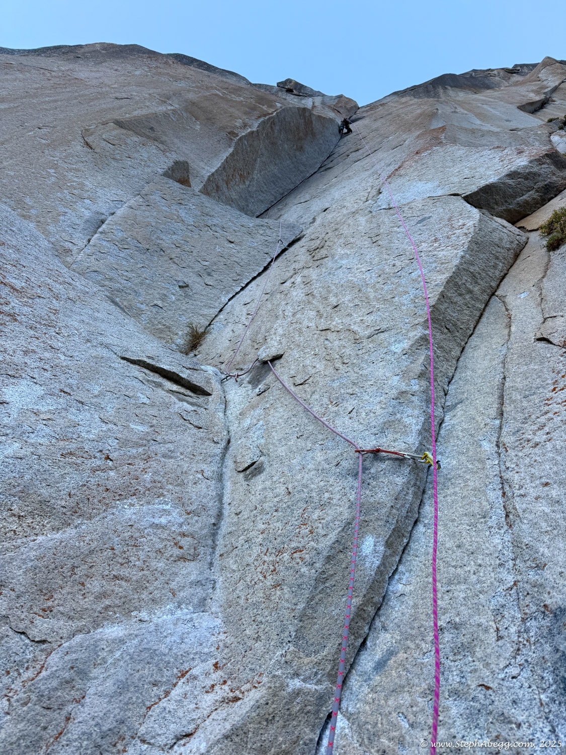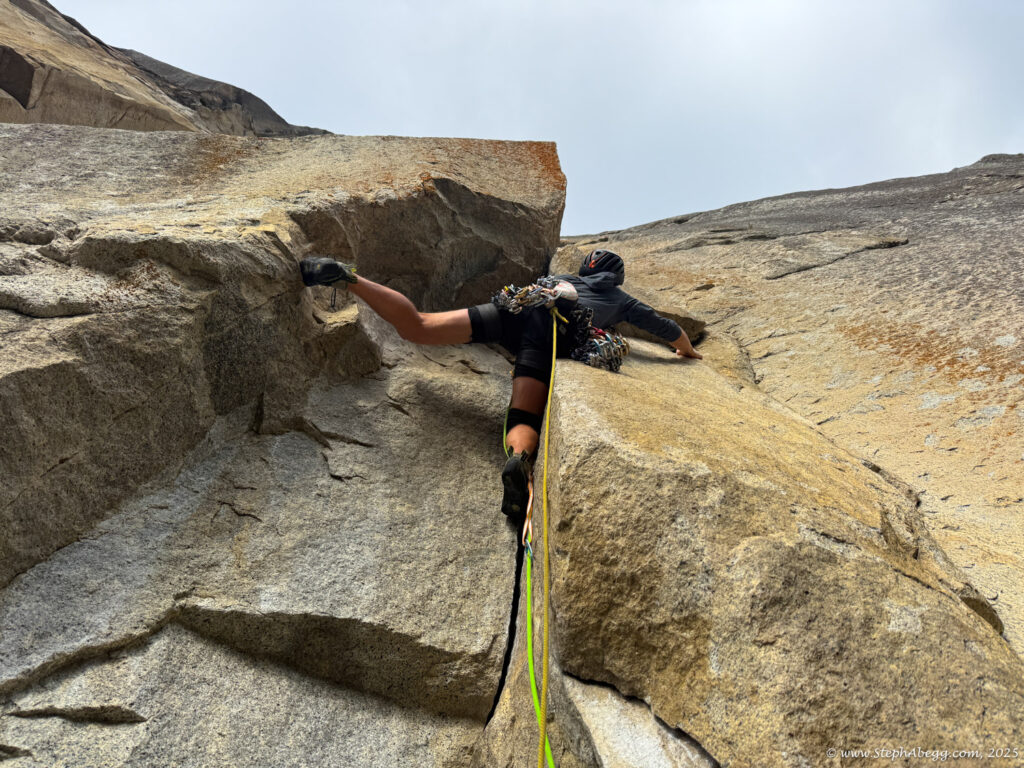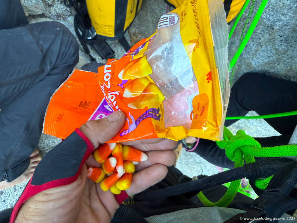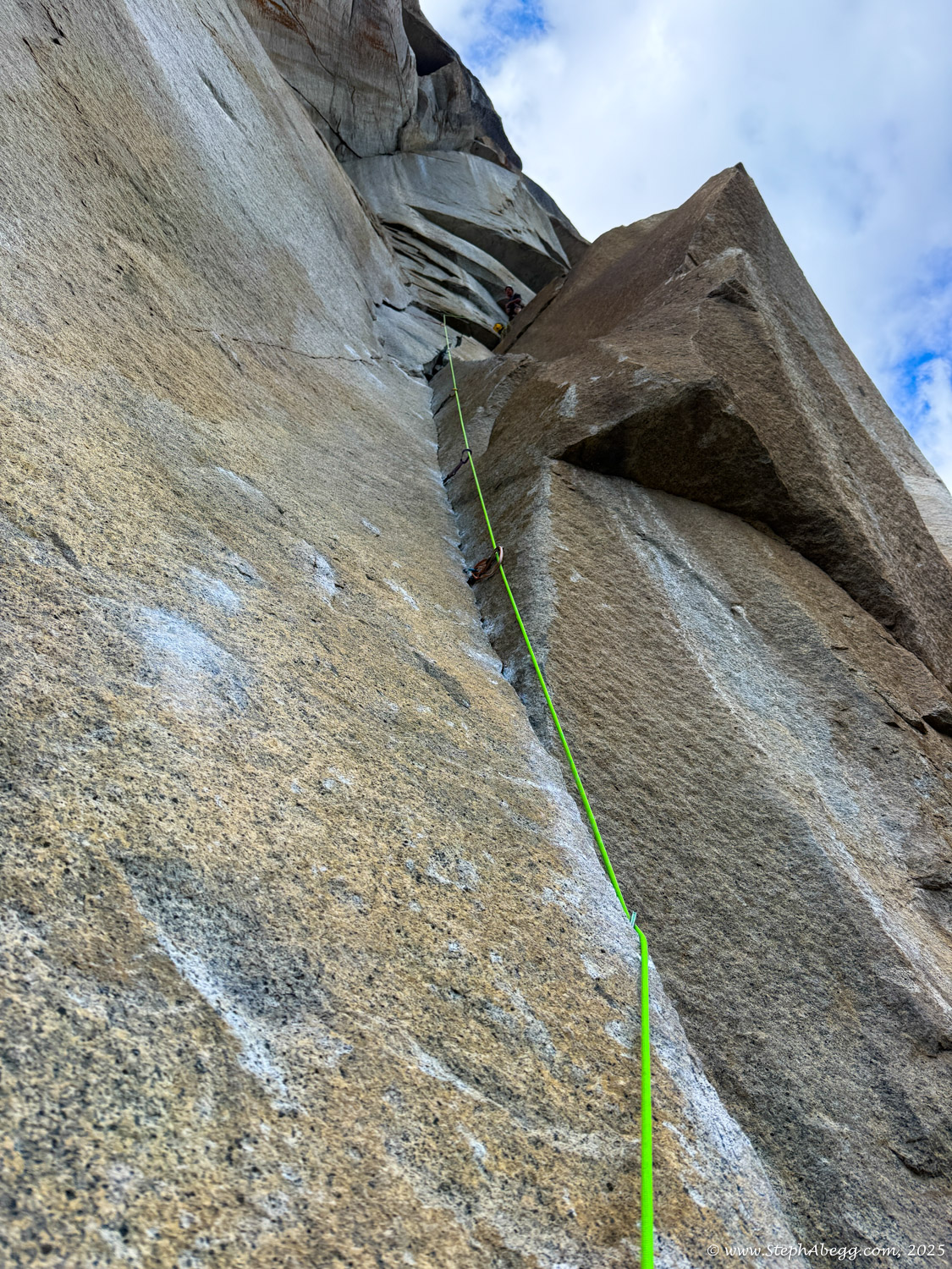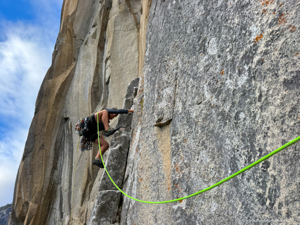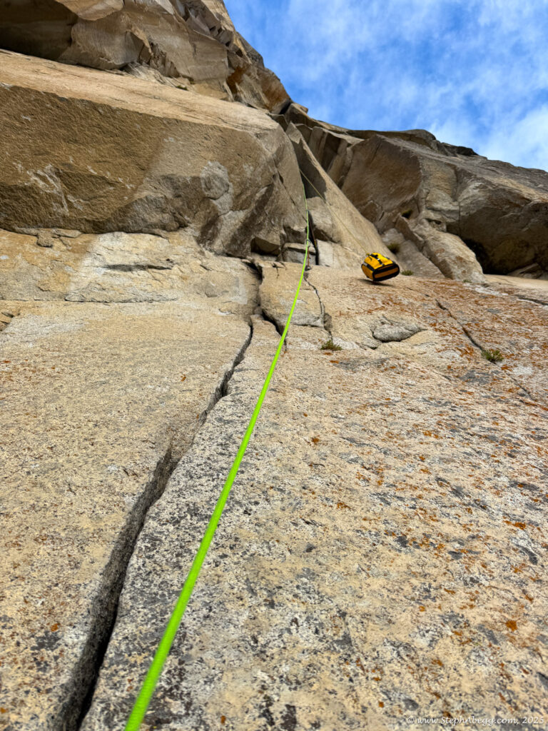I led every pitch, and Brooke followed in fix-and-follow mode. Three parties were on the route—one ahead and one behind us, all doing