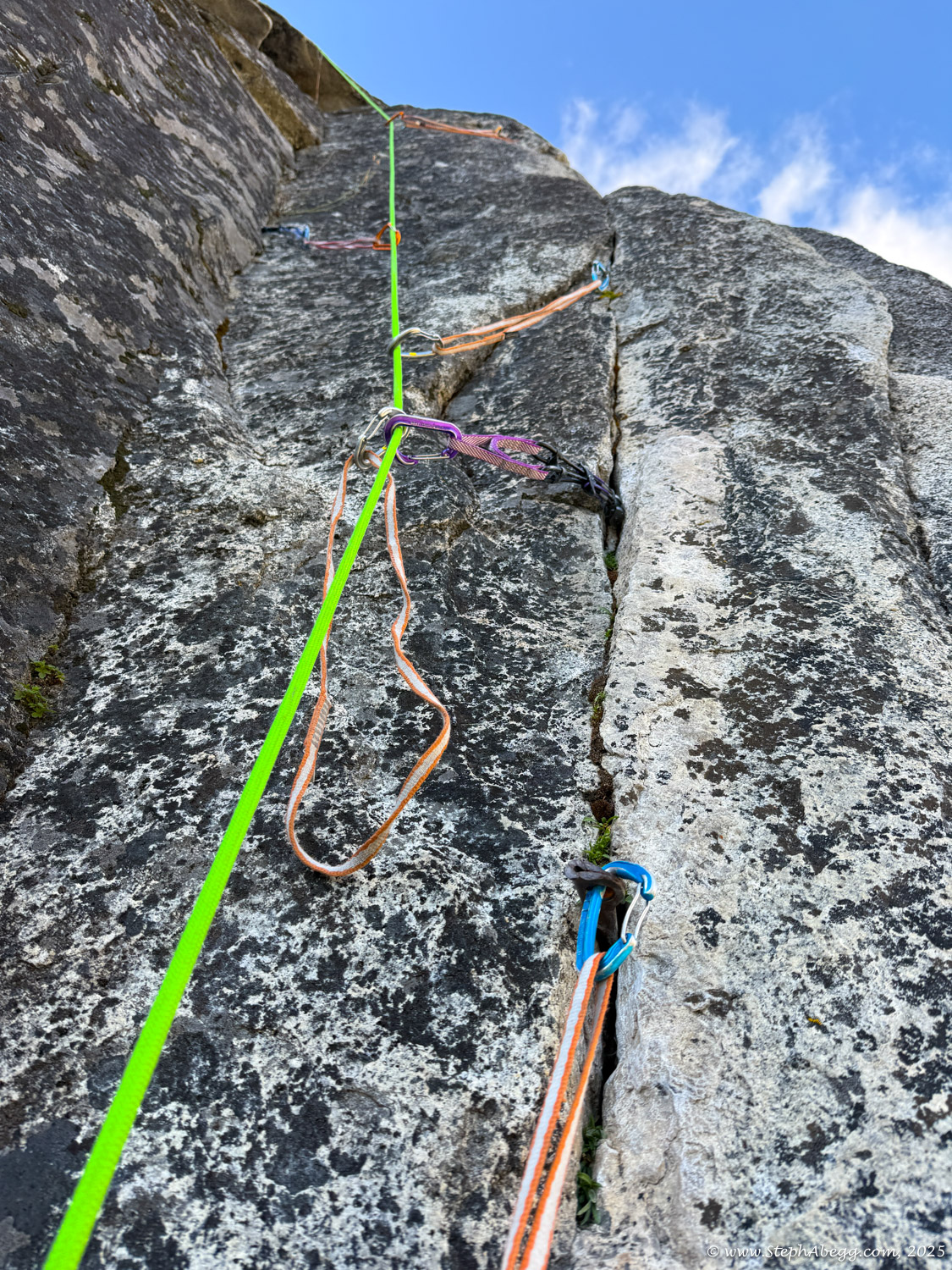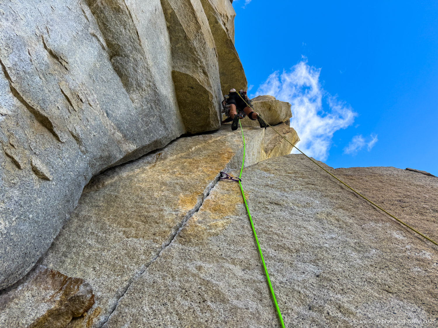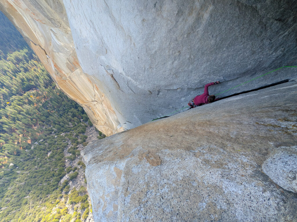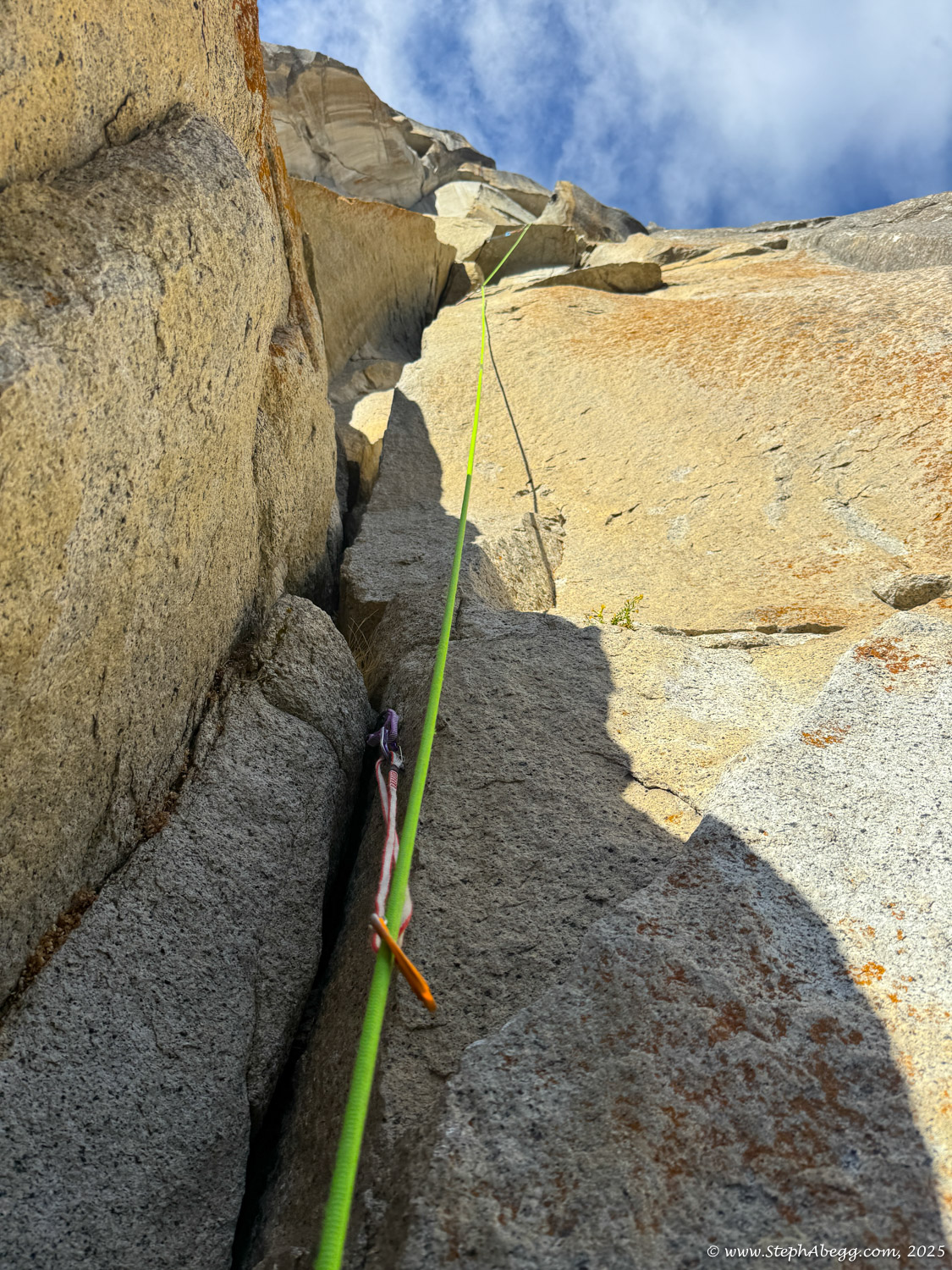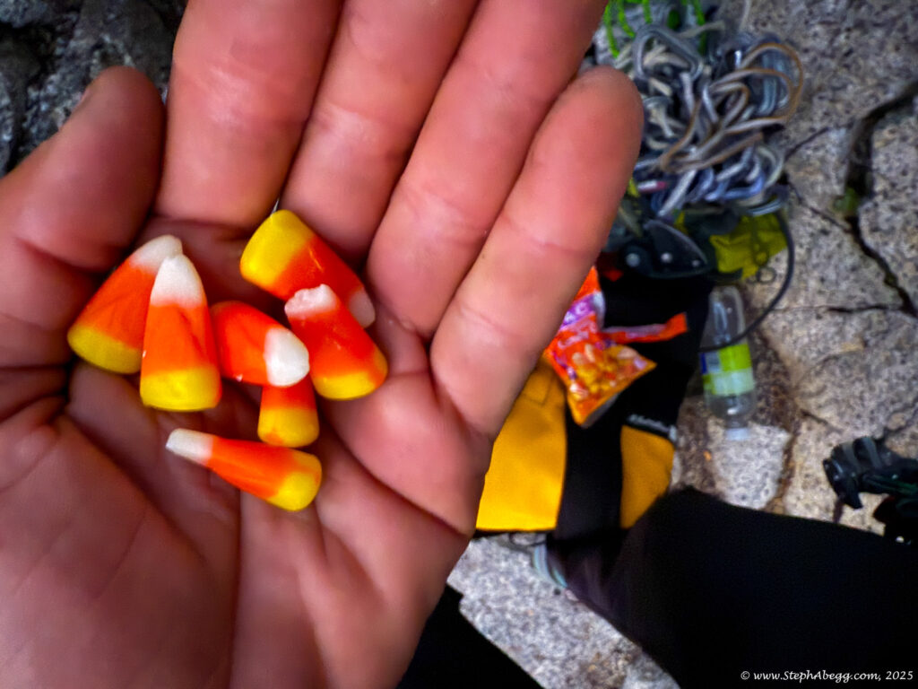I led every pitch, and Brooke followed in fix-and-follow mode. Three parties were on the route—one ahead and one behind us, all doing