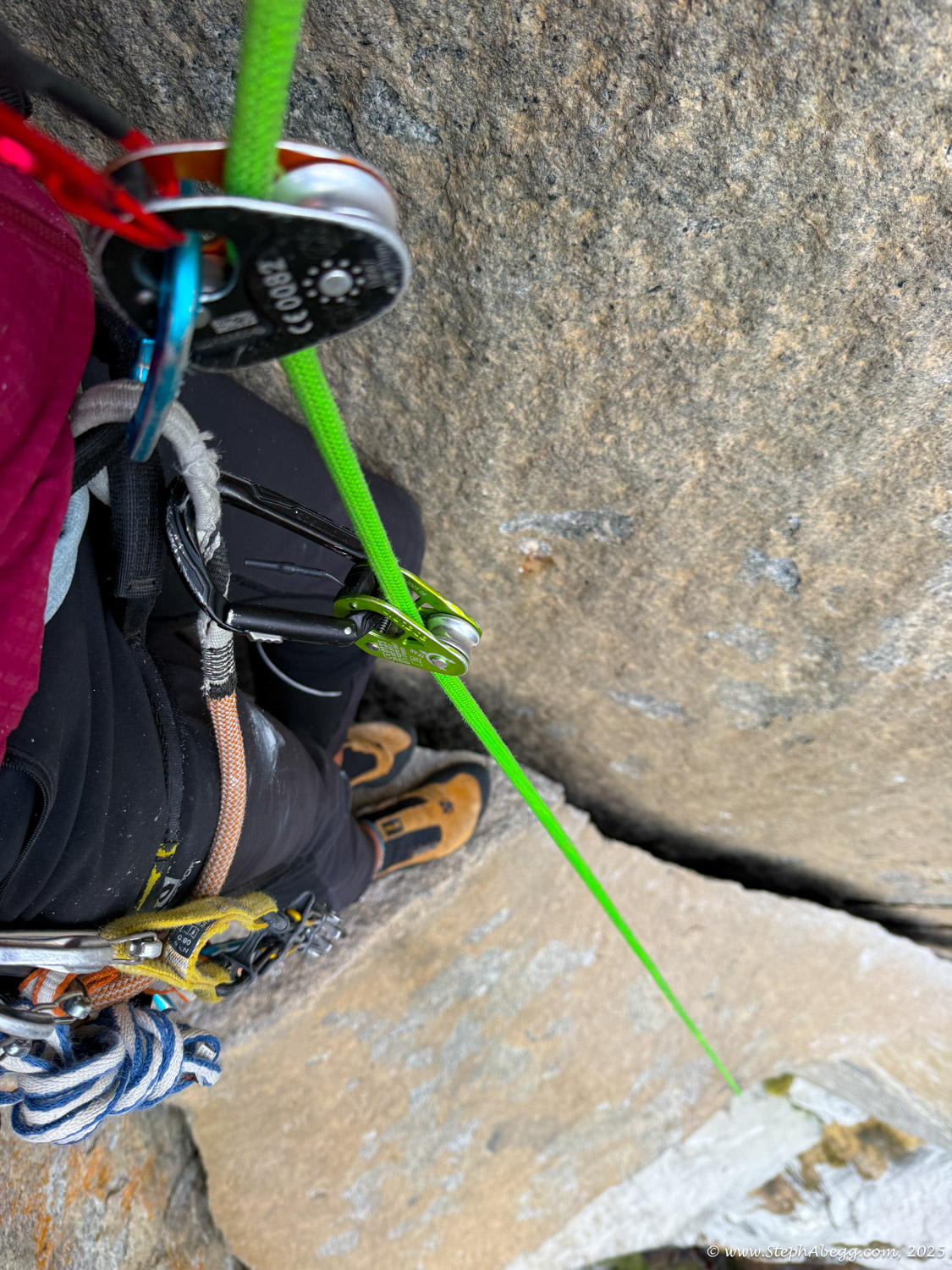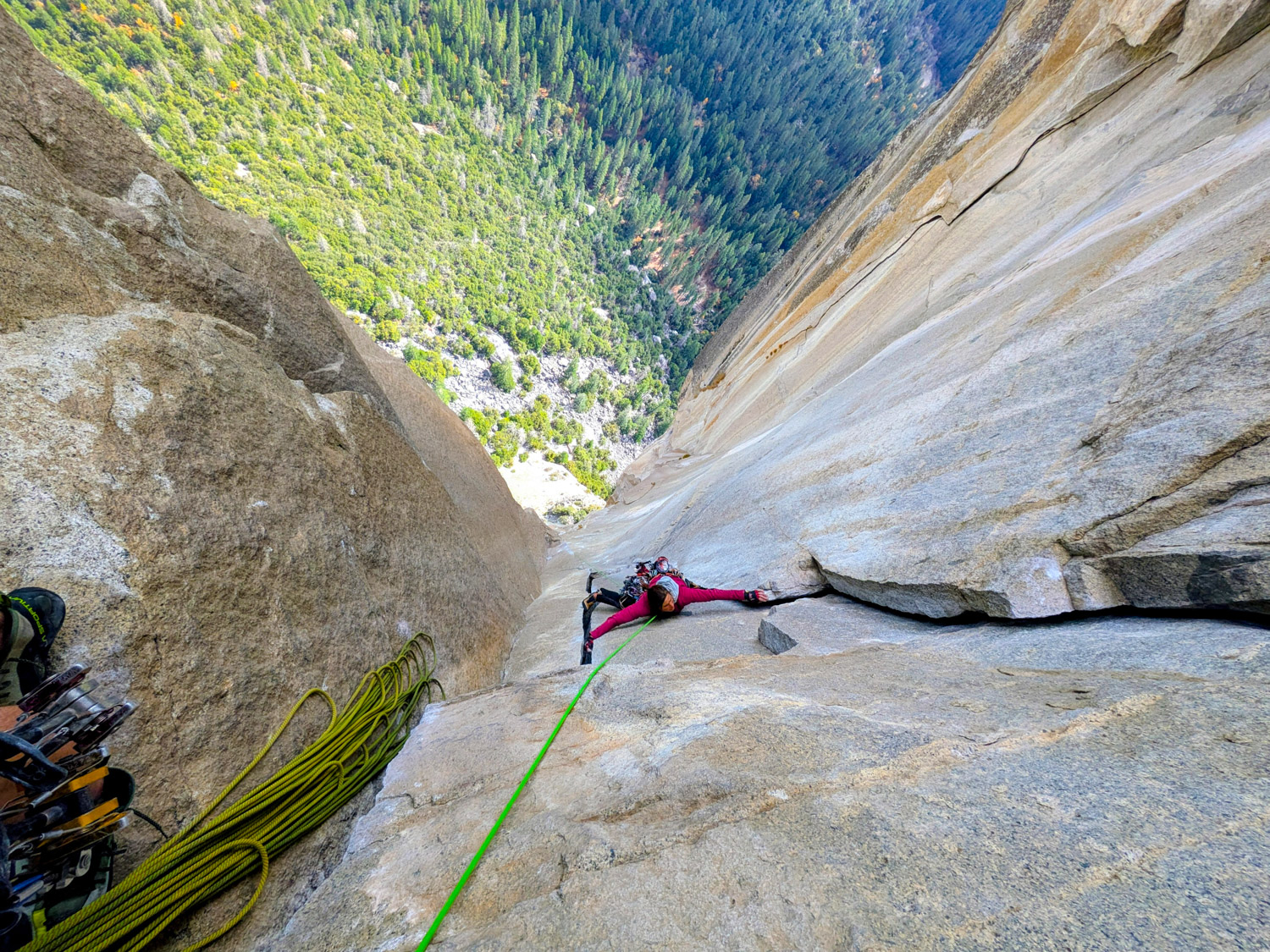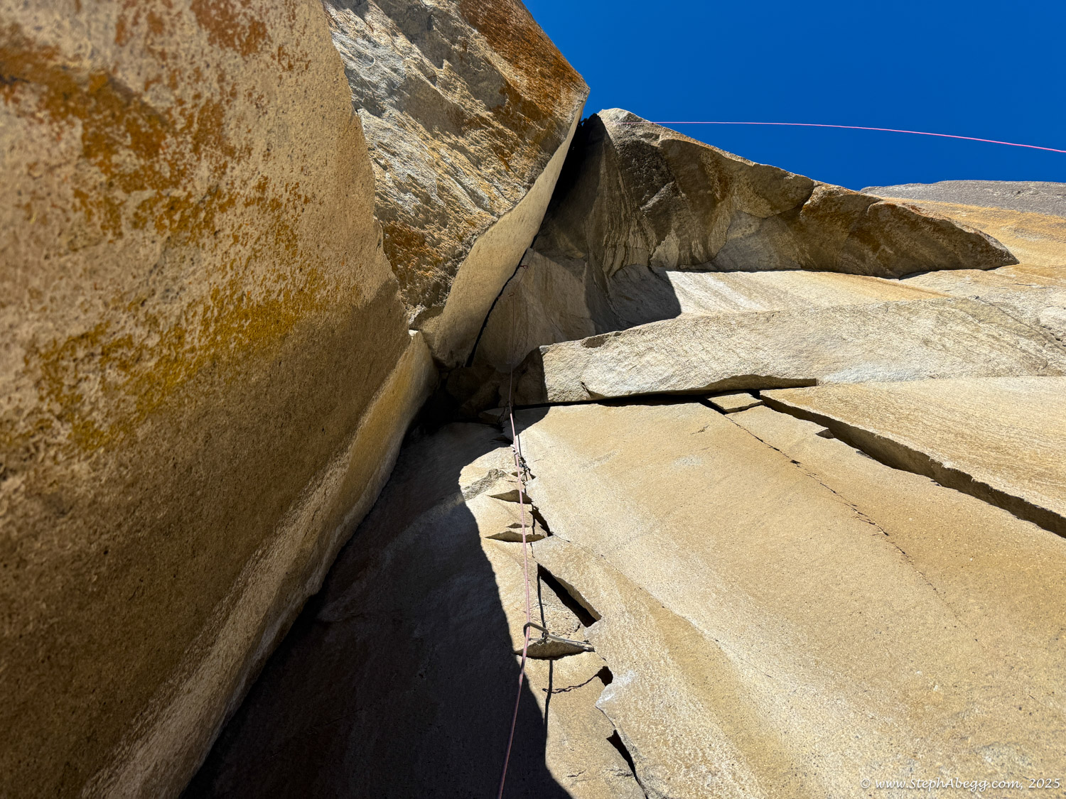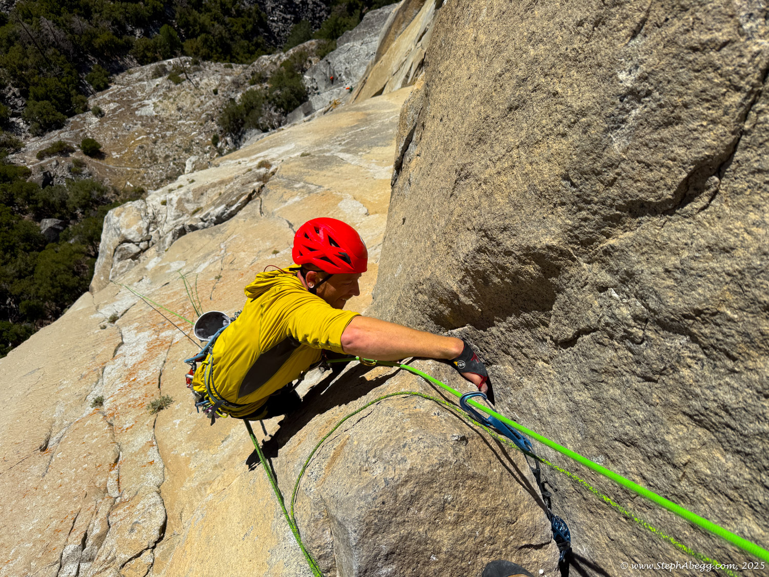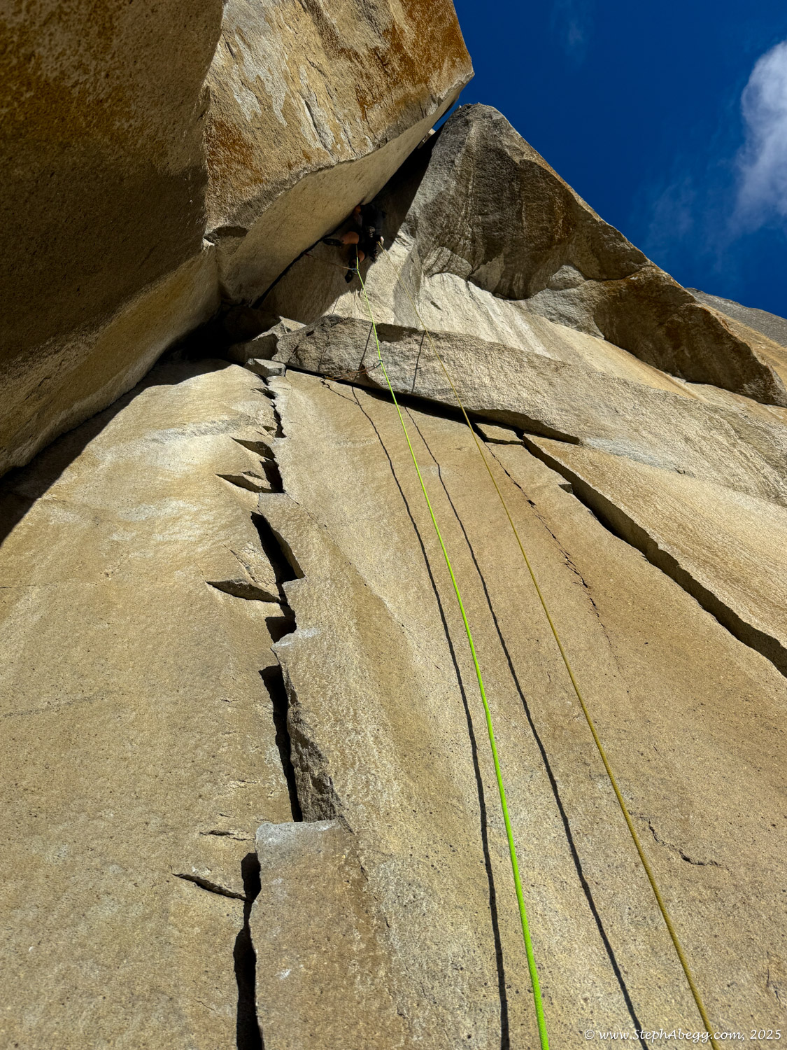 I led every pitch, and Brooke followed in fix-and-follow mode. Three parties were on the route—one ahead and one behind us, all doing