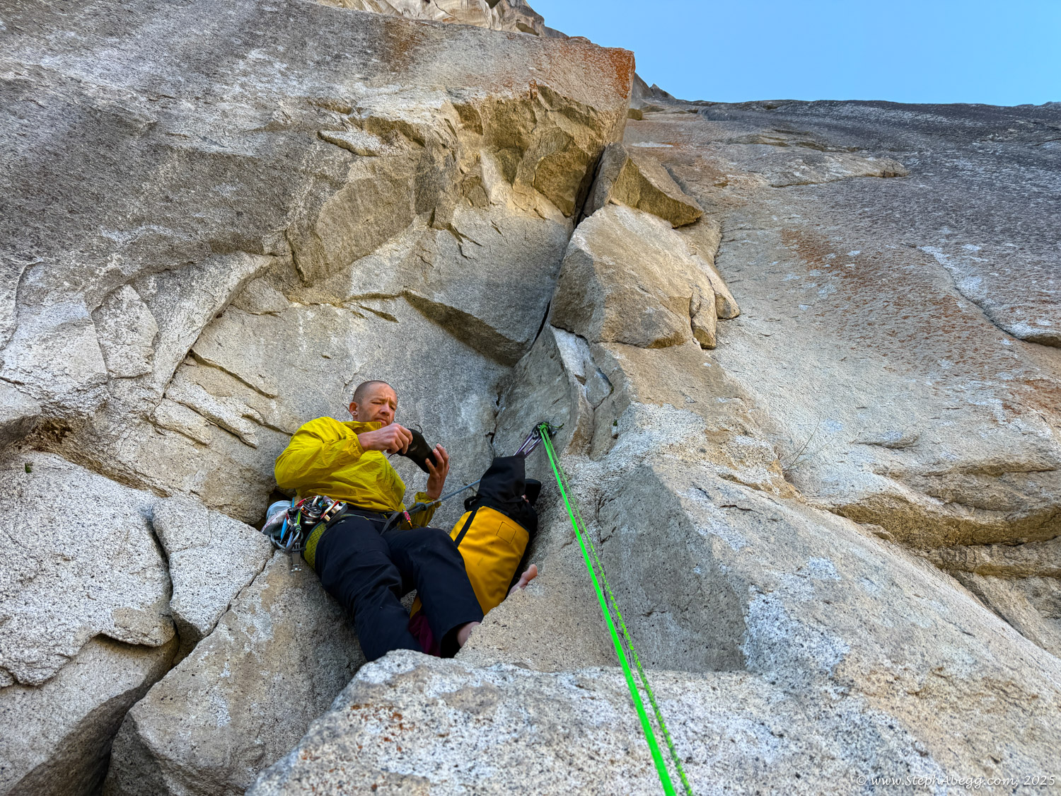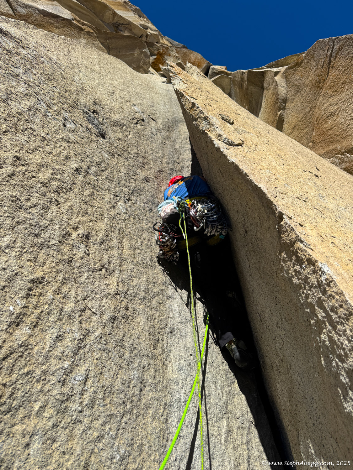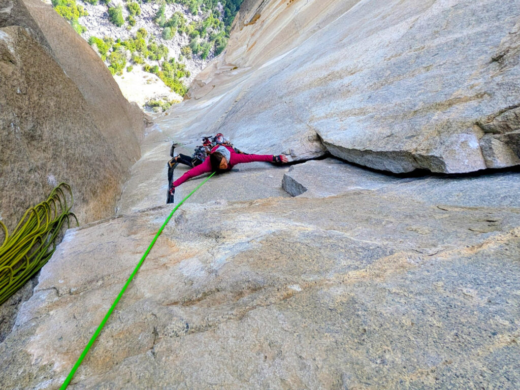 Astroman is widely considered one of the finest routes at its grade anywhere. But it’s also tricky—the route bakes in direct sun until around 10:30 or 11 a.m., and the punishing, windless heat combined with the cruxes low on the route often lead parties to practice the first five pitches and return later for the full climb.