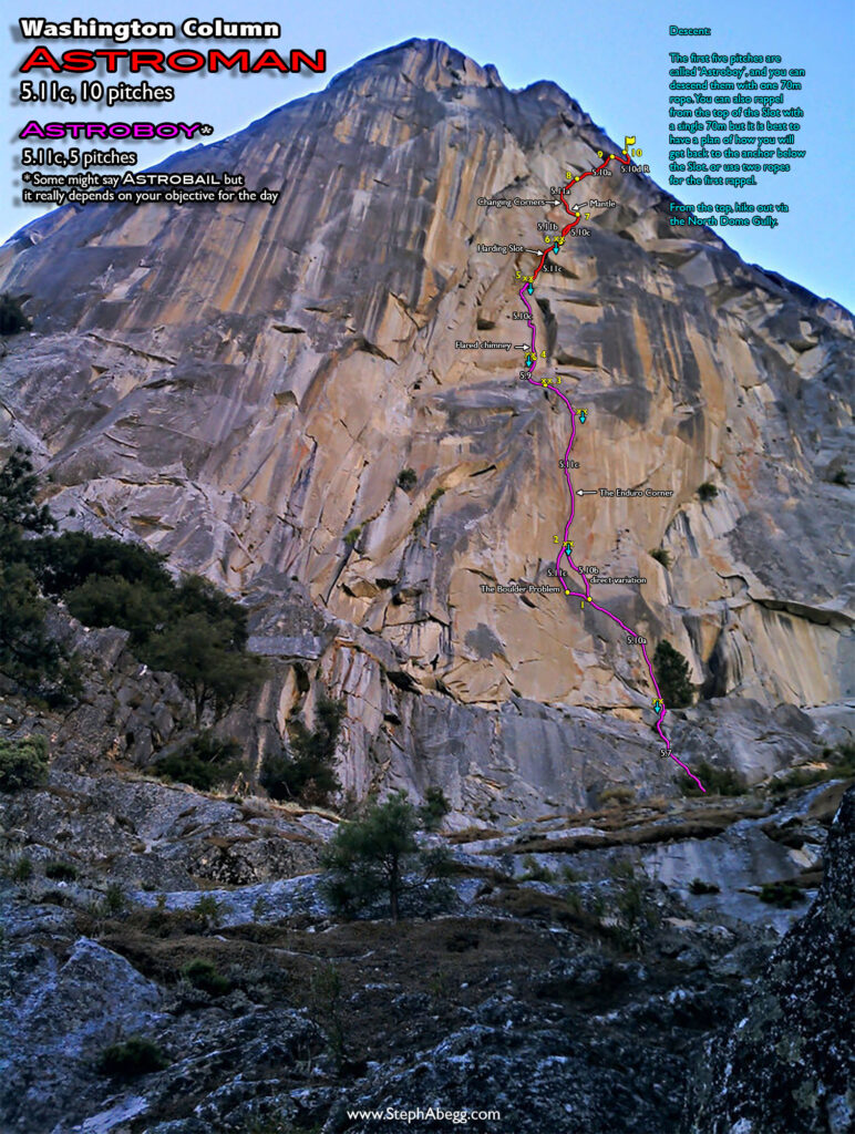 Astroman is known to be longer, more sustained, and burlier in every way—pitch after pitch of demanding, ultra–high-quality climbing on immaculate granite with a world-class view. Nearly every pitch would be a prize on its own if located at the base, and several would be outright mega-classics. If you don’t think this climb is great, either you’re being contrary or you need a new hobby.