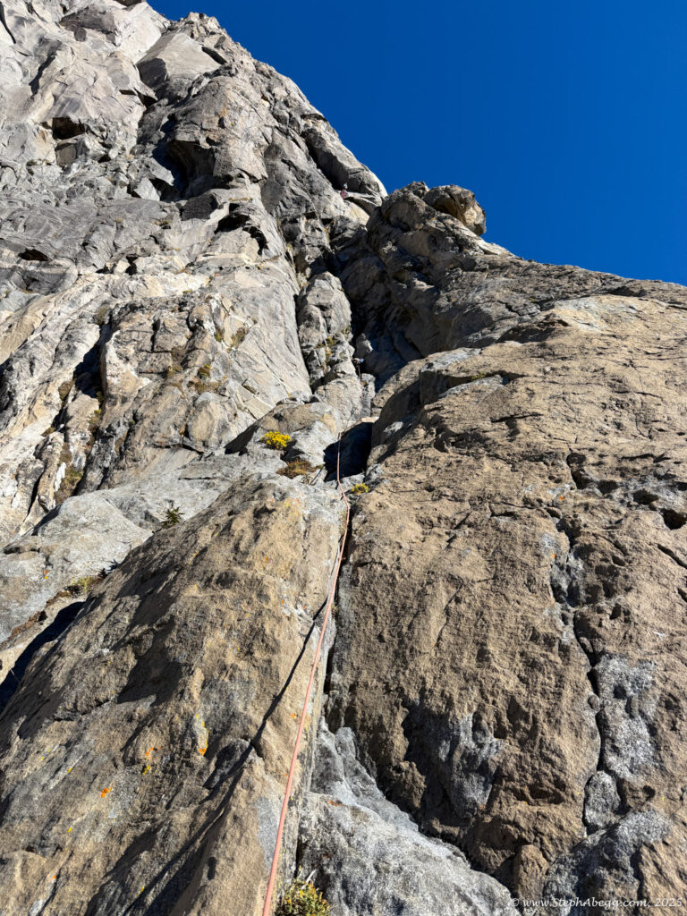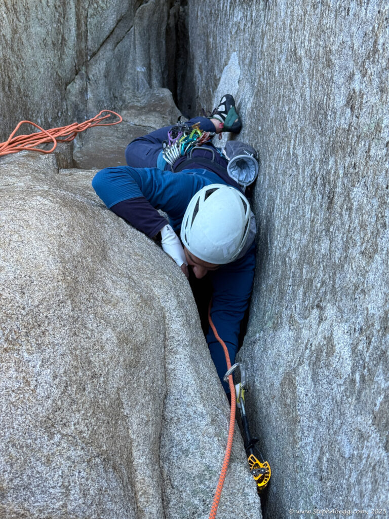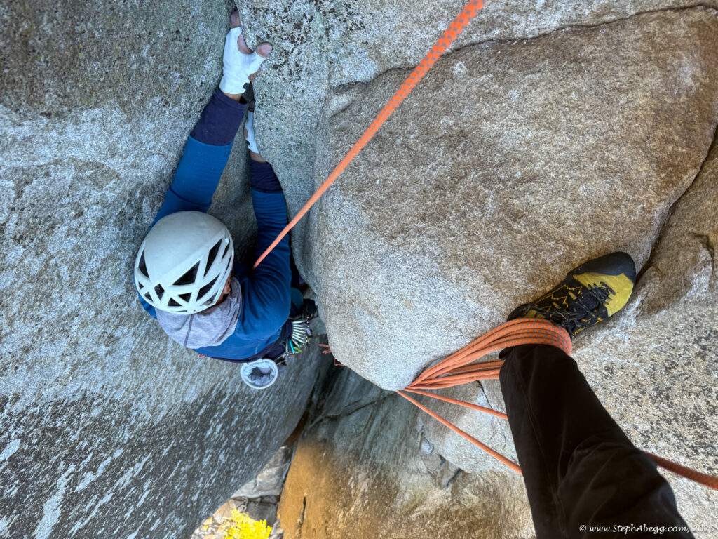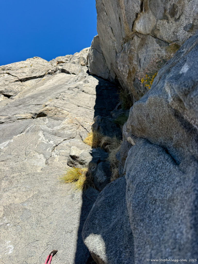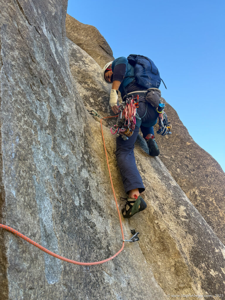 Nate and I swung leads. There were five parties total on the route—two ahead and two behind—but everyone moved efficiently, and aside from a 50-minute wait at the base, there were no traffic jams. The climbing was even better than I remembered, with plenty of high-quality pitches and only brief stretches of scrambling. The position and views were spectacular.