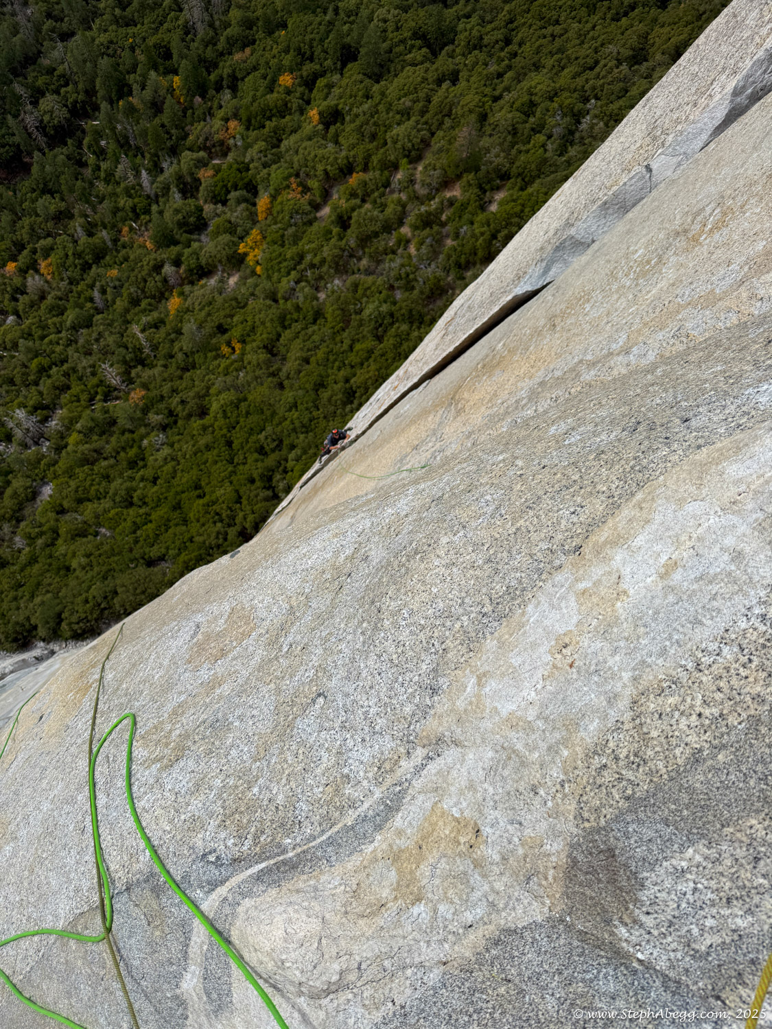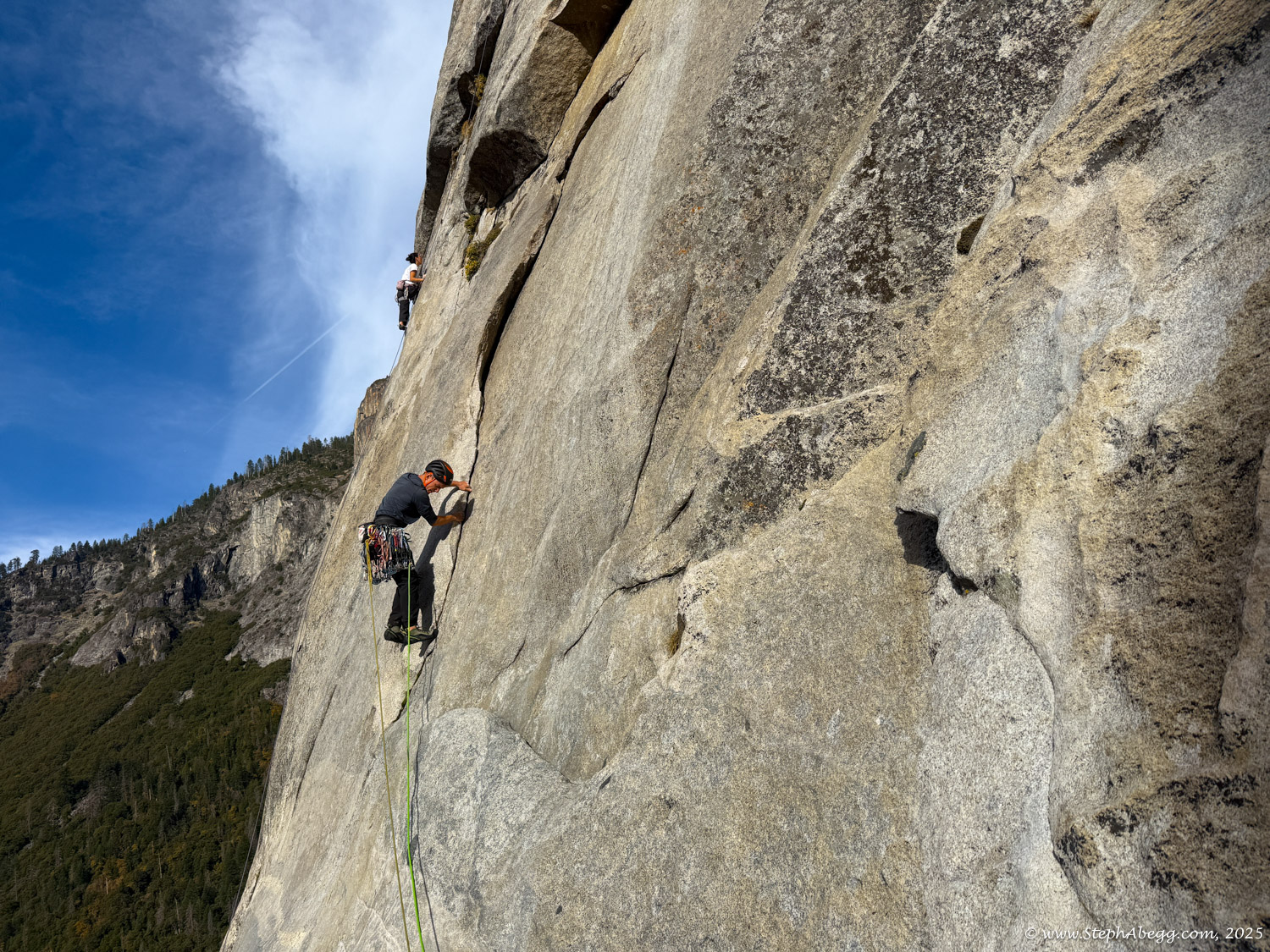 Freerider and spending time high on El Capitan. Between the long jug to Heart Ledge, the involved pitches, and reaching a high point halfway up the wall, it felt like a full-value day. We finished it off with pizza at Curry Village, joined by John’s friend Marina—a perfect way to cap off our time in the Valley.