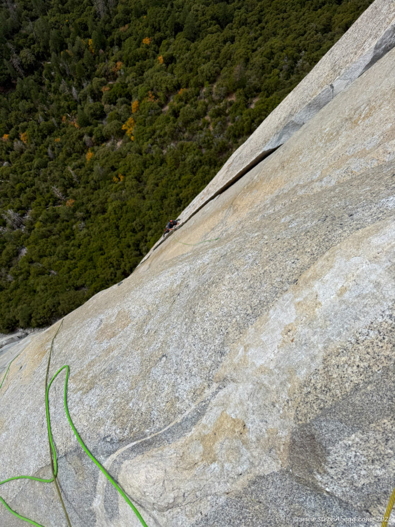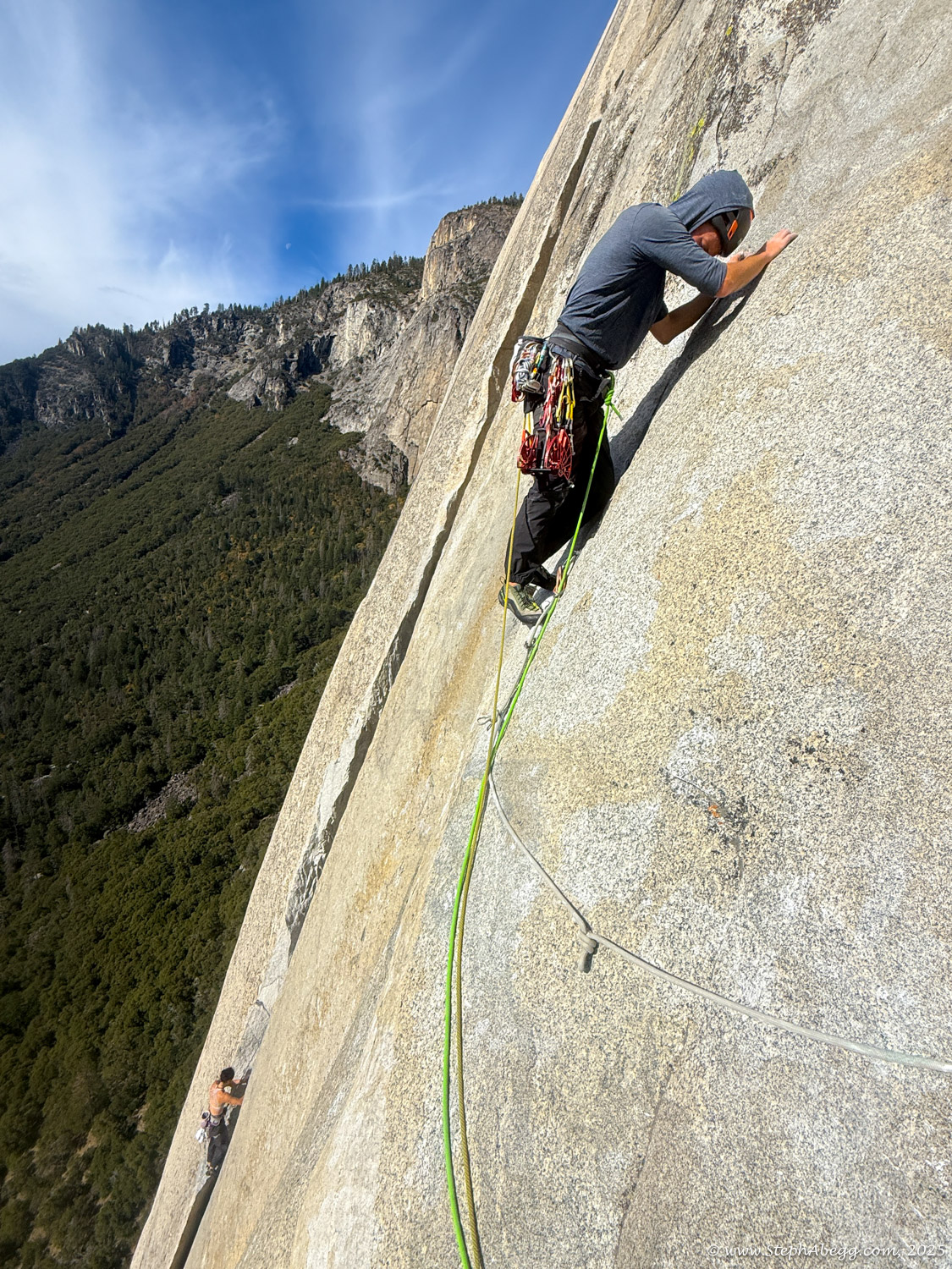 Astroman (5.11c, 10p) with, one of my favorite days of the trip—had been there for a few weeks and was also wrapping up his stay. So, we decided to get in one last climb—something on El Capitan sounded fitting. John’s original goal for the trip (which he hadn’t been able to attempt because his partner was injured) was to work on