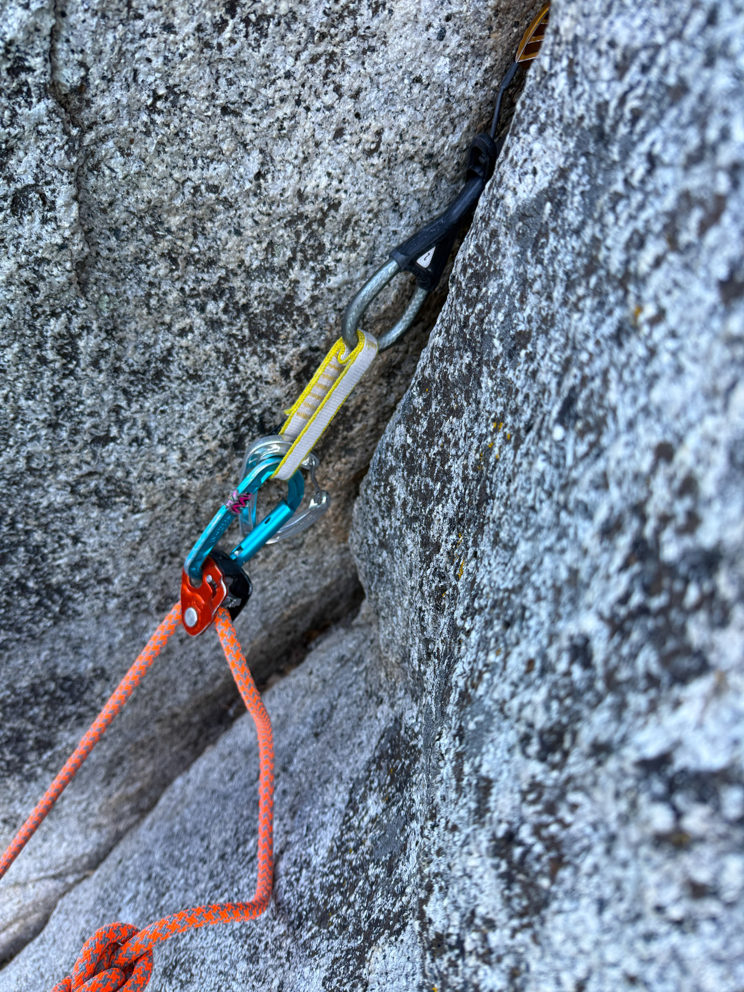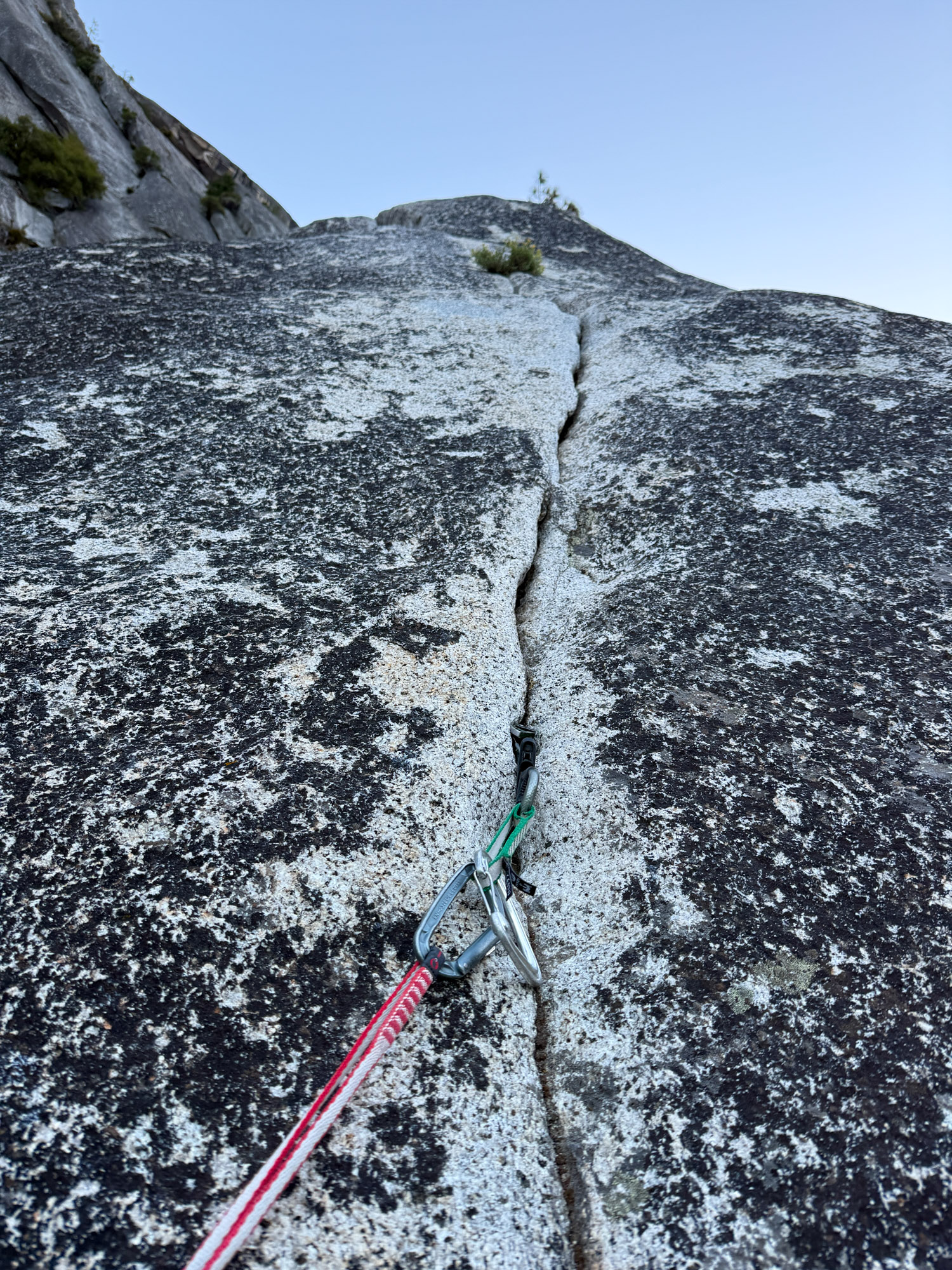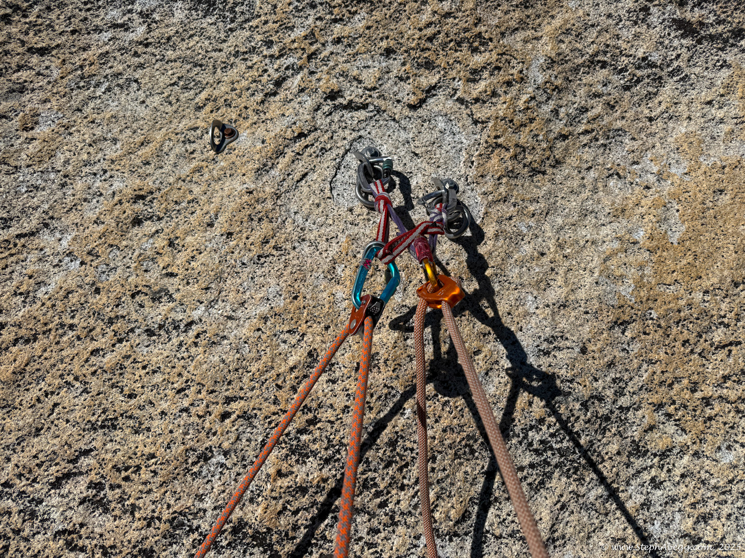 Crest Jewel, including the day’s 5.10d crux; and I led the remaining nine pitches (sustained 5.8-5.10a slab).