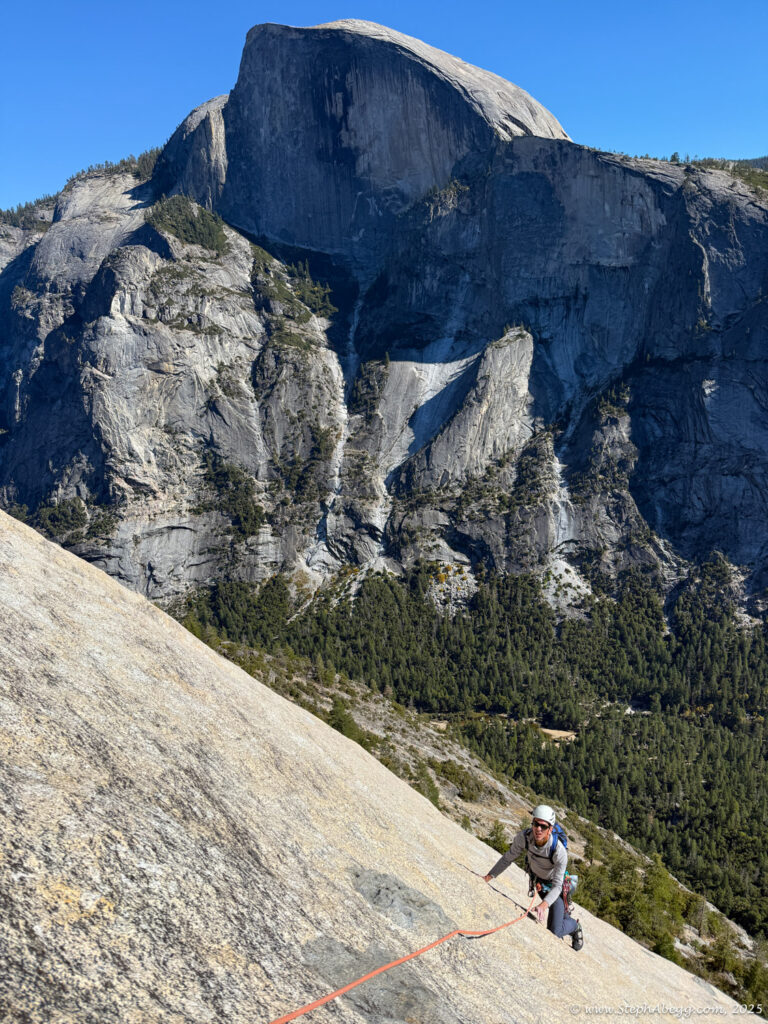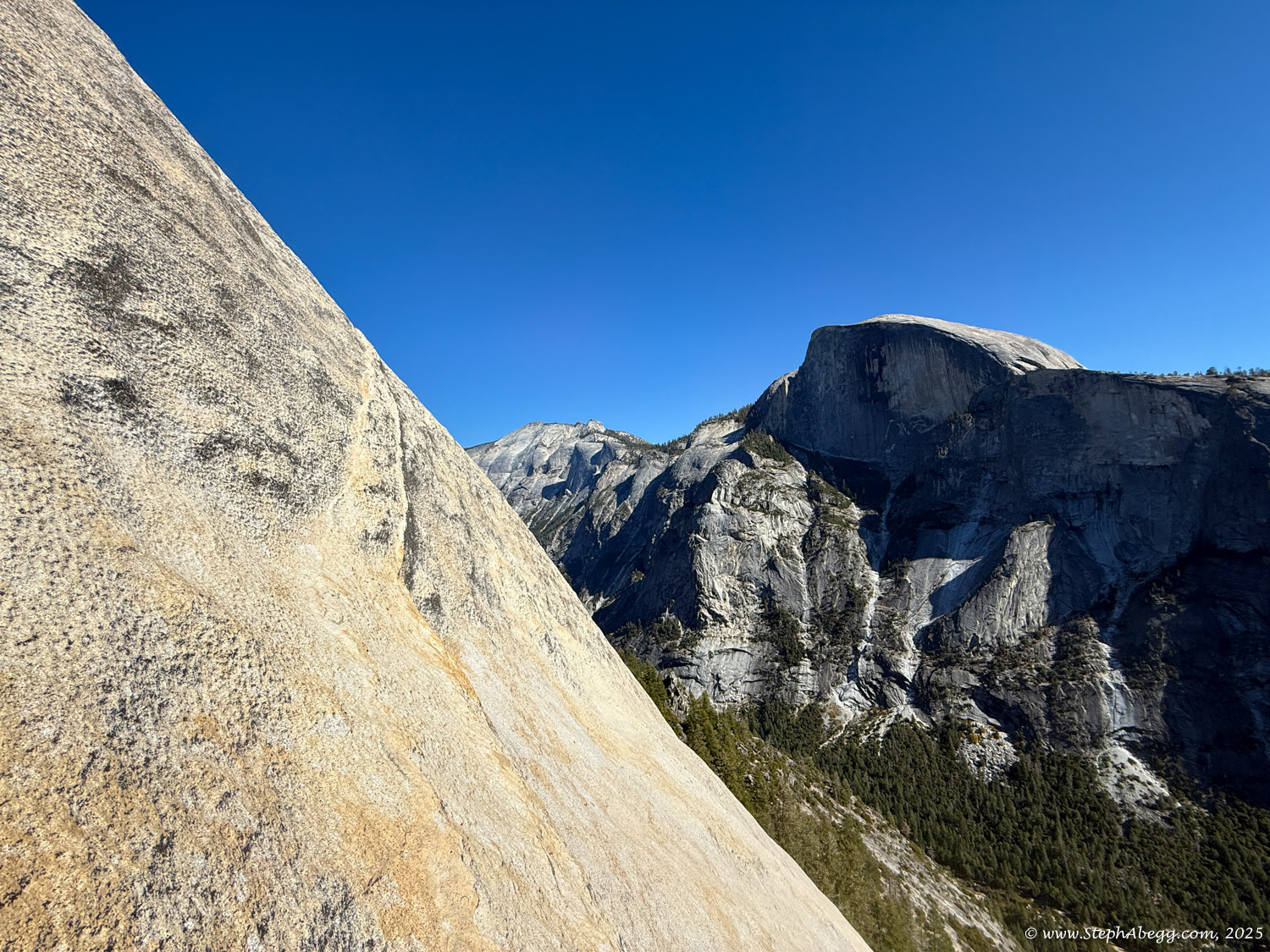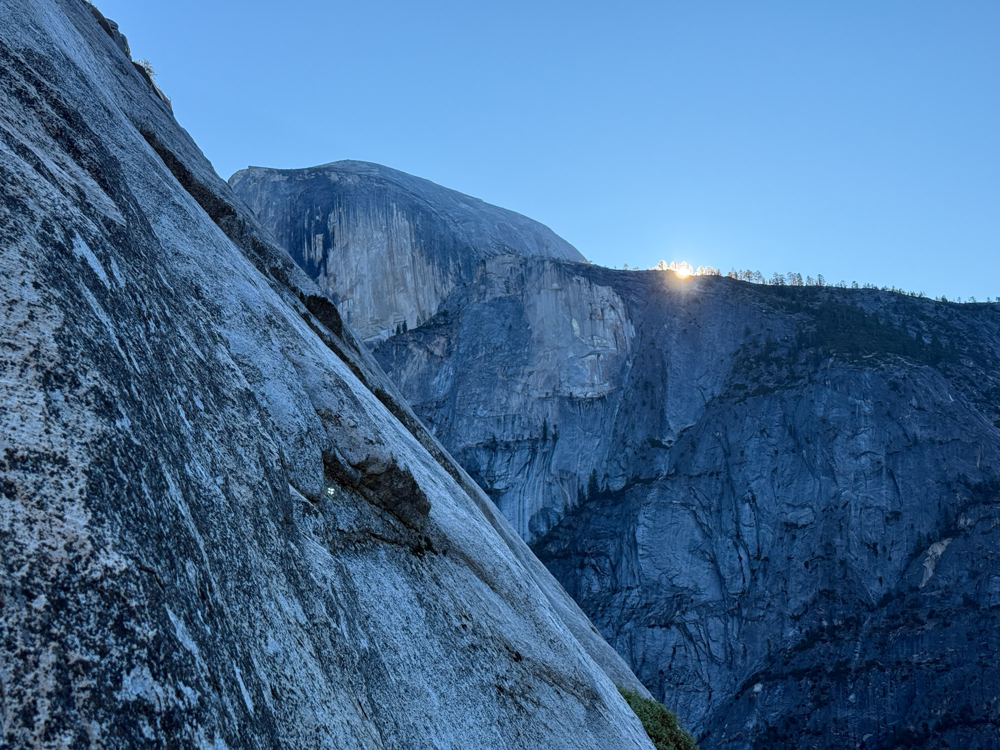 Royal Arches in a few long blocks, cutting the pitch count considerably. The hike between the two climbs is scenic, and the summit of North Dome offers some of Yosemite’s most stunning views. The descent back to the Valley, though long and tedious—especially after a full day—felt like a small price to pay.