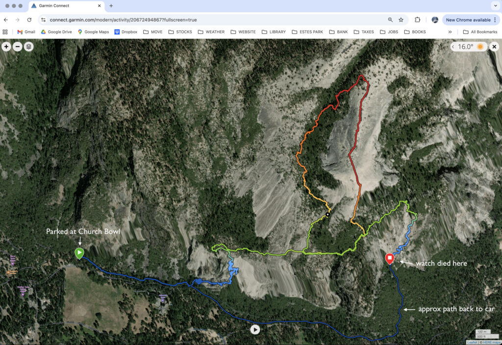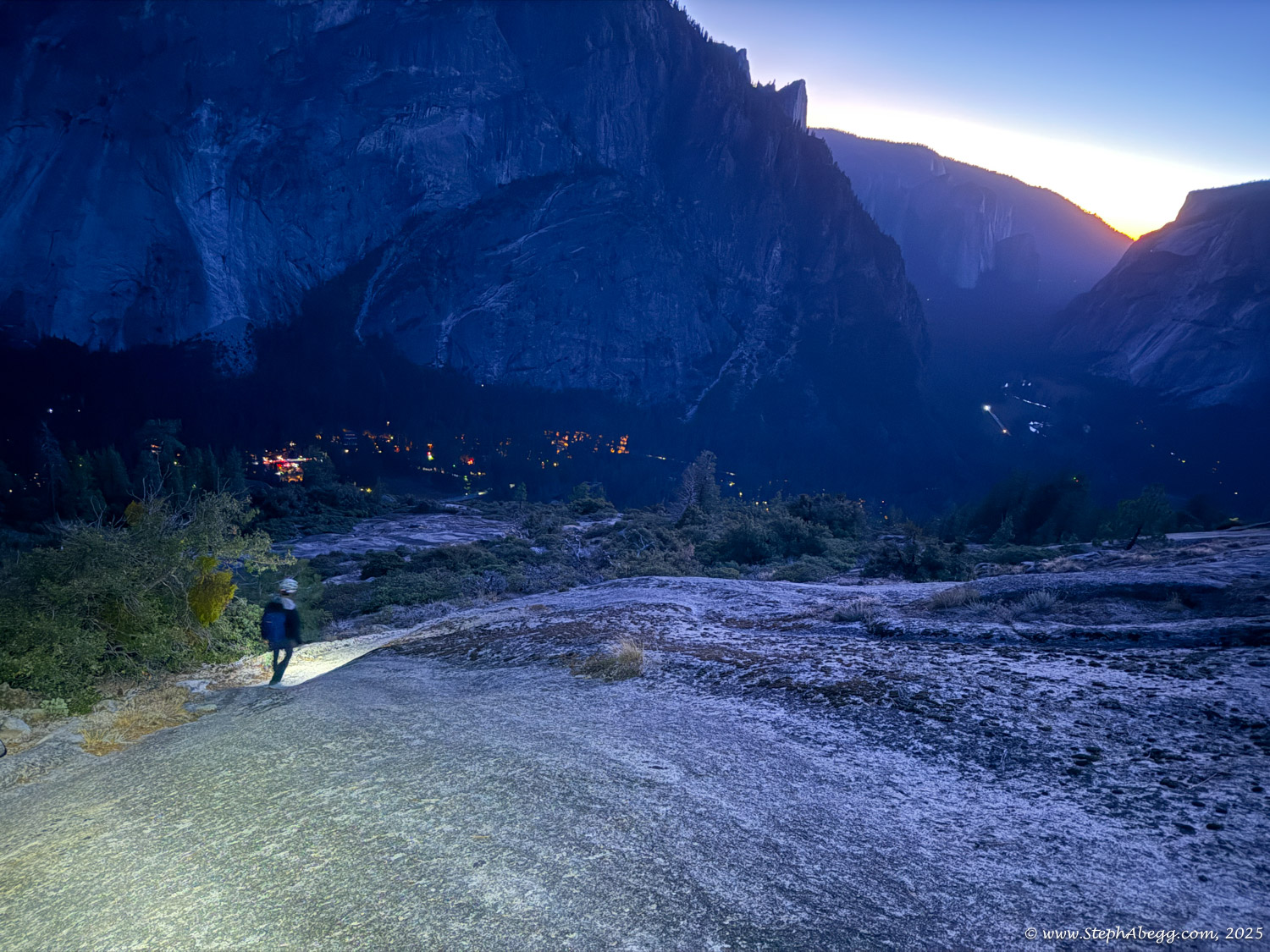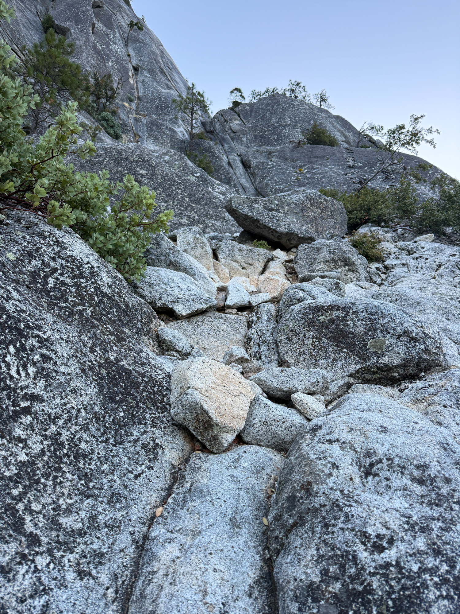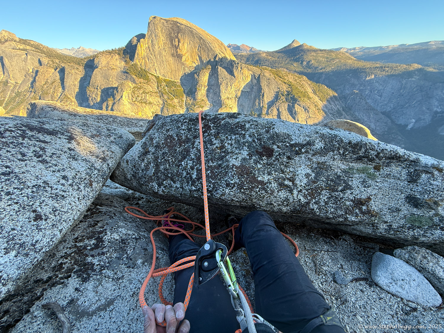 Royal Arches in a few long blocks, cutting the pitch count considerably. The hike between the two climbs is scenic, and the summit of North Dome offers some of Yosemite’s most stunning views. The descent back to the Valley, though long and tedious—especially after a full day—felt like a small price to pay.