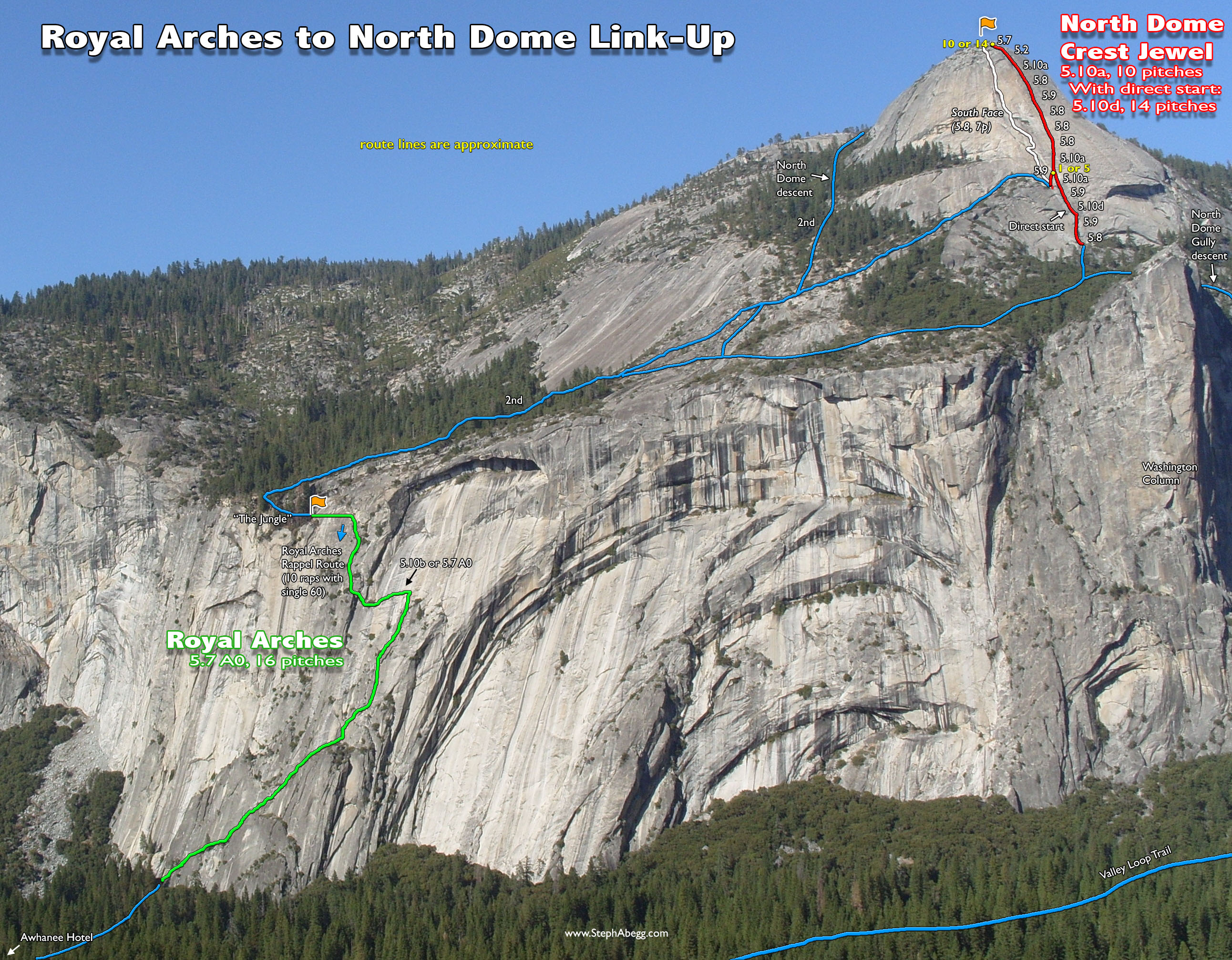 Royal Arches except for one intermediate pitch as a few simulclimbed pitches; Nate took the 5-pitch direct start to