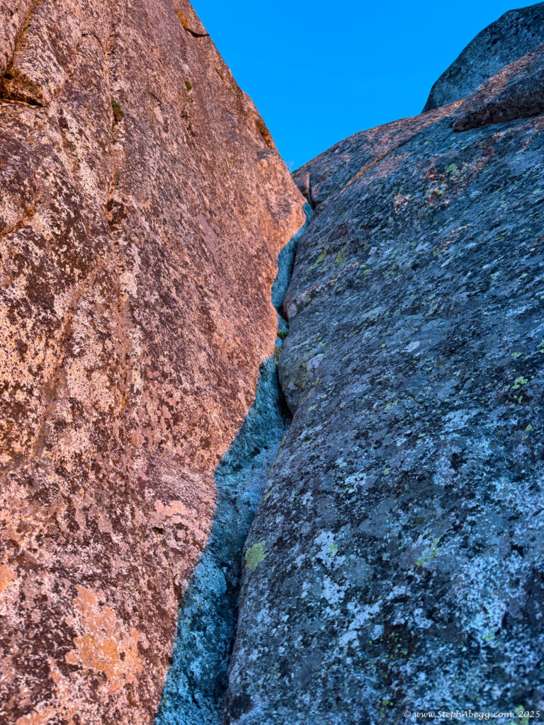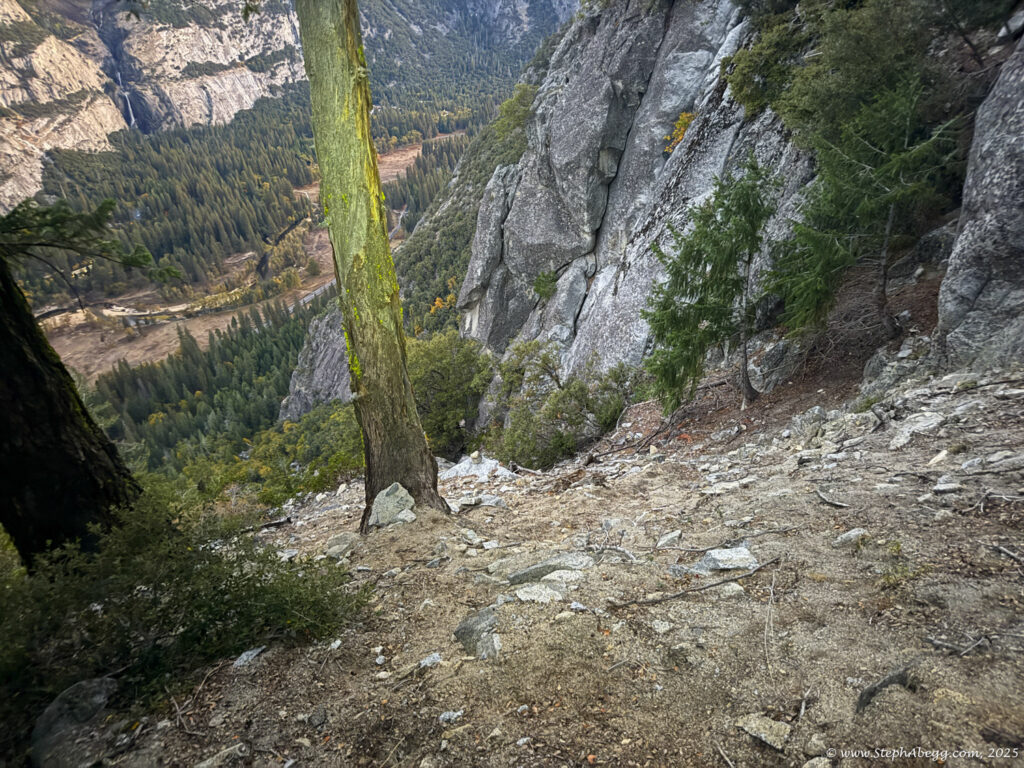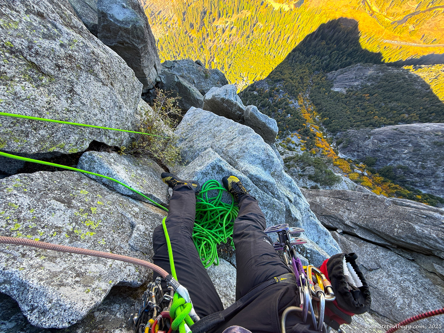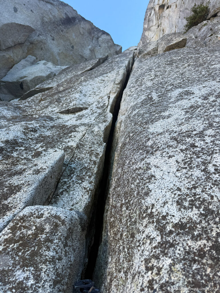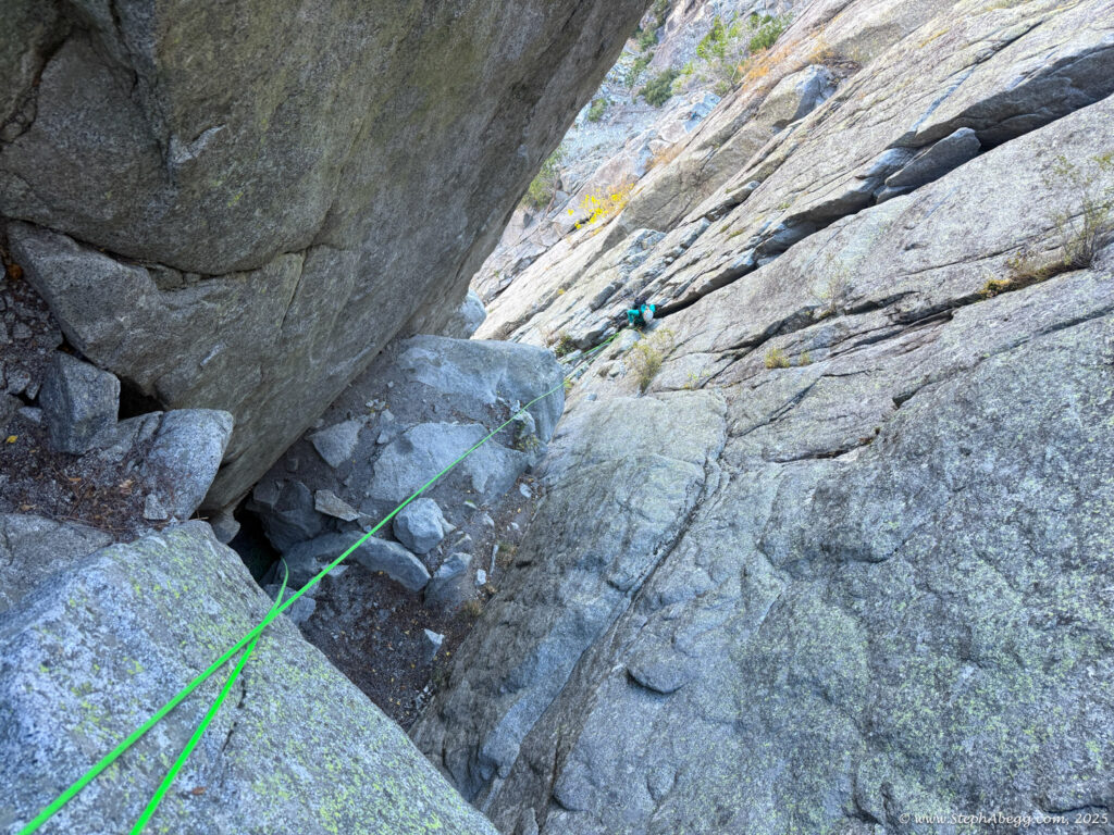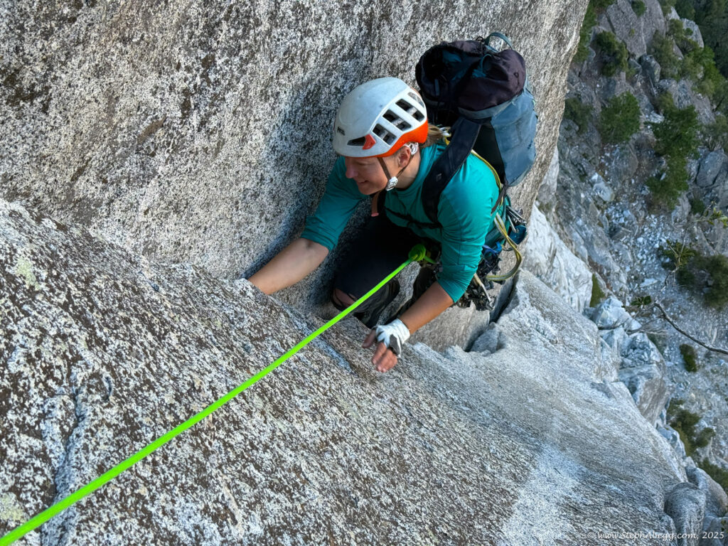 In 2025, I made two Valley trips, in June and October. With its shady aspect and long daylight hours, June seemed ideal for another go—but I couldn’t find a partner. (I’ll admit I’m a bit picky—this is a long, burly adventure, not a casual day out for anyone who just thinks they can “cruise 10b.”) When I came back in October, I renewed my search, posting on Mountain Project and bugging Nate. With shorter days and cold shade, the route’s Type 2 fun factor was definitely higher. Luckily, Brooke Schuemann responded with interest, and we made plans.