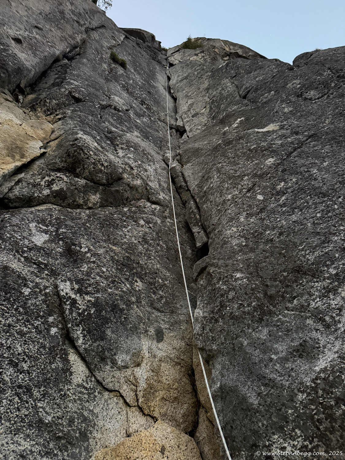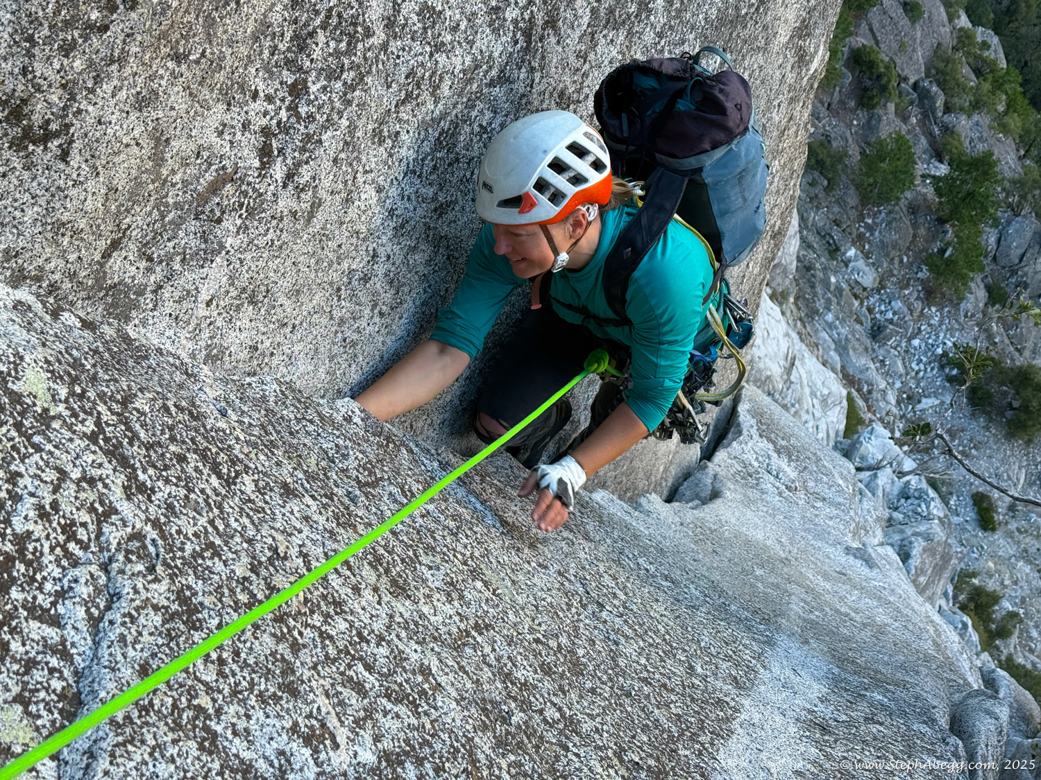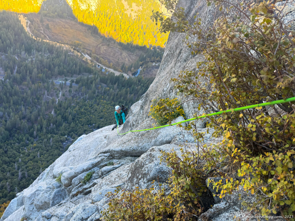 2007 with Ross Peritoine. Ross led every pitch of the 1,600-foot route, and although we topped out before dark, it was definitely night by the time we got back to the car. Since I hadn’t led a single pitch that first time, I’d always wanted to return to swing leads—and to put together a better overlay and trip report for this Yosemite classic.
