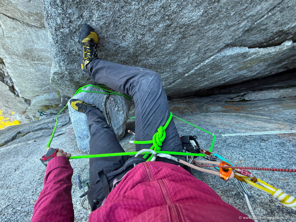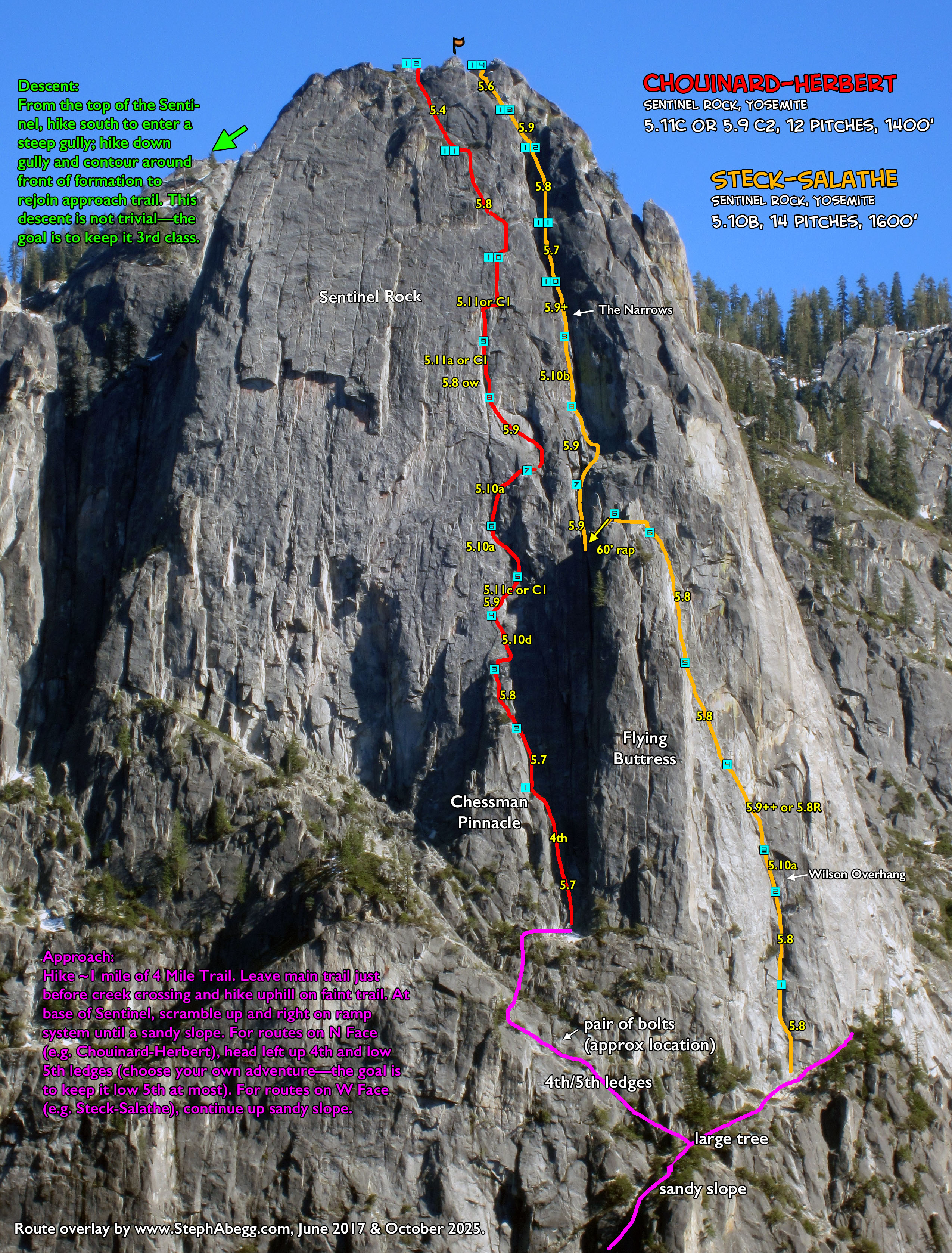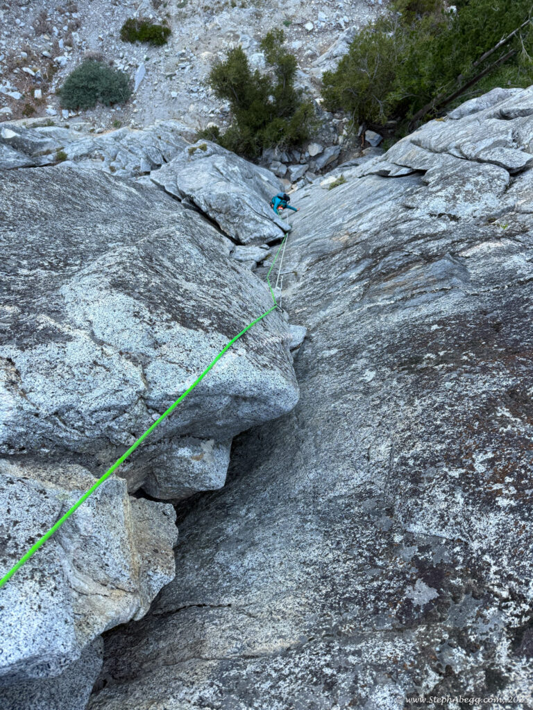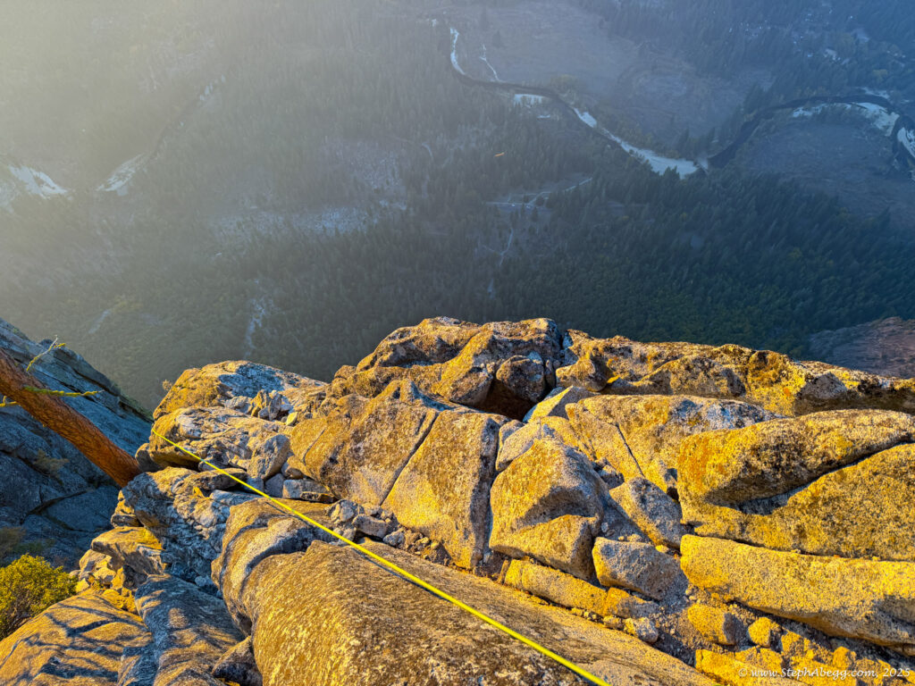2007 with Ross Peritoine. Ross led every pitch of the 1,600-foot route, and although we topped out before dark, it was definitely night by the time we got back to the car. Since I hadn’t led a single pitch that first time, I’d always wanted to return to swing leads—and to put together a better overlay and trip report for this Yosemite classic.