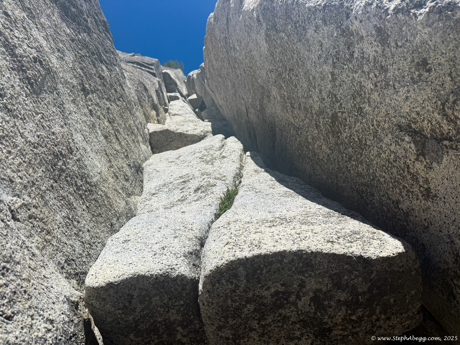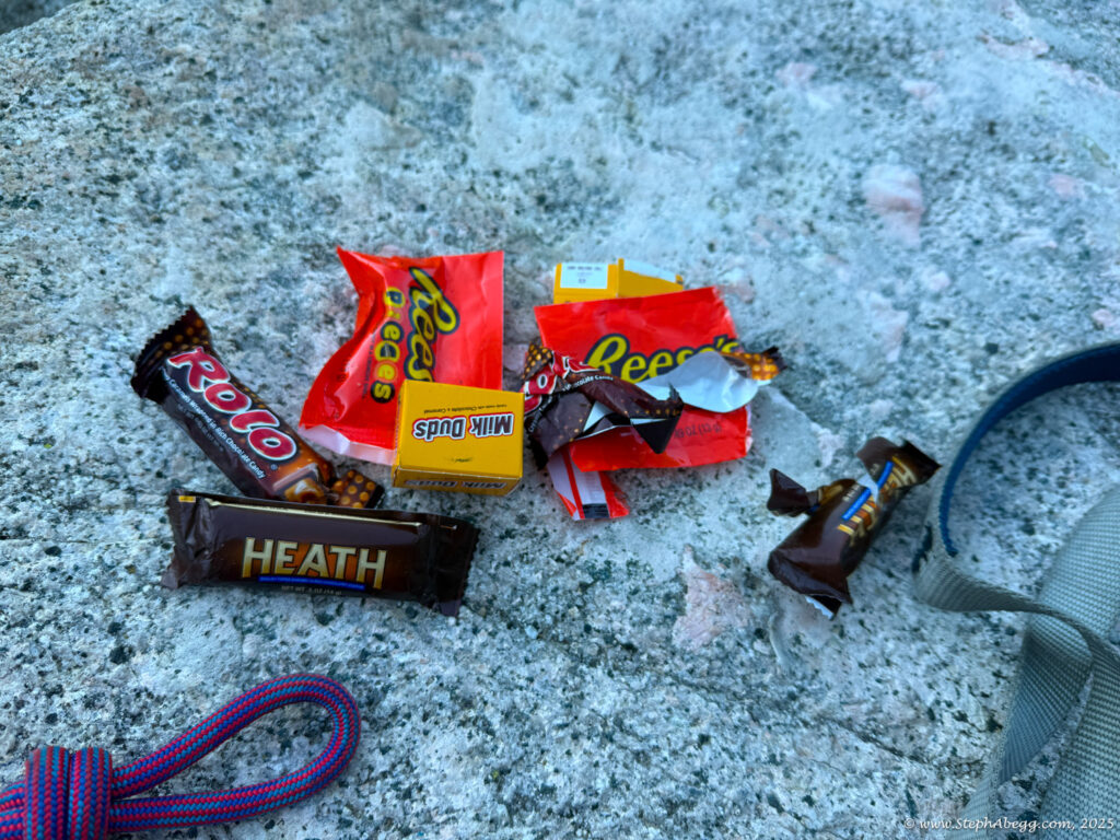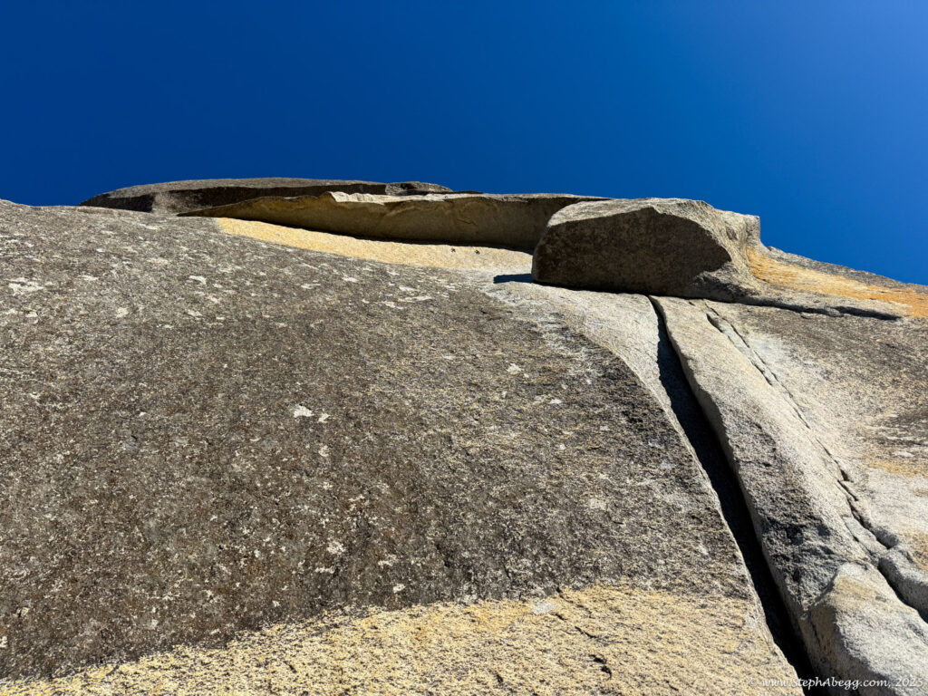 We debated walking off via the North Dome Gully but opted to rappel instead. We skipped Pitch 11 to the true summit (reportedly chossy and unremarkable). The descent went quickly, and we enjoyed hanging out on Dinner Ledge chatting with the other climbers.