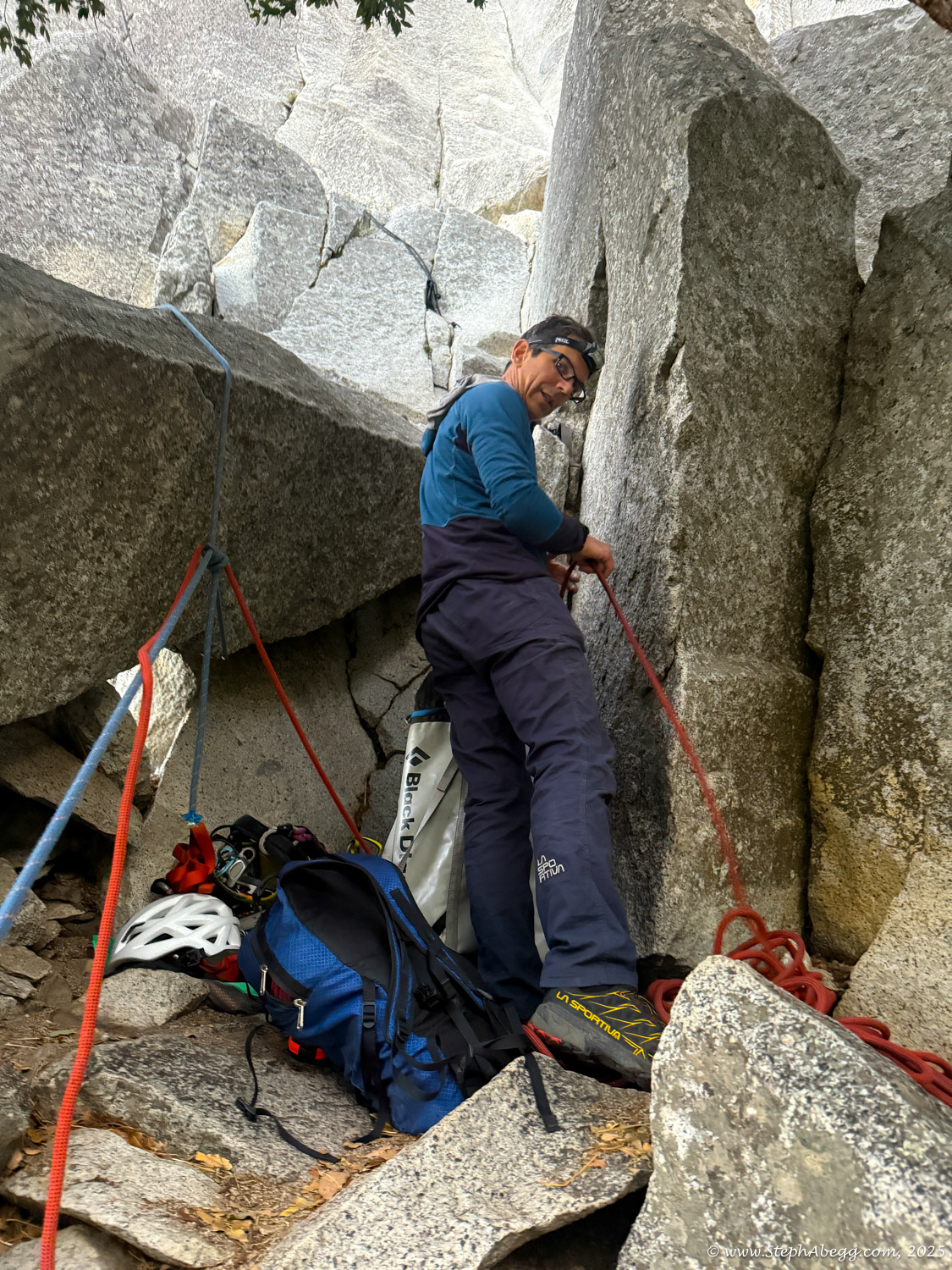 Nate and I climbed the route in a single day, with me leading. It was actually my first true aid lead using ladders. Earlier in the trip I had led the