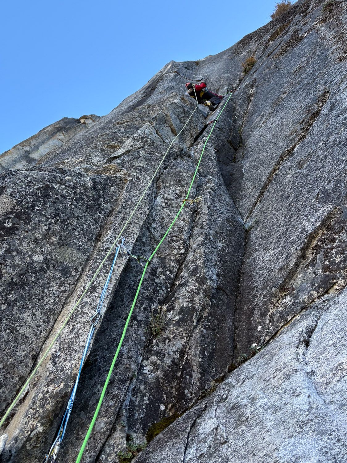 We both agreed it’s a superb route—well-protected, technically demanding, and set on flawless granite.