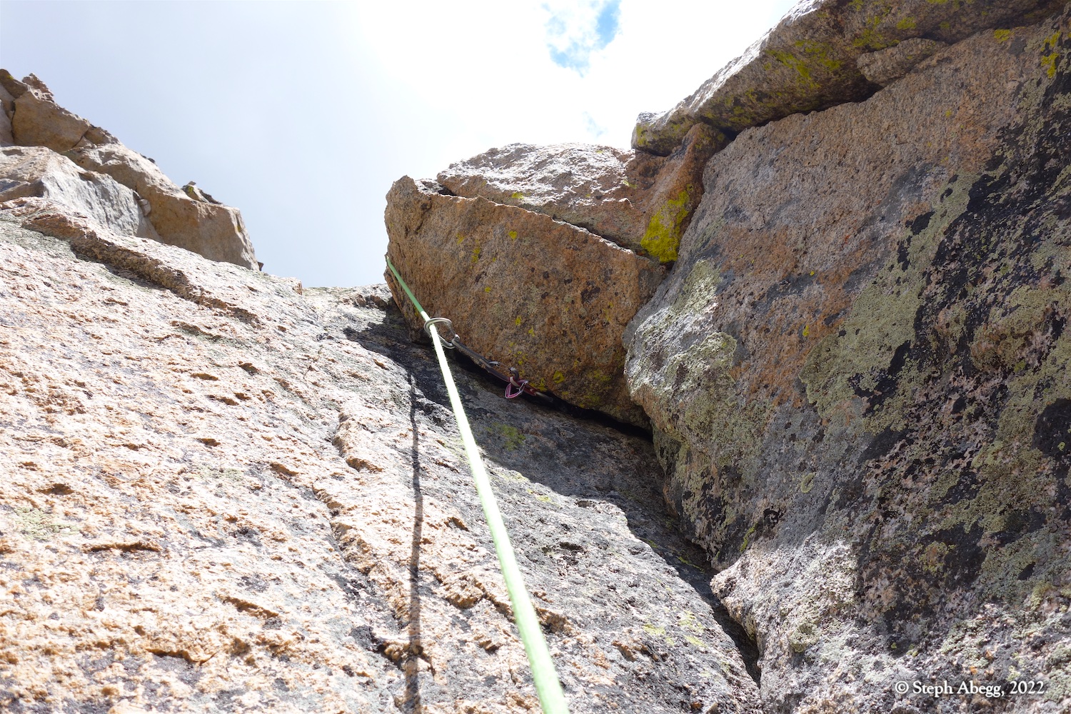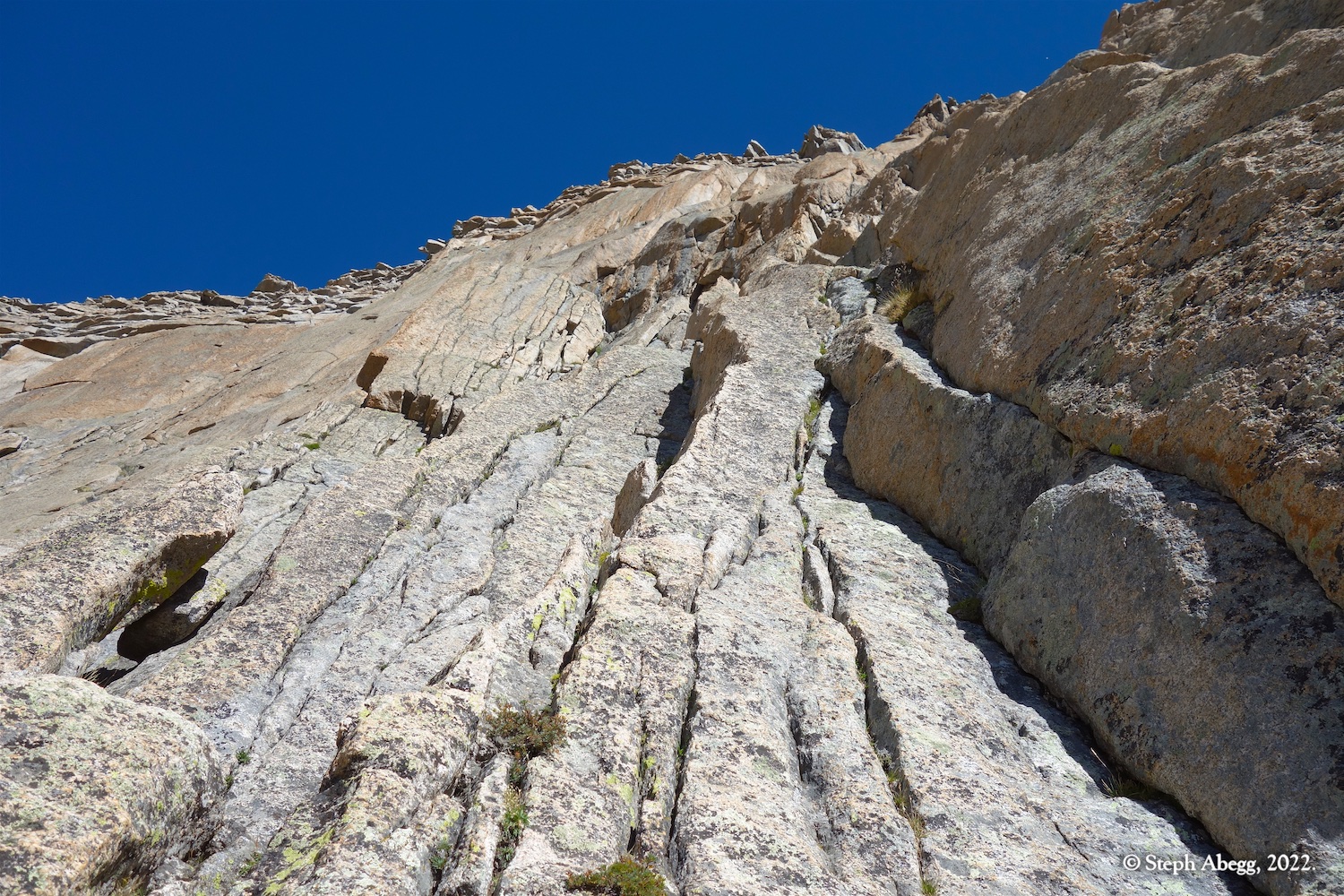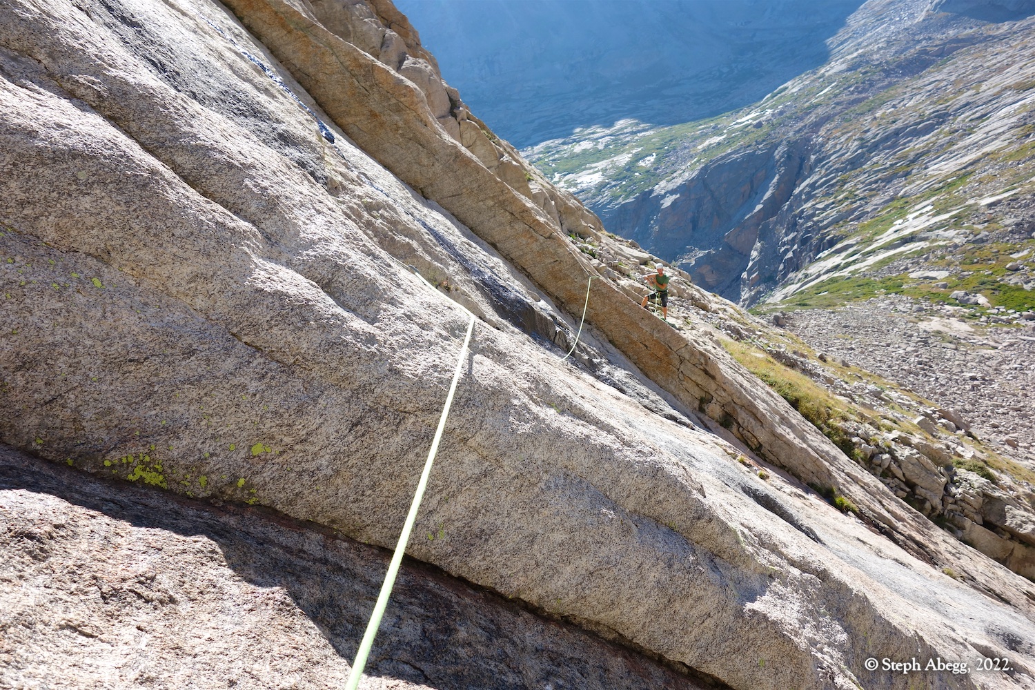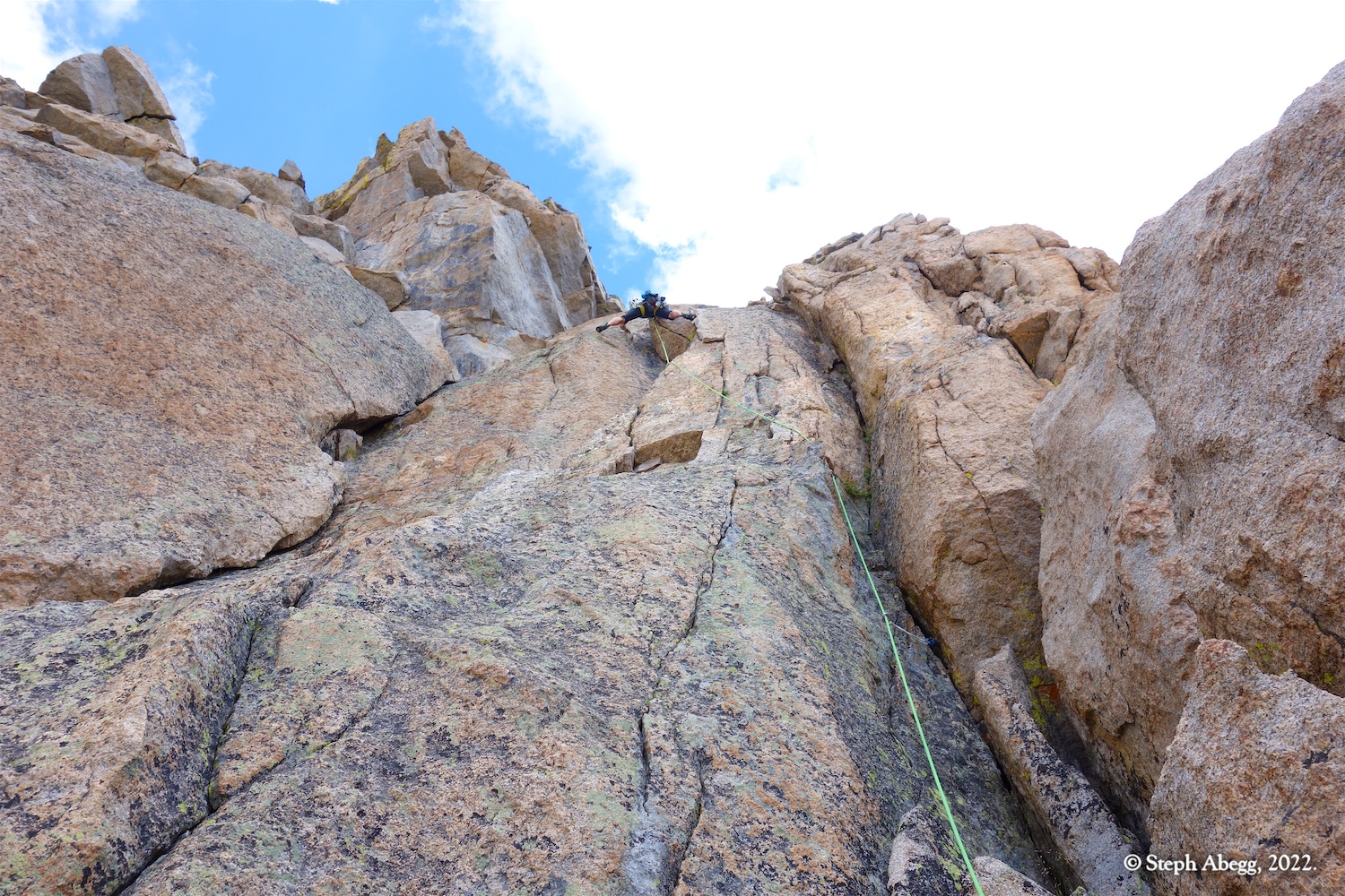 As usual, despite the sunny high-quality alpine granite of Arrowhead, we had the entire wall to ourselves. Another worthy route on Arrowhead!