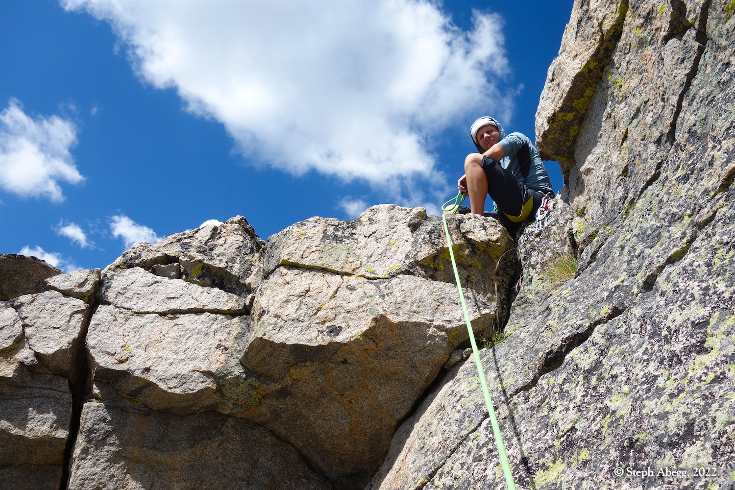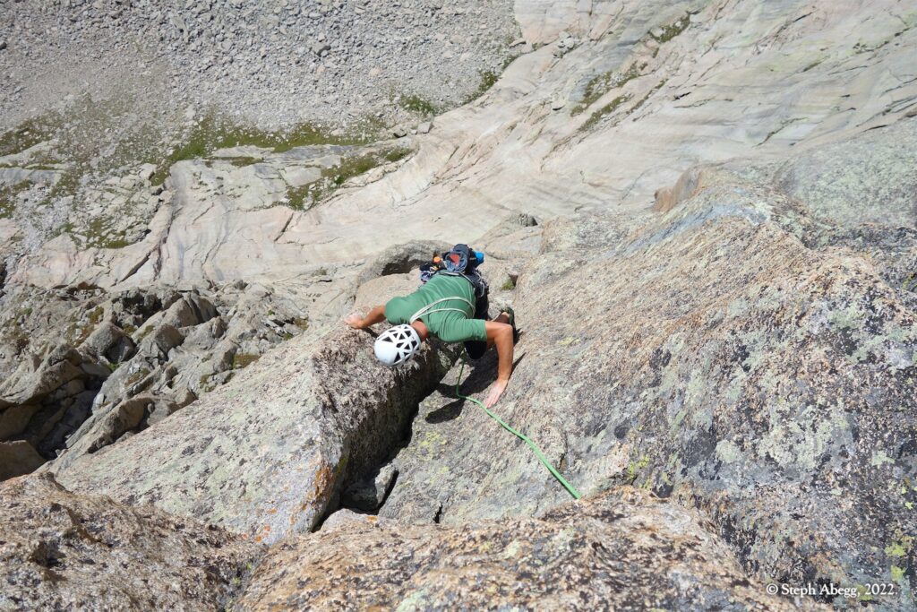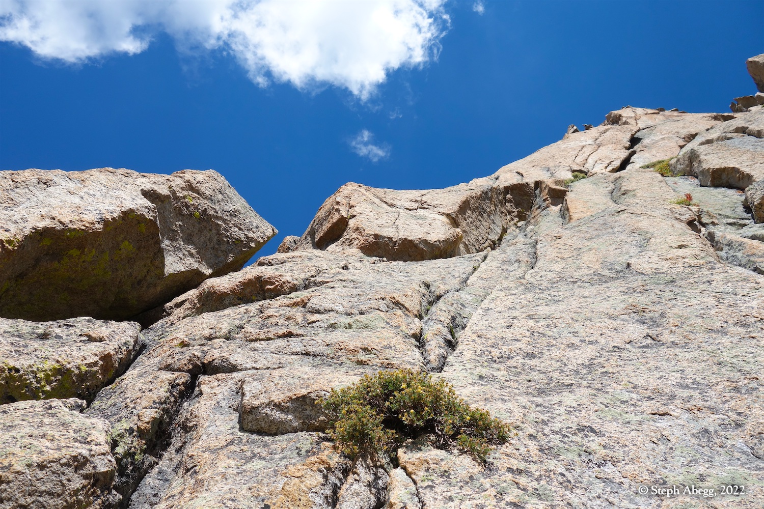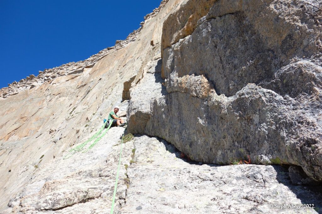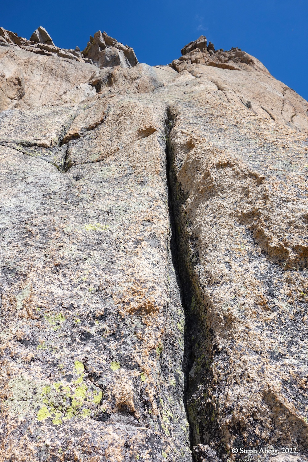 As usual, despite the sunny high-quality alpine granite of Arrowhead, we had the entire wall to ourselves. Another worthy route on Arrowhead!