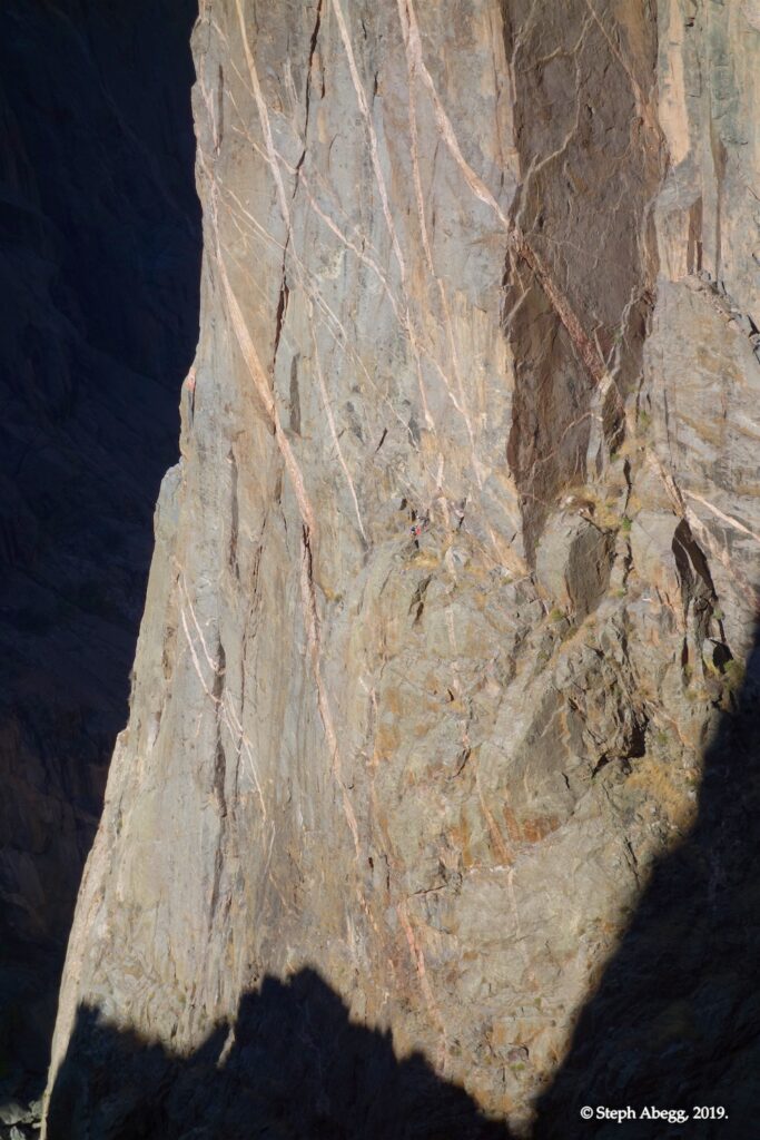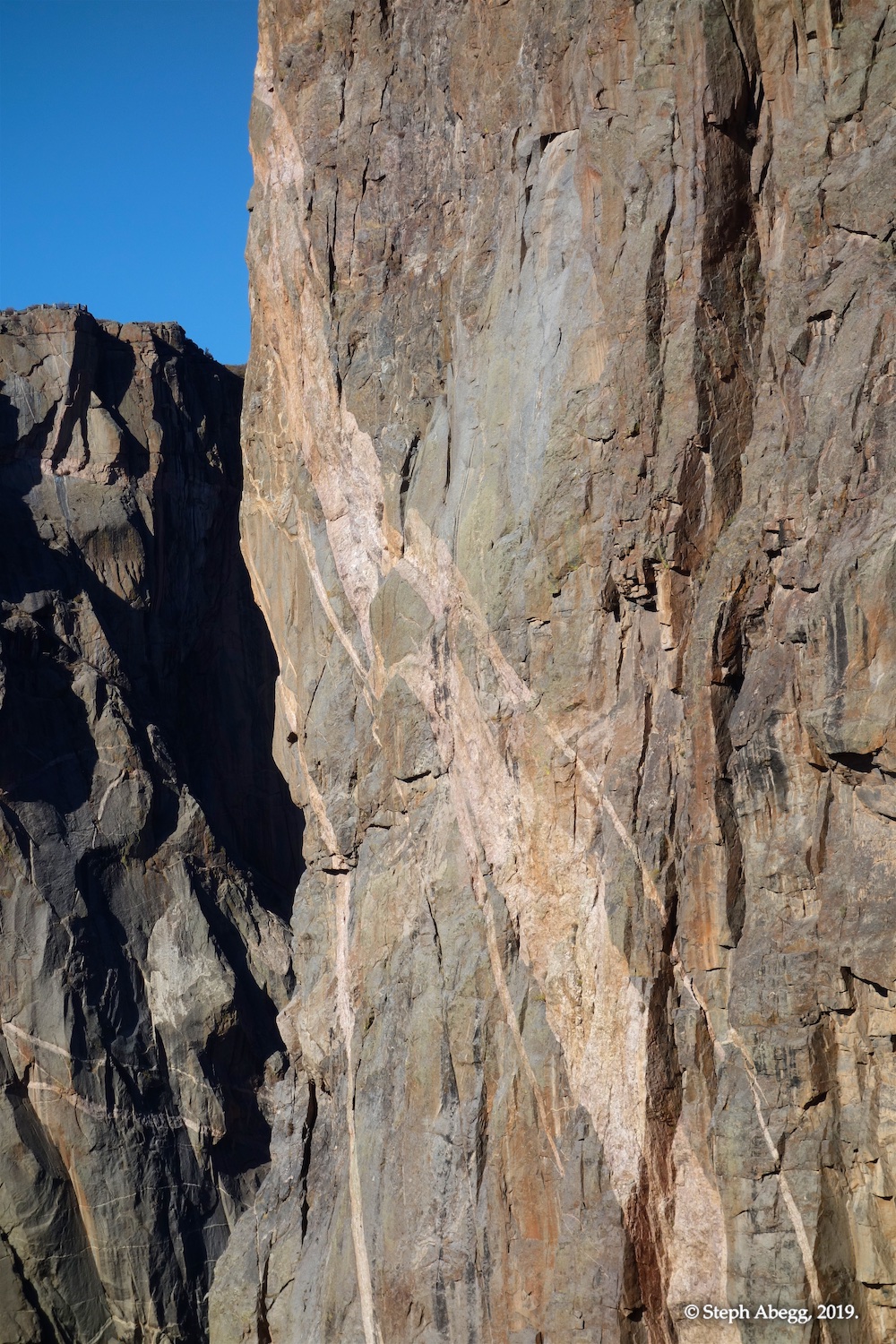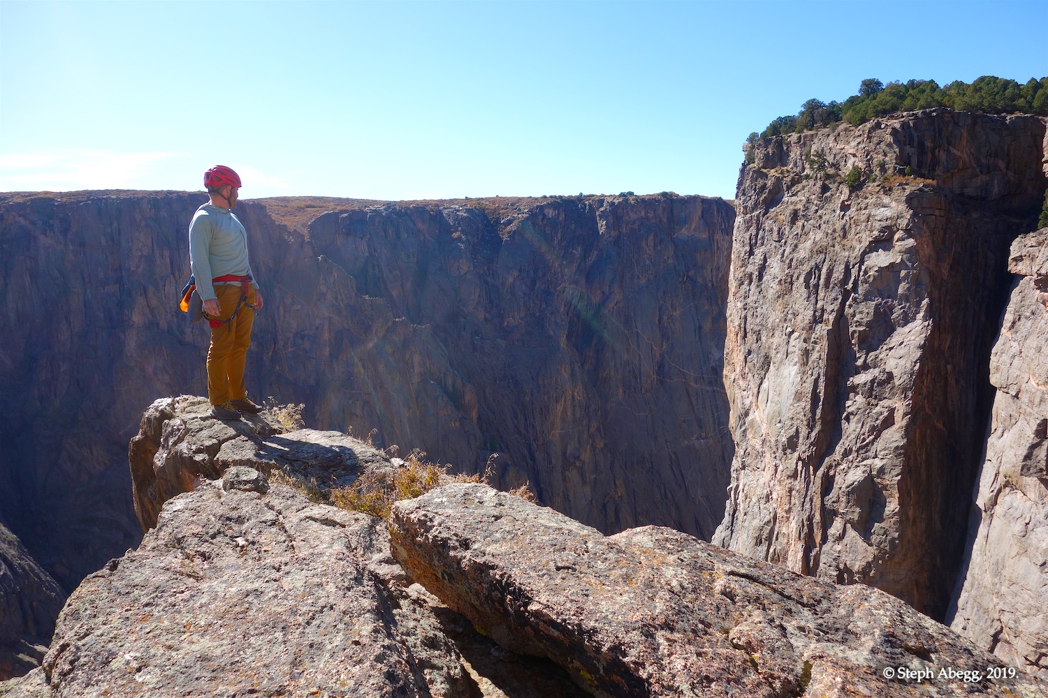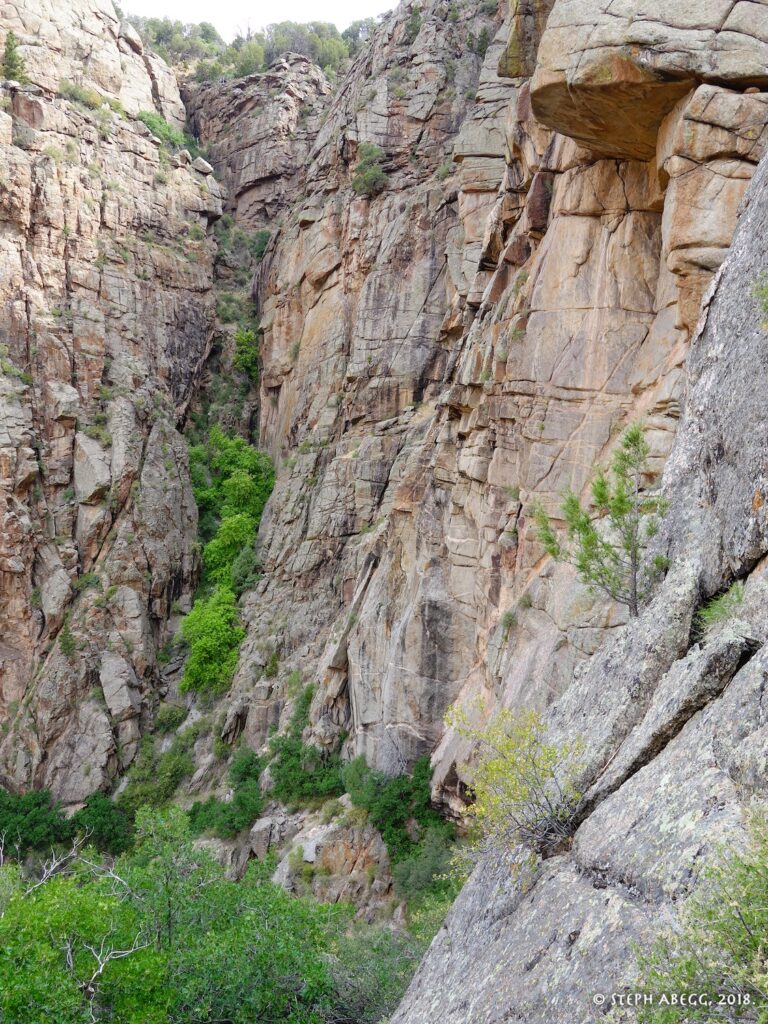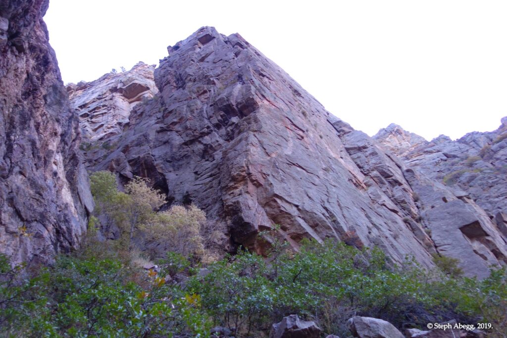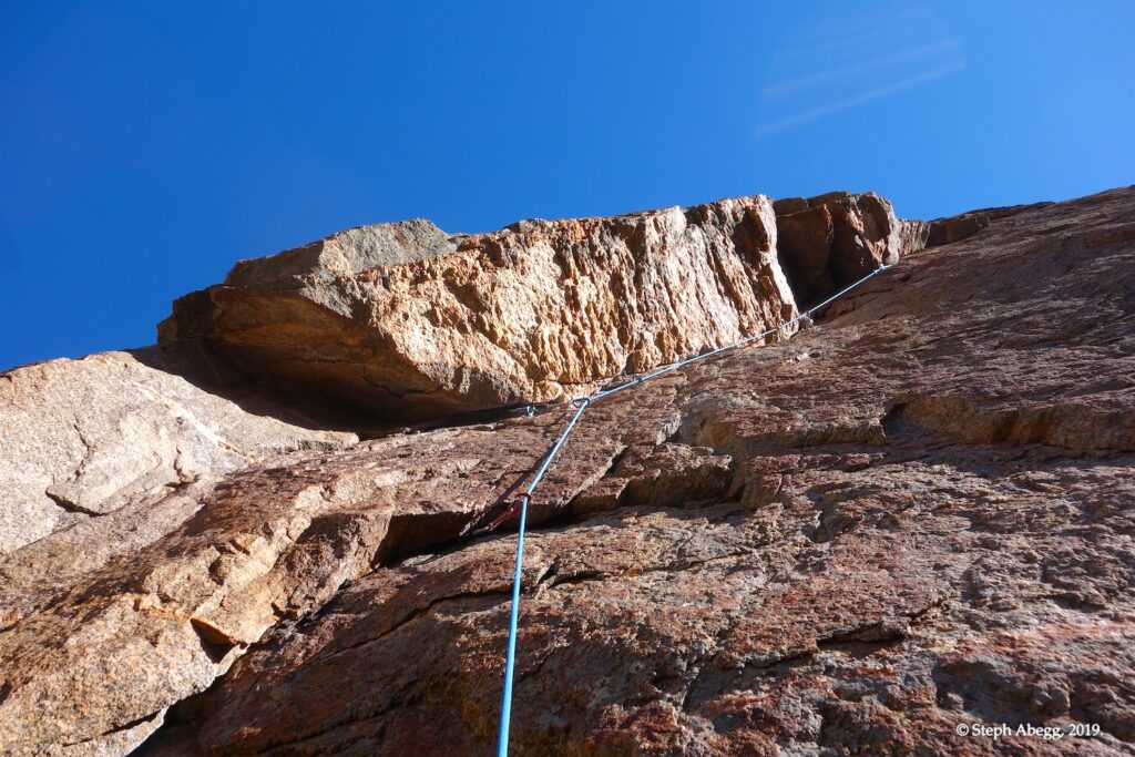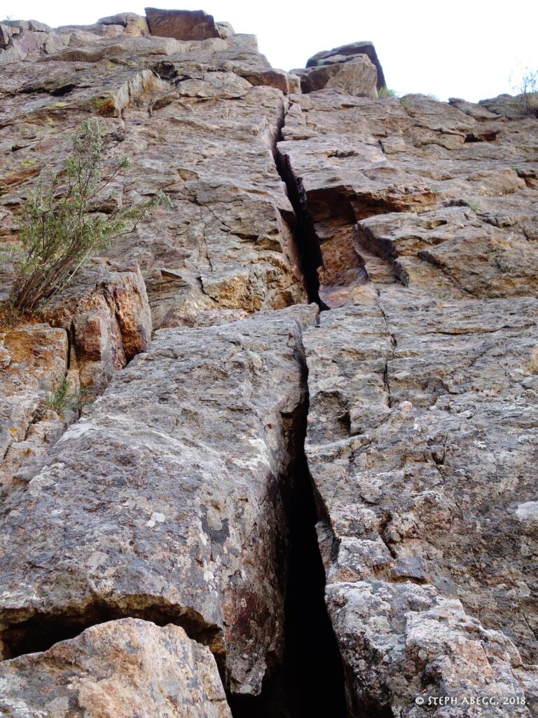 Routes on Newberry's Slabs require a linkup with another climb to reach the rim (unless you want to ascend Cruise Gully). A great 11-pitch 5.9 link-up is Newberry's Delight to Maiden Voyage to King Me (which is what we did).