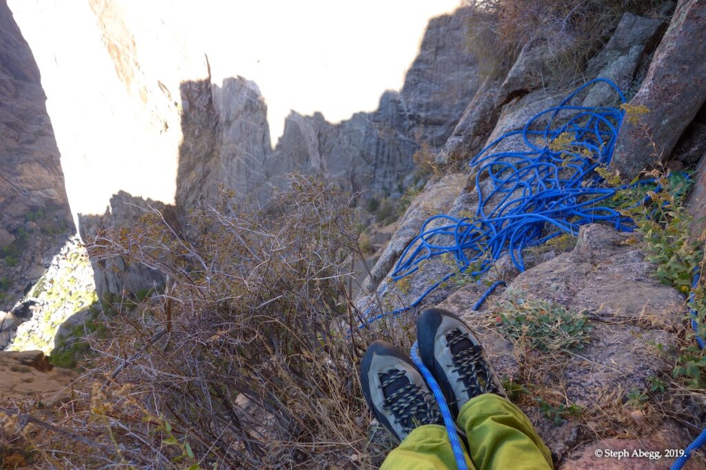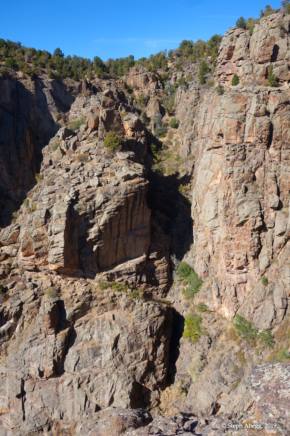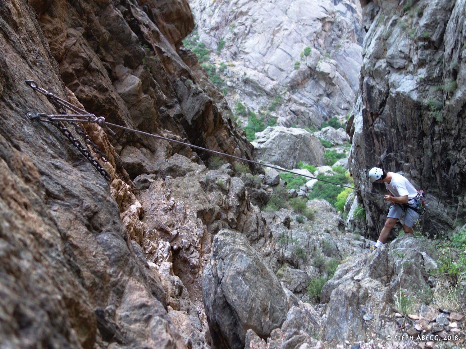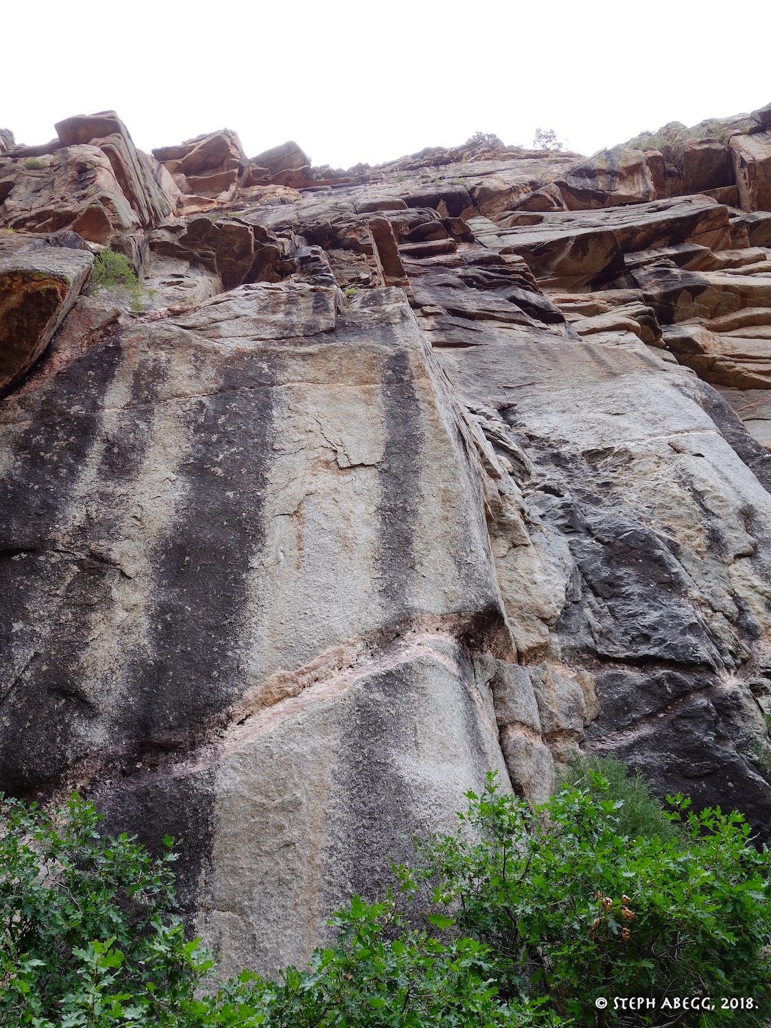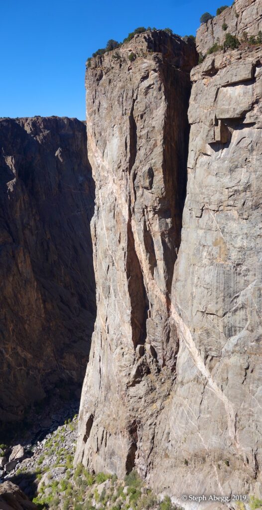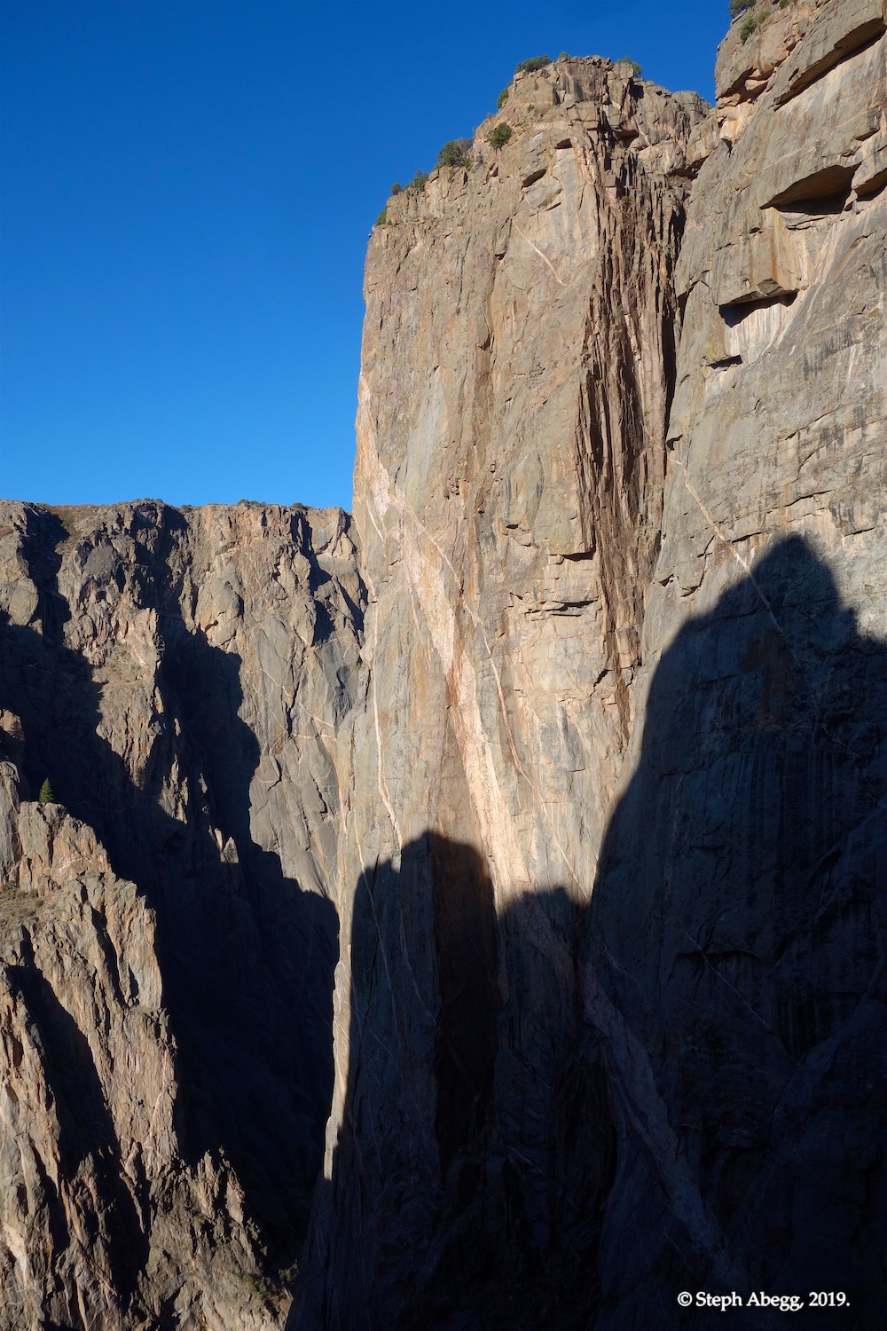 Routes on Newberry's Slabs require a linkup with another climb to reach the rim (unless you want to ascend Cruise Gully). A great 11-pitch 5.9 link-up is Newberry's Delight to Maiden Voyage to King Me (which is what we did).