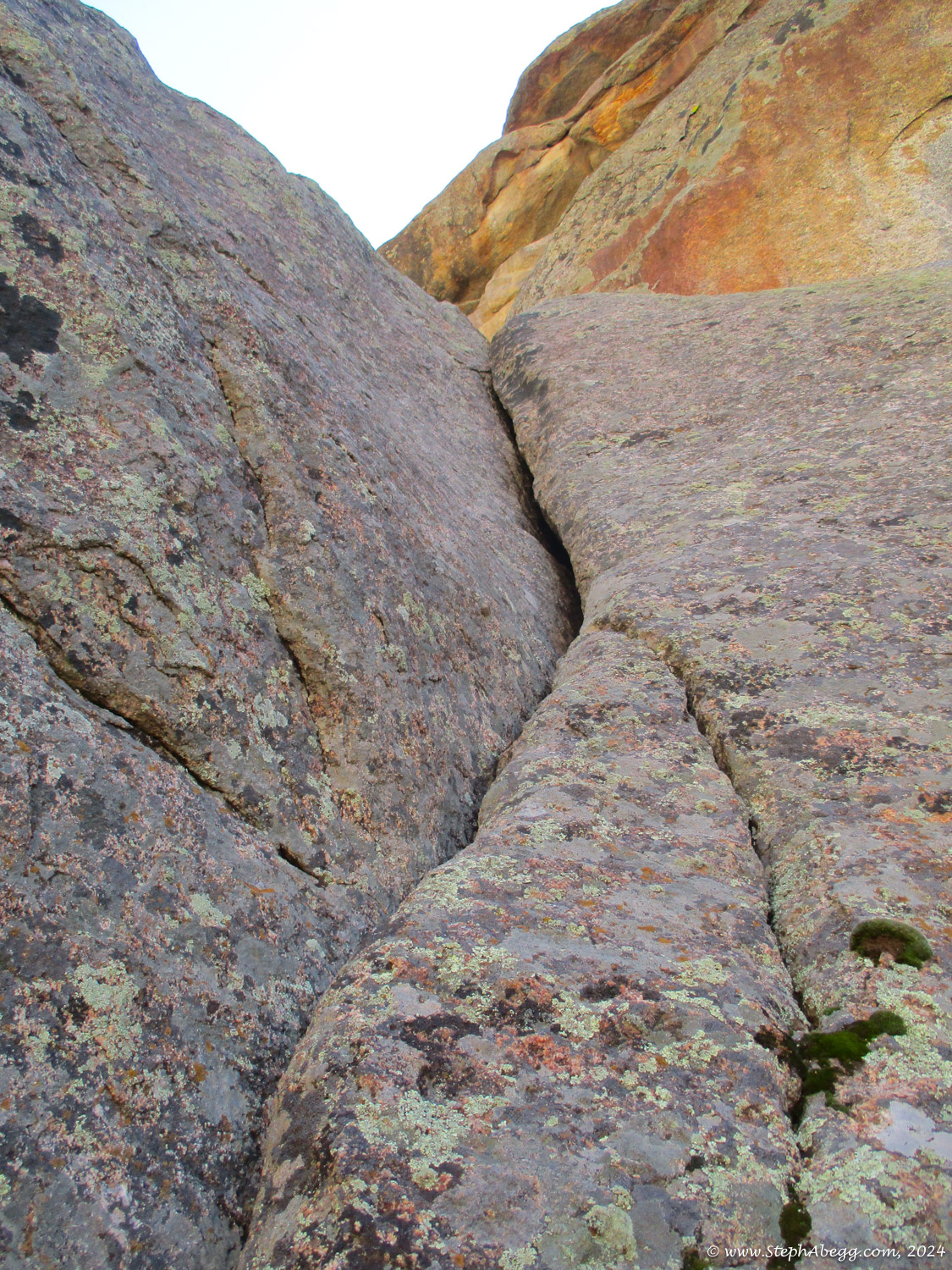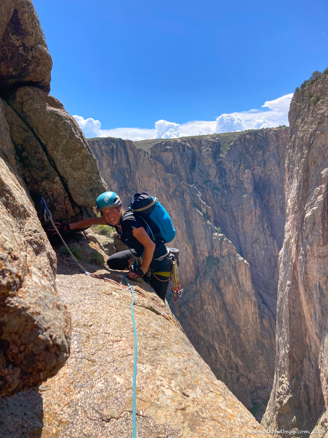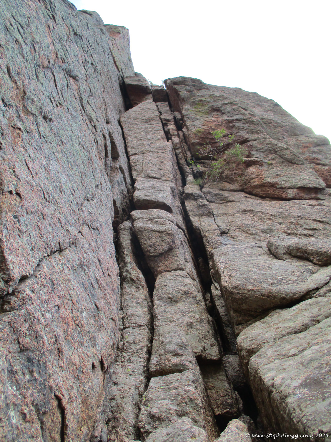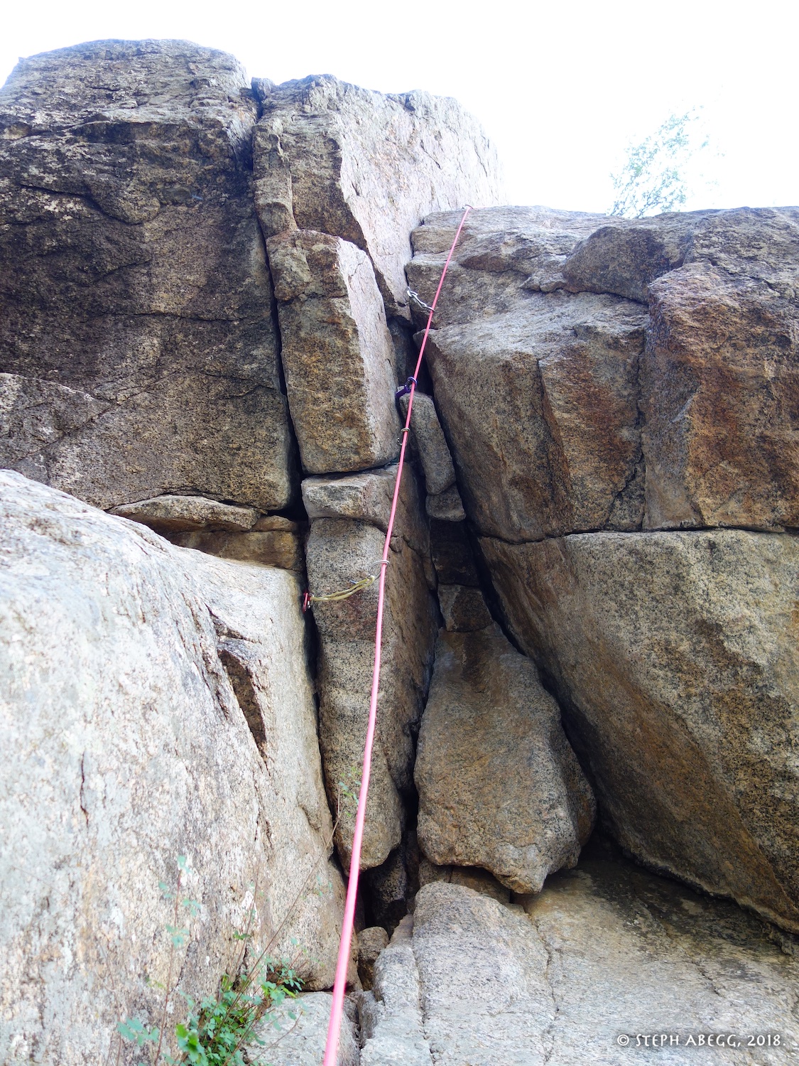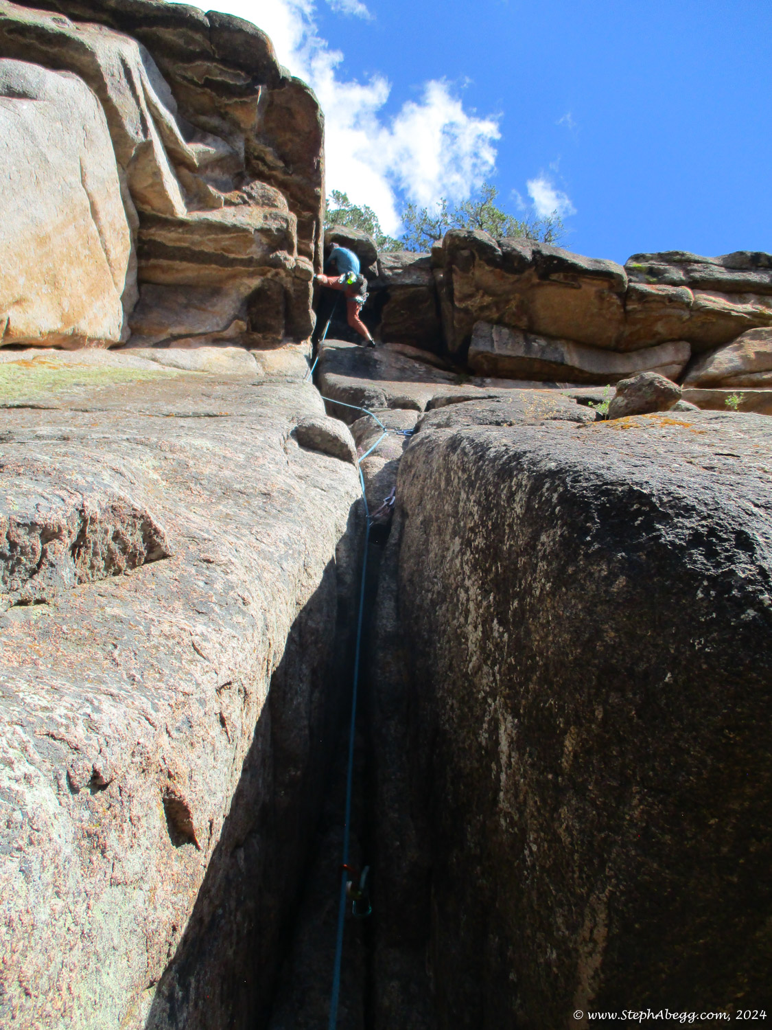 Newberry's Delight linked with Maiden Voyage is a nice 8-pitch 5.9 Grade III day of climbing in the Black. The route's best pitch is the first: a beautiful 5.9 hands-to-fists splitter. Linn and I climbed this route as part of an 11-pitch 3-route linkup of Newberry's Delight, Maiden Voyage, and King Me. It had rained heavily the evening before, so all of the routes had some wetness, but it just made it feel a bit more alpine.