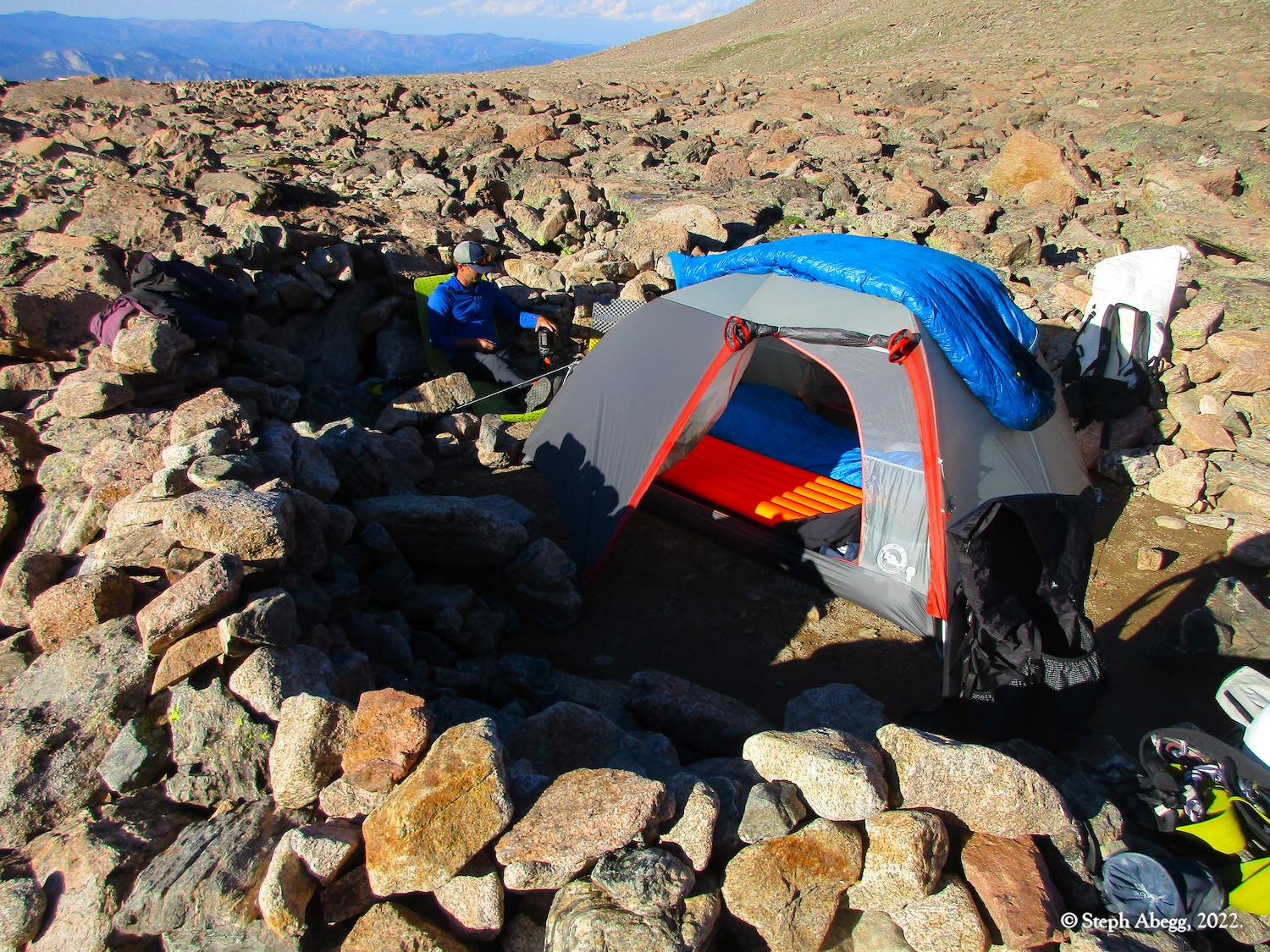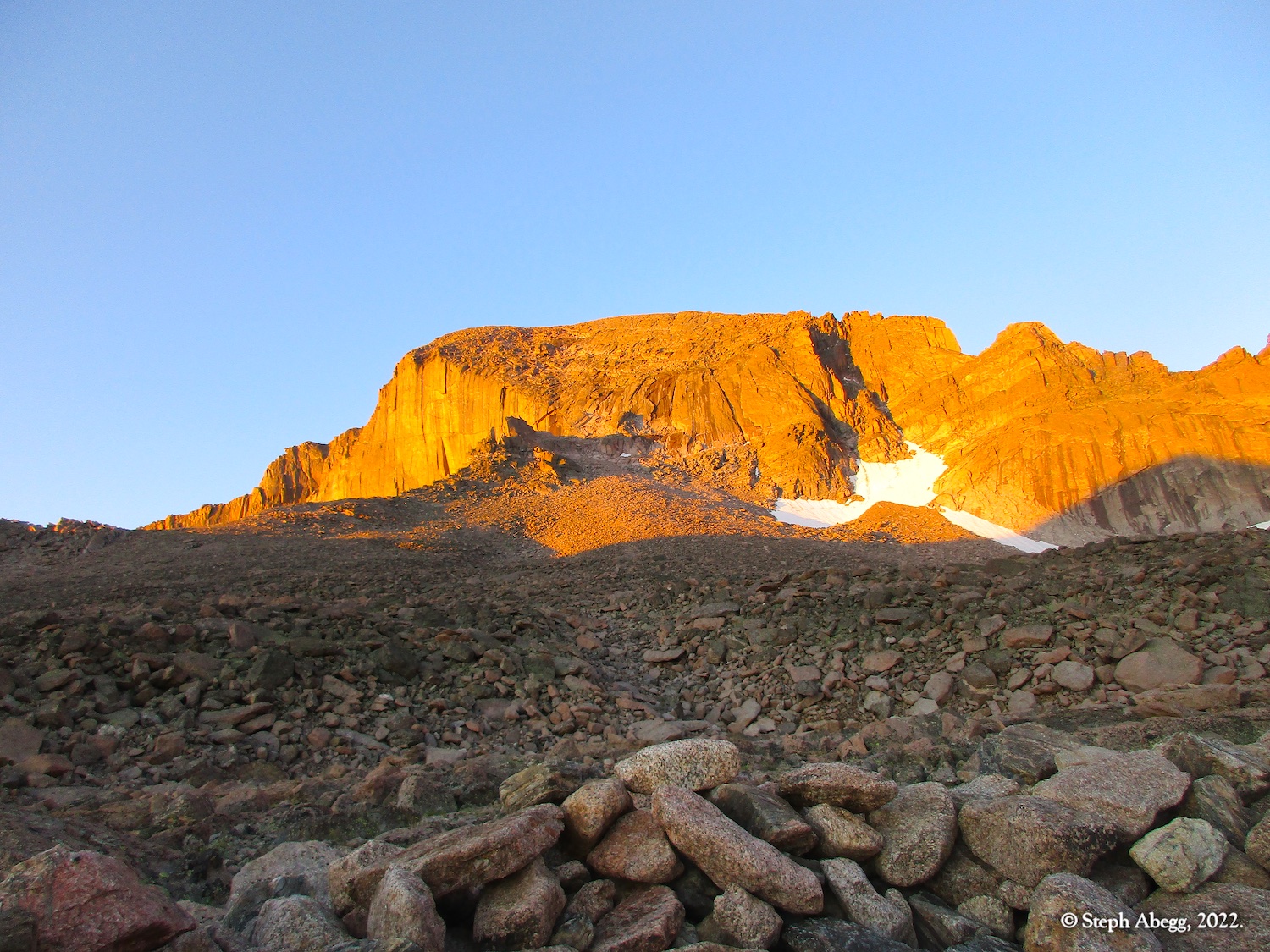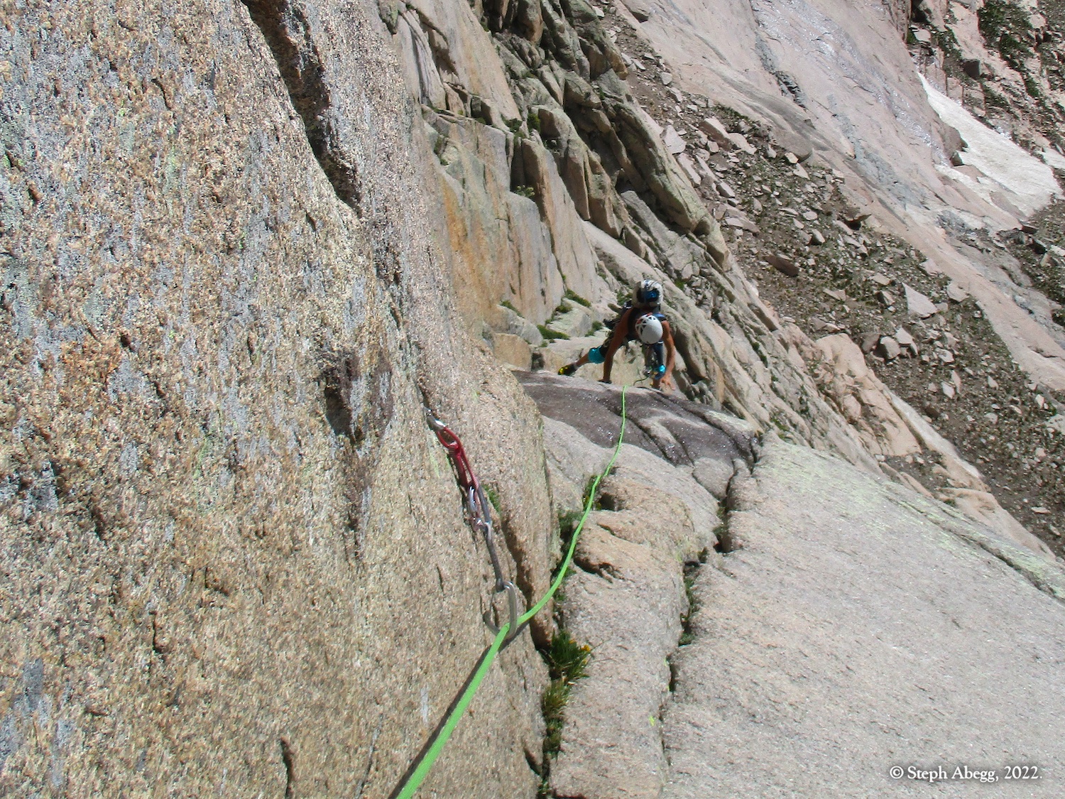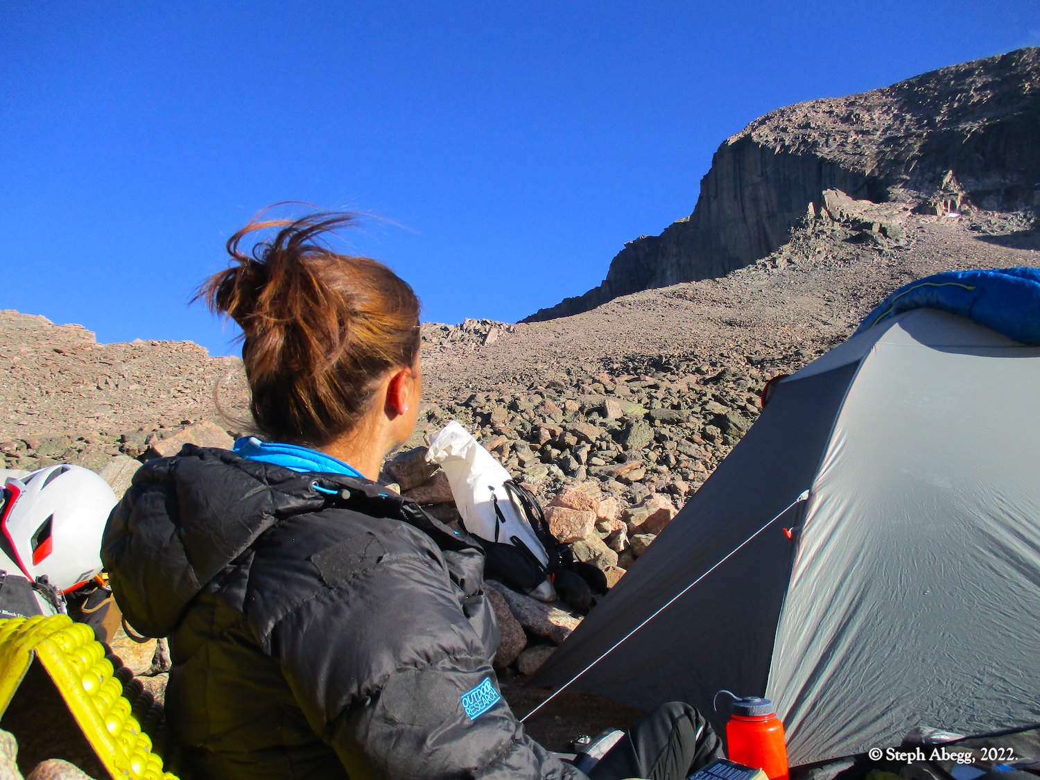 The approach depends on where you start. It is probably most common to start from the Longs Peak Trailhead: Starting from the Longs Peak Trailhead, hike up to Chasm Lake and from there to the base of Chasm View Wall. However, on this trip Nate and I started from the Boulderfield, since that is where we were camping: Starting from the Boulderfield, hike to the ridge connecting Mt. Lady Washington to Chasm View. Either descend the