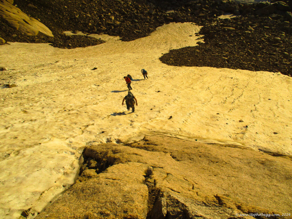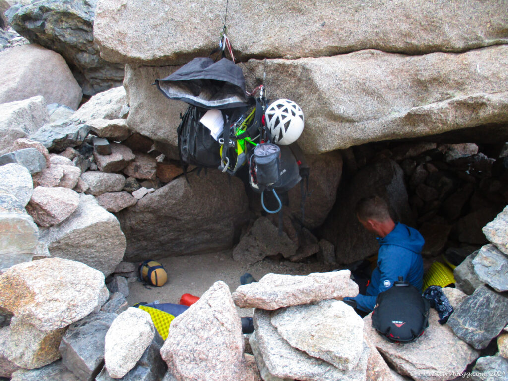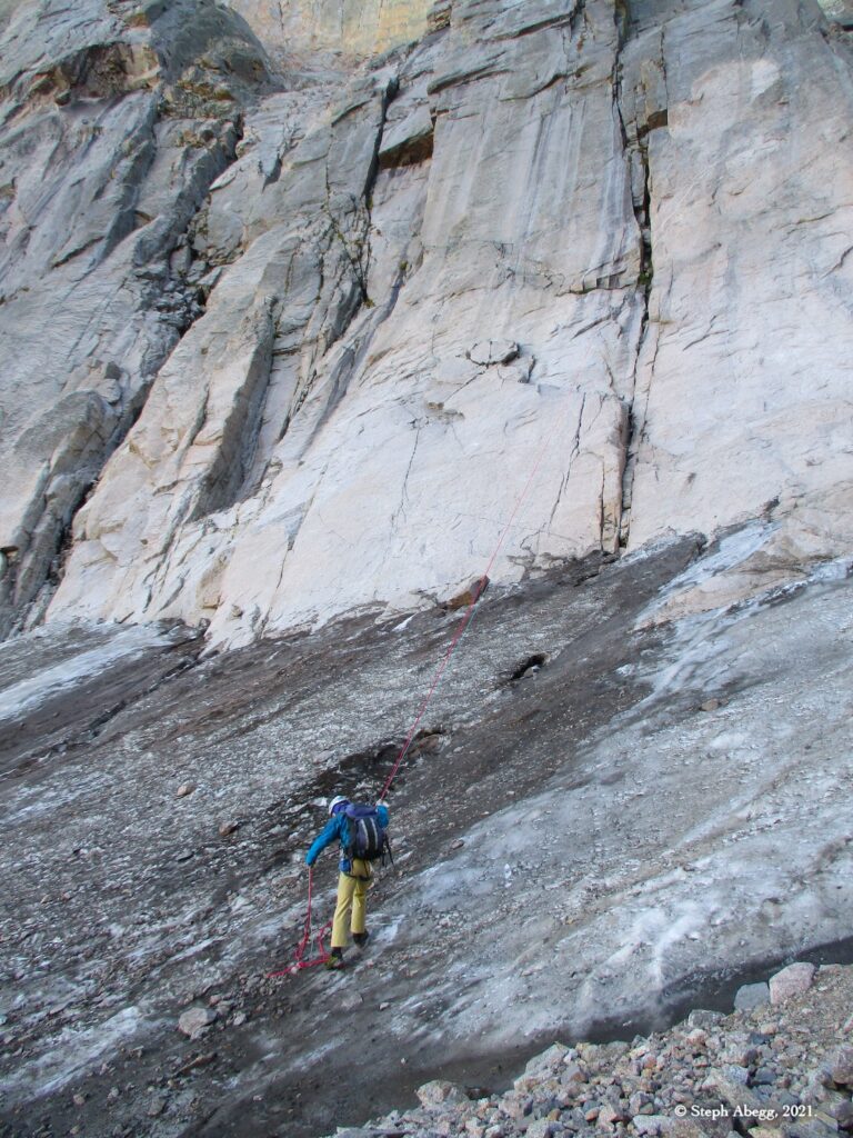 (The photos with the annotations are from the beta section I have put together to summarize the various approach and descent options for the Diamond. I had created this beta section the previous summer, but I added several photos to it after this trip report.)